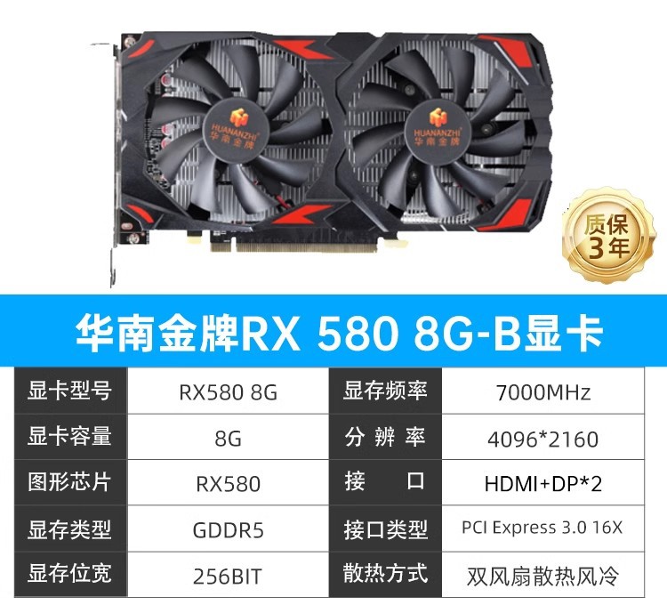 显卡型号:华南RX580 8G-B 2048SP显卡