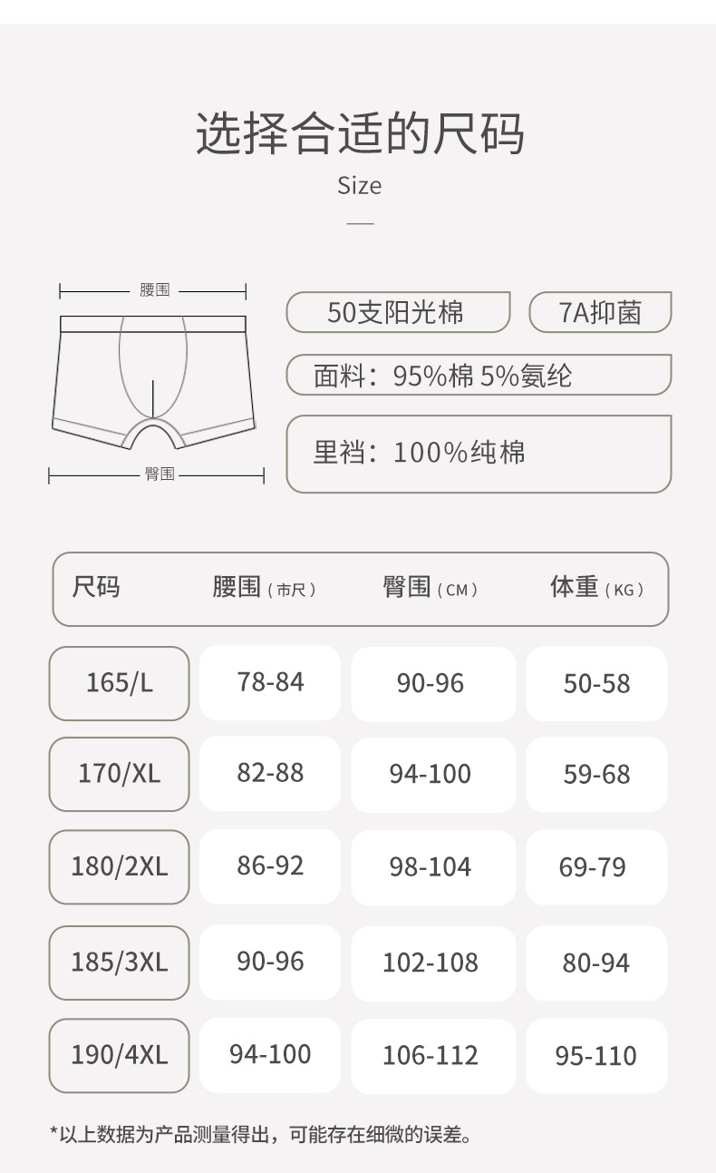 엄선된 남성용 속옷, 순면 남성용 사각팬티, 7A 항균 순면, 남성용 봄여름 편안한 사각팬티