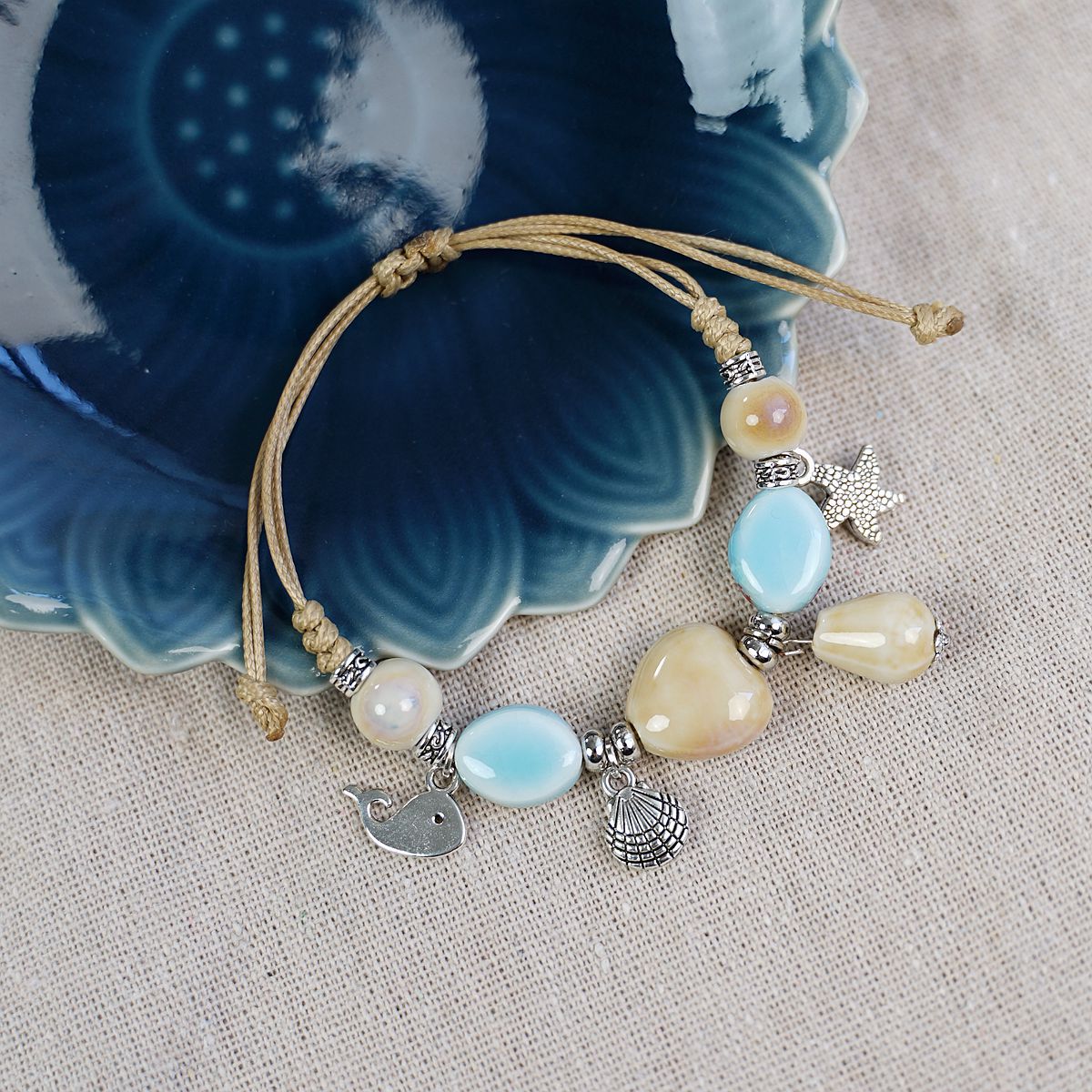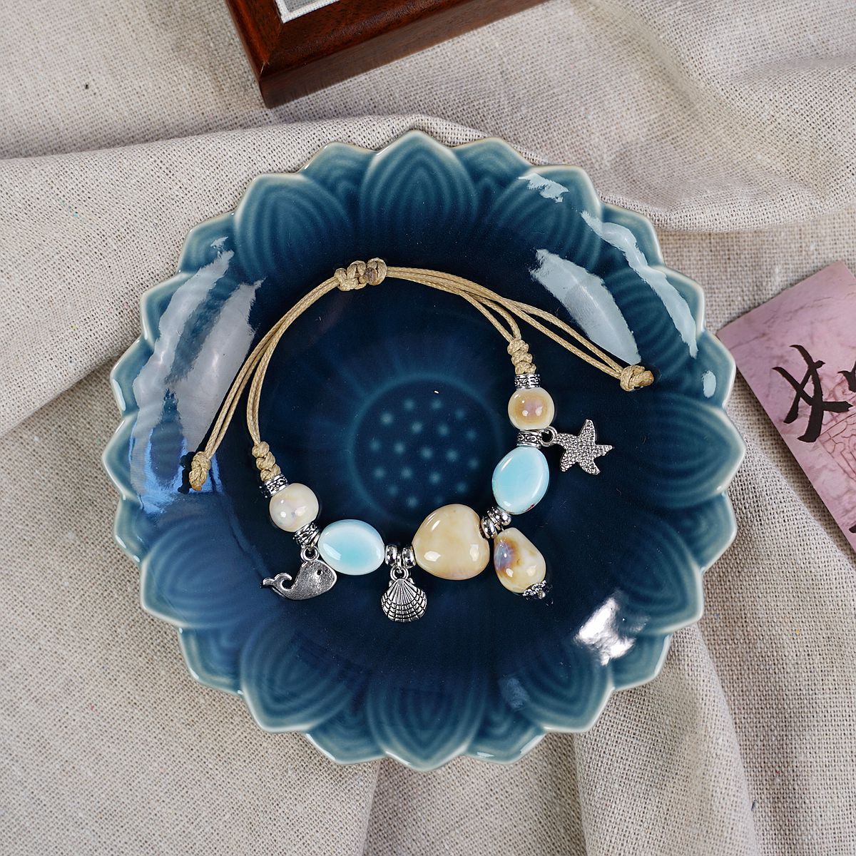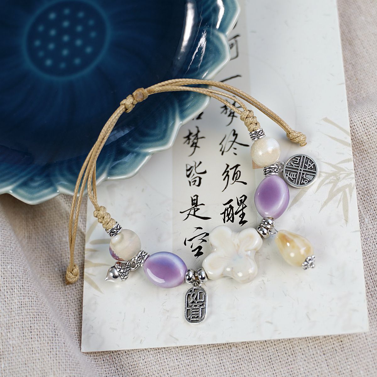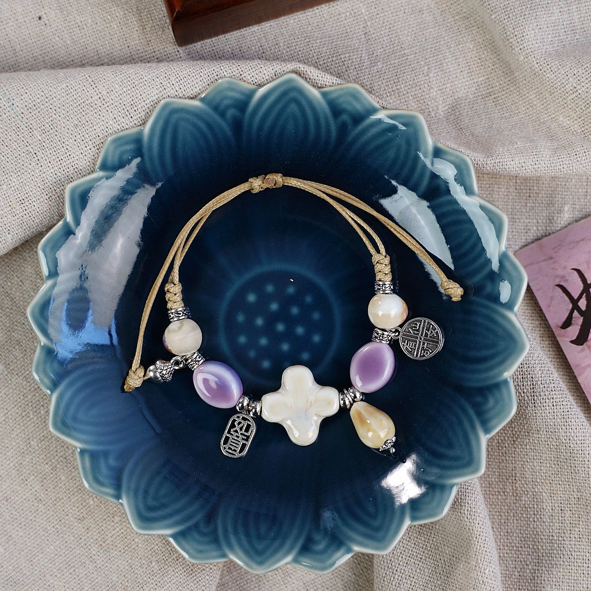 새로운 민족 스타일 틈새 디자인 고급 센스 Jingdezhen 세라믹 팔찌 여성 도매 도자기 구슬 구슬 손 로프 보석