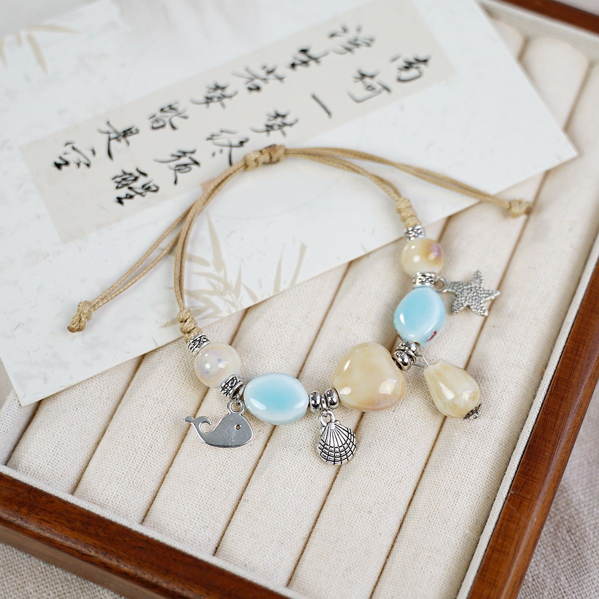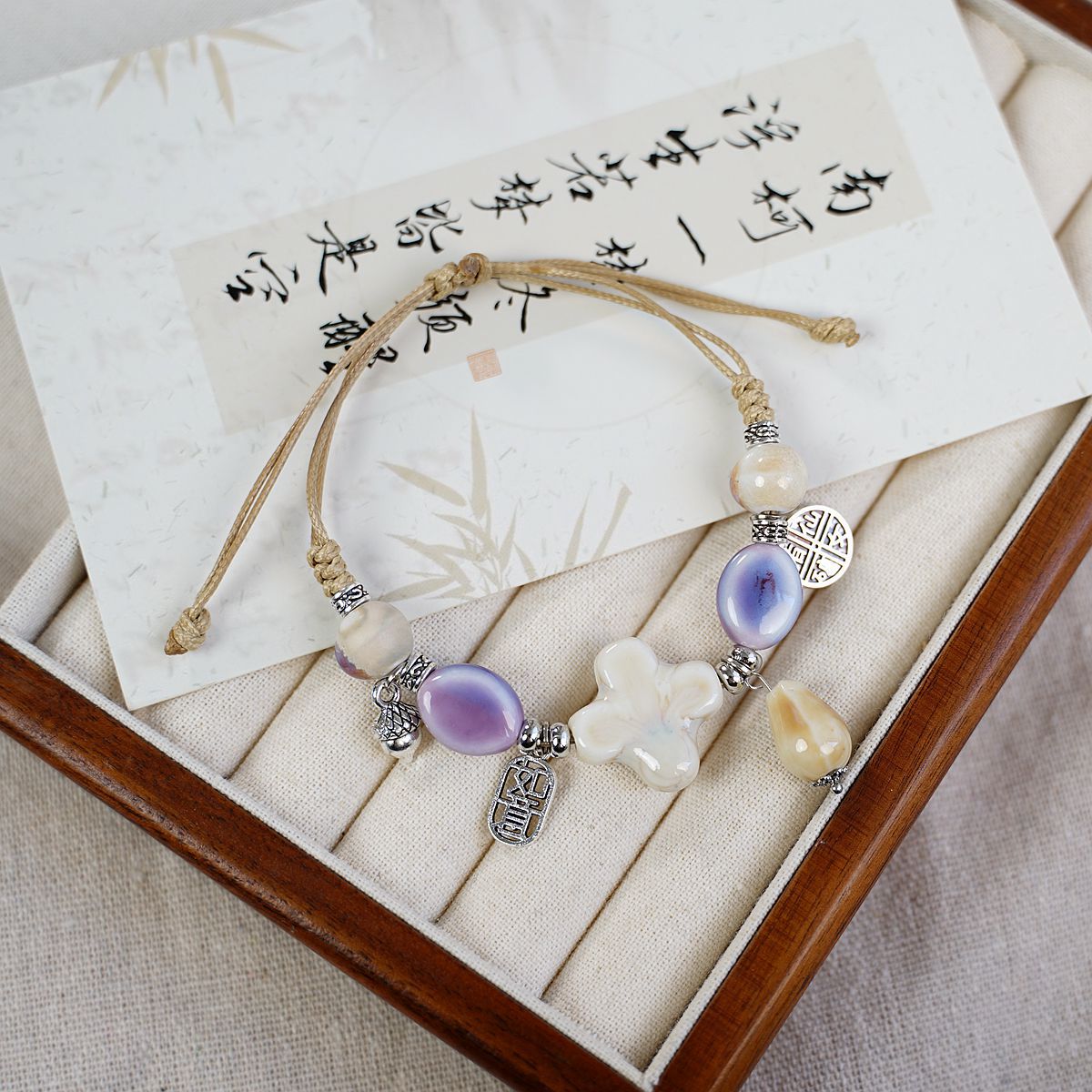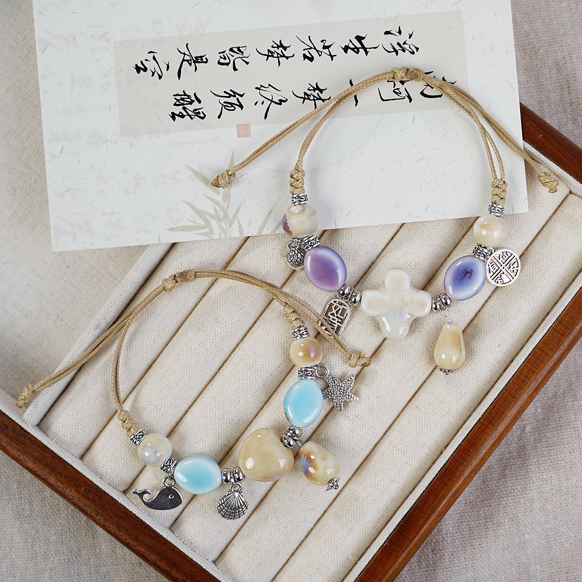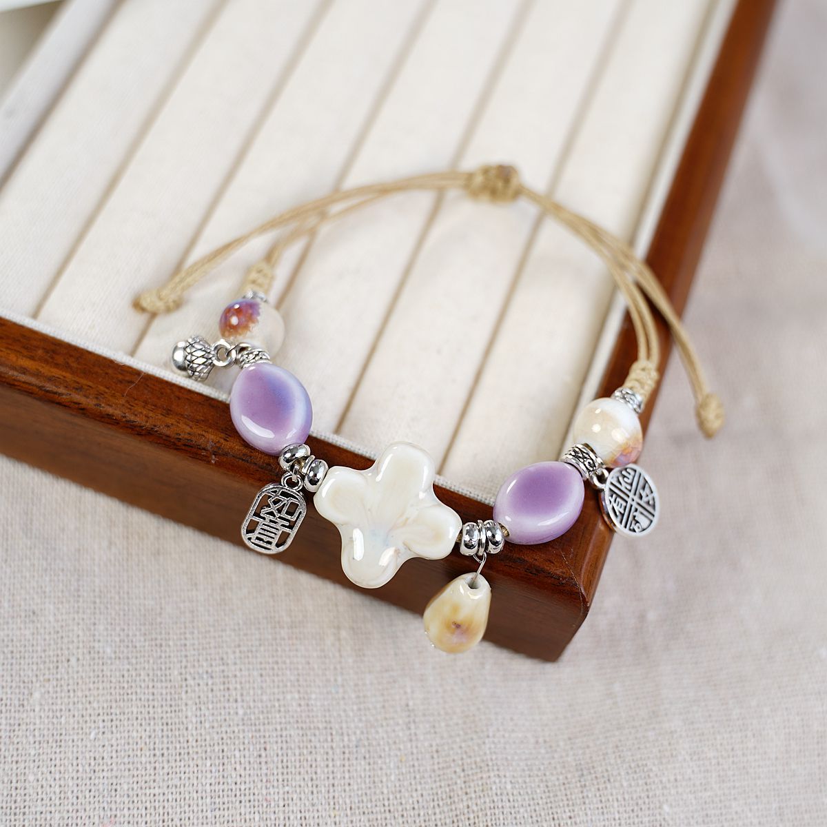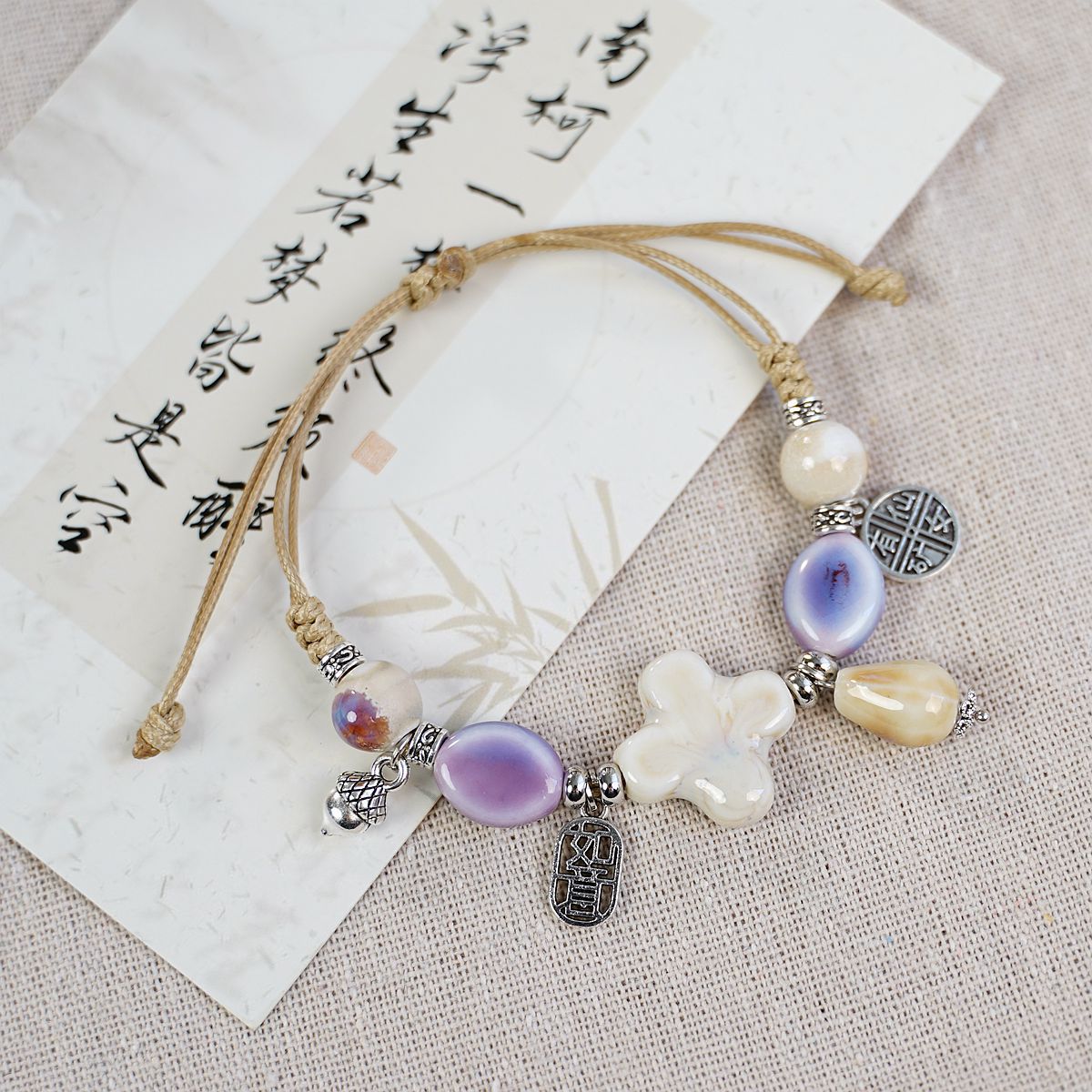 새로운 민족 스타일 틈새 디자인 고급 센스 Jingdezhen 세라믹 팔찌 여성 도매 도자기 구슬 구슬 손 로프 보석스토어 가기