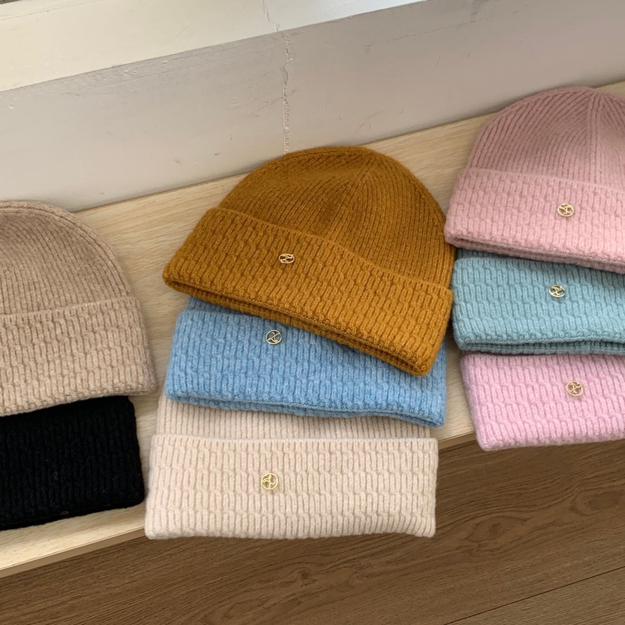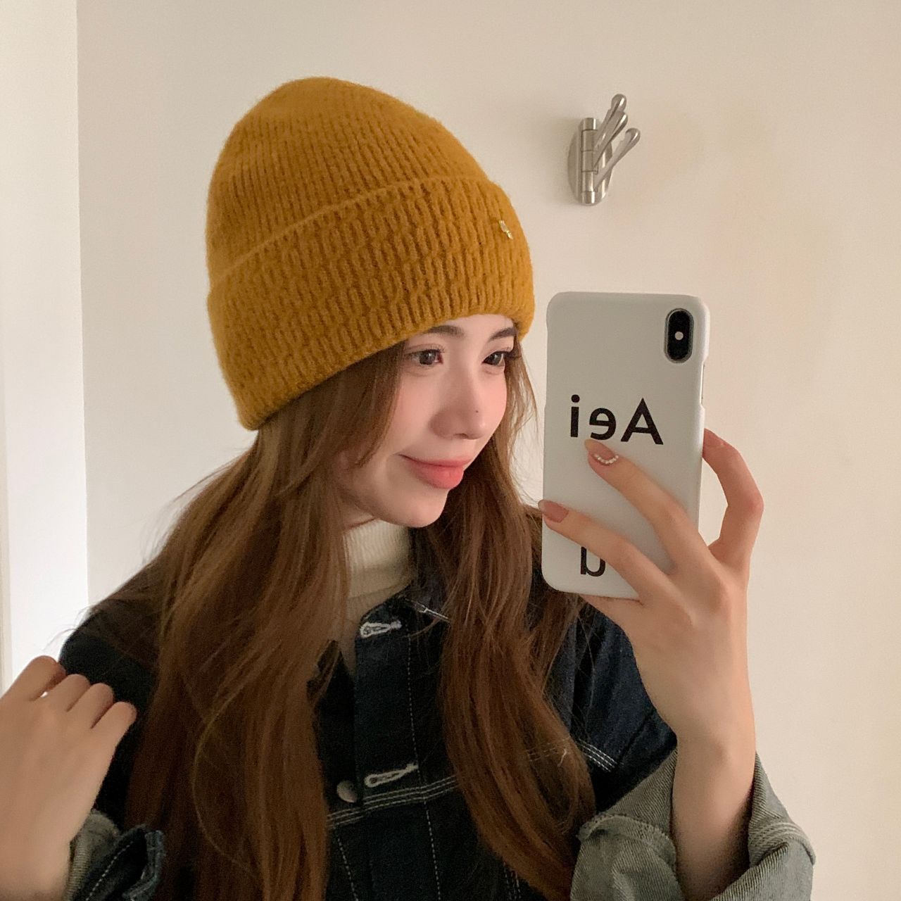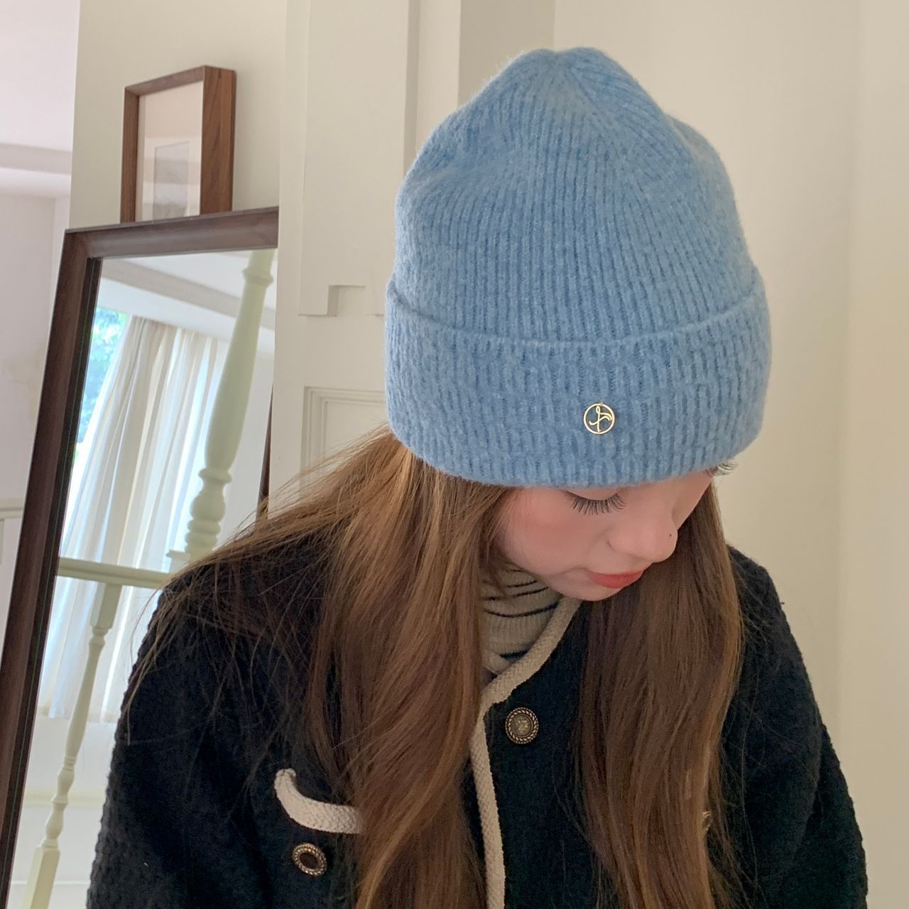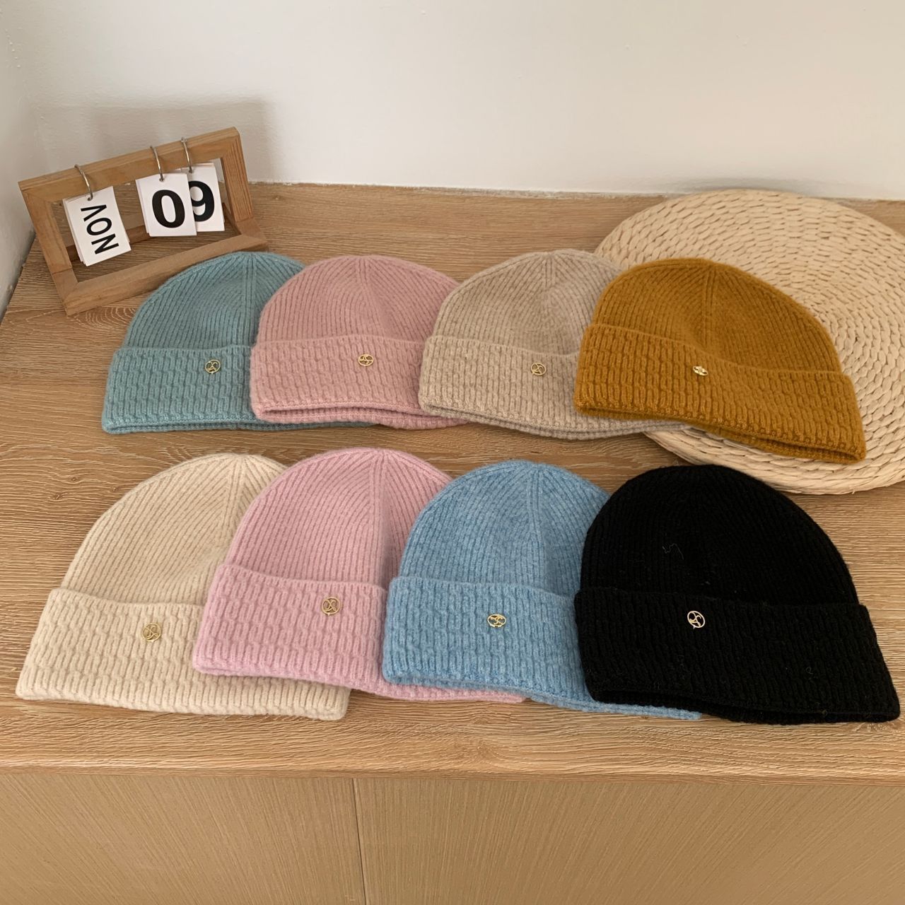 가을과 겨울 기본 올매치 니트 모자 중기 간단한 자카드 접이식 헤드 캡 여성의 겨울 따뜻한 귀 보호 캡스토어 가기