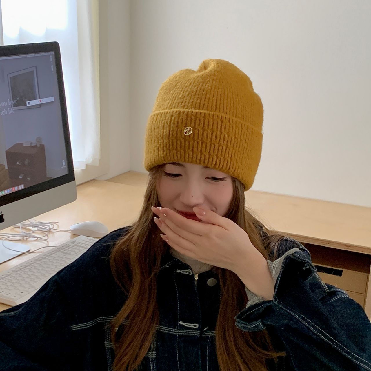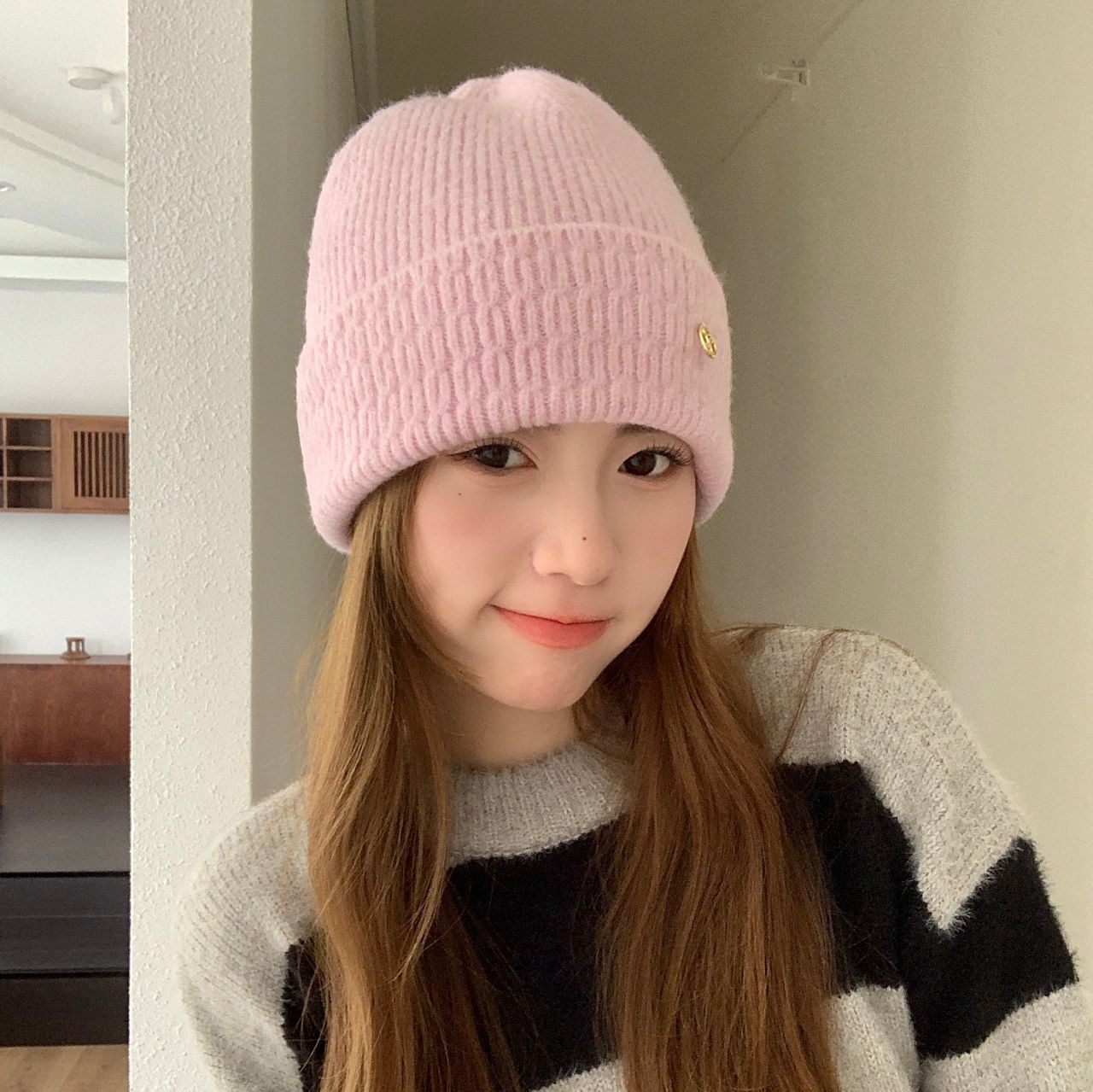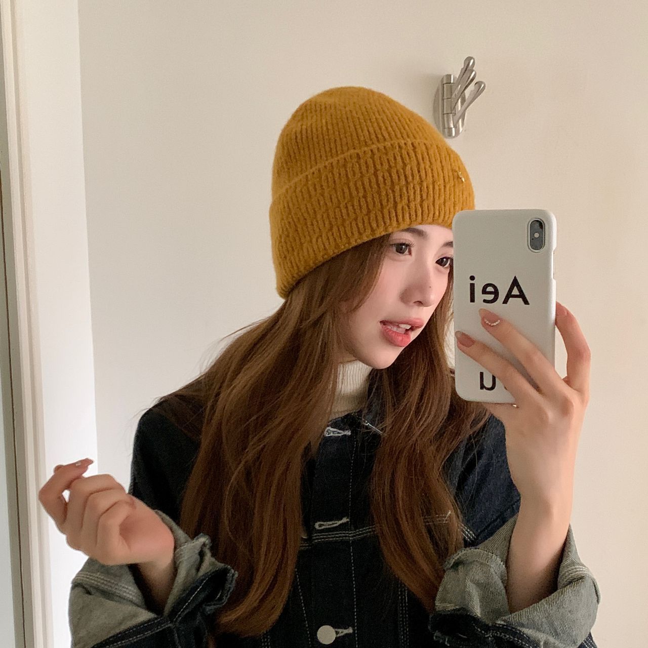 가을과 겨울 기본 올매치 니트 모자 중기 간단한 자카드 접이식 헤드 캡 여성의 겨울 따뜻한 귀 보호 캡스토어 가기