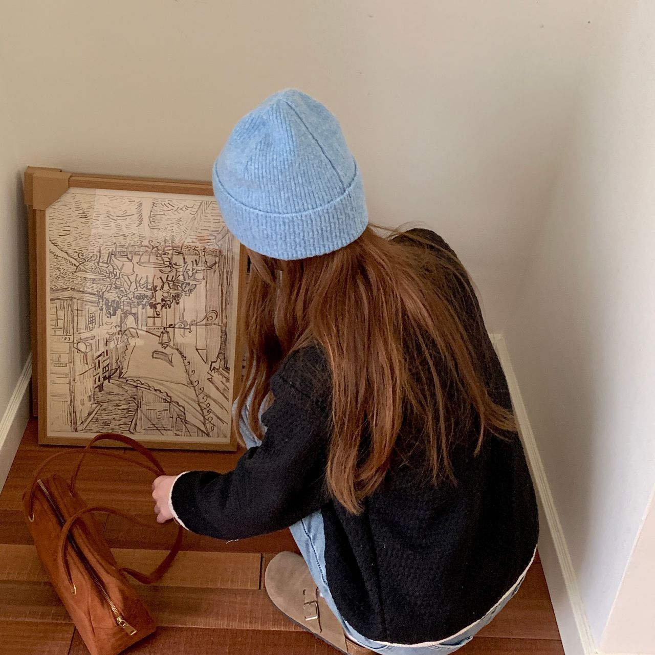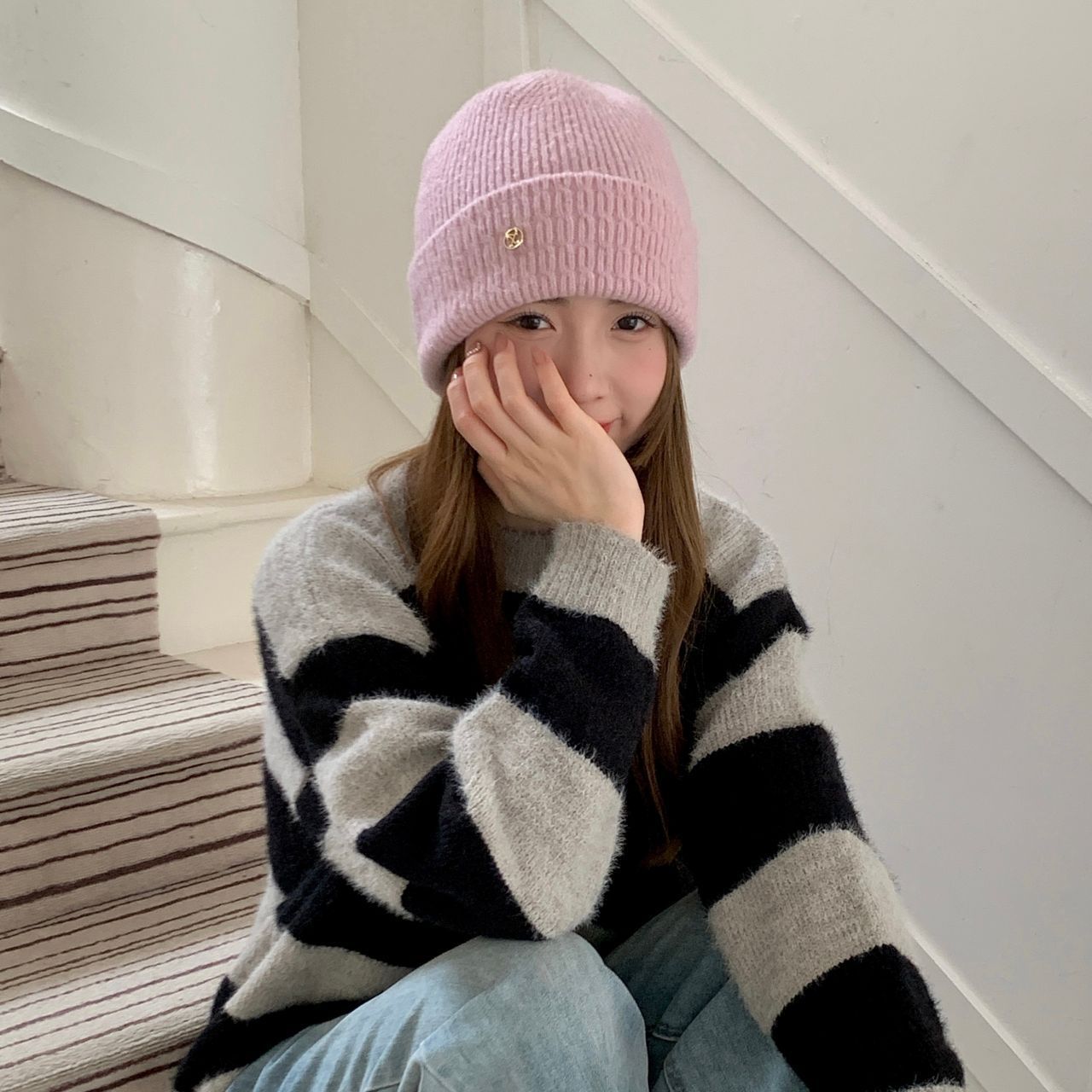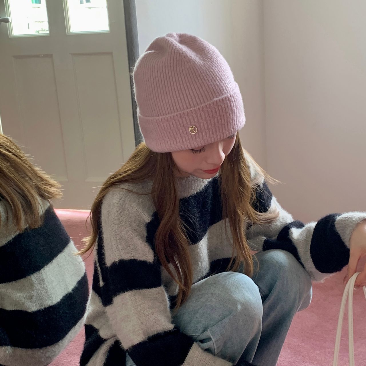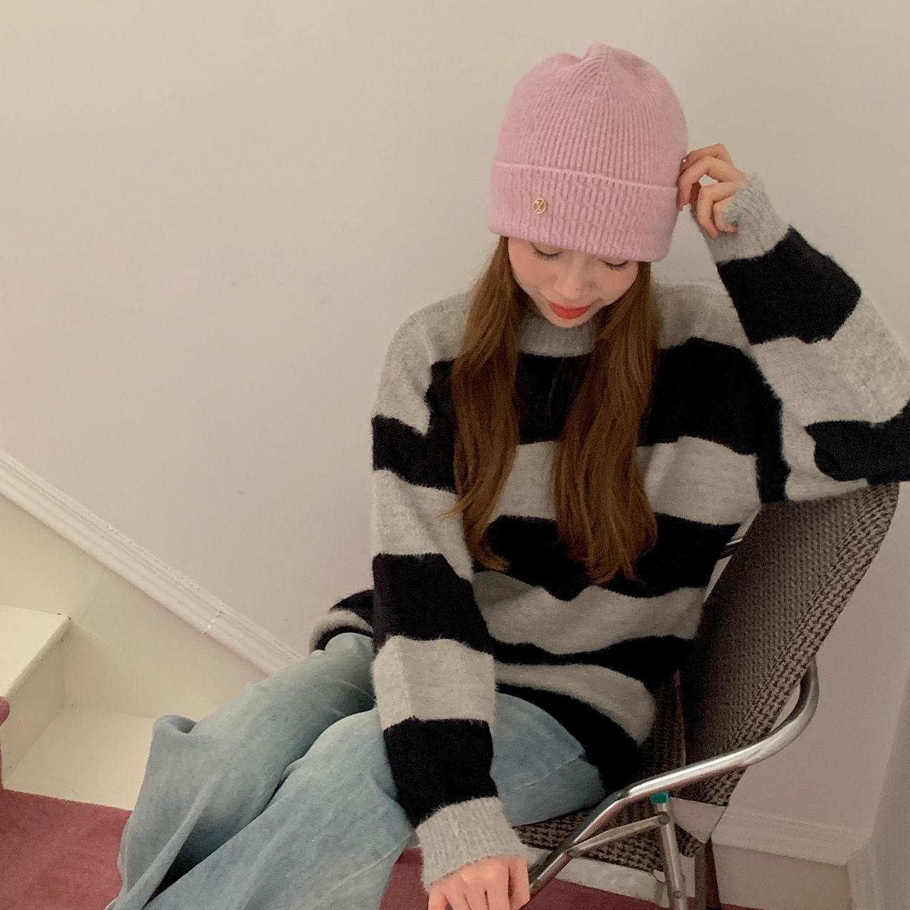 가을과 겨울 기본 올매치 니트 모자 중기 간단한 자카드 접이식 헤드 캡 여성의 겨울 따뜻한 귀 보호 캡스토어 가기