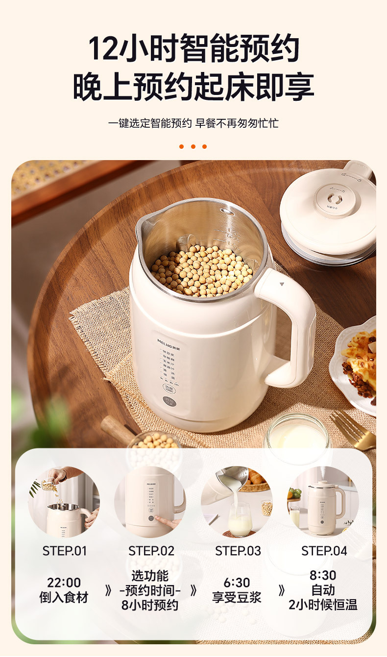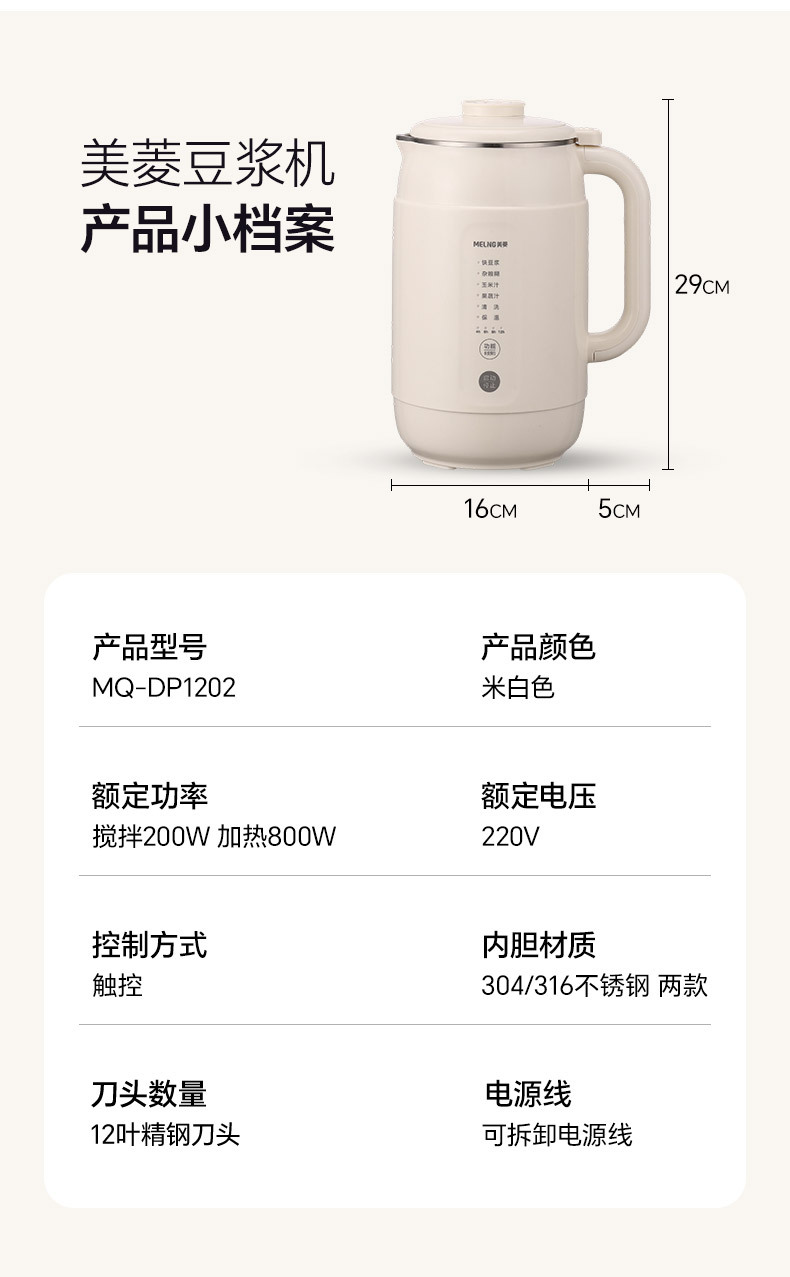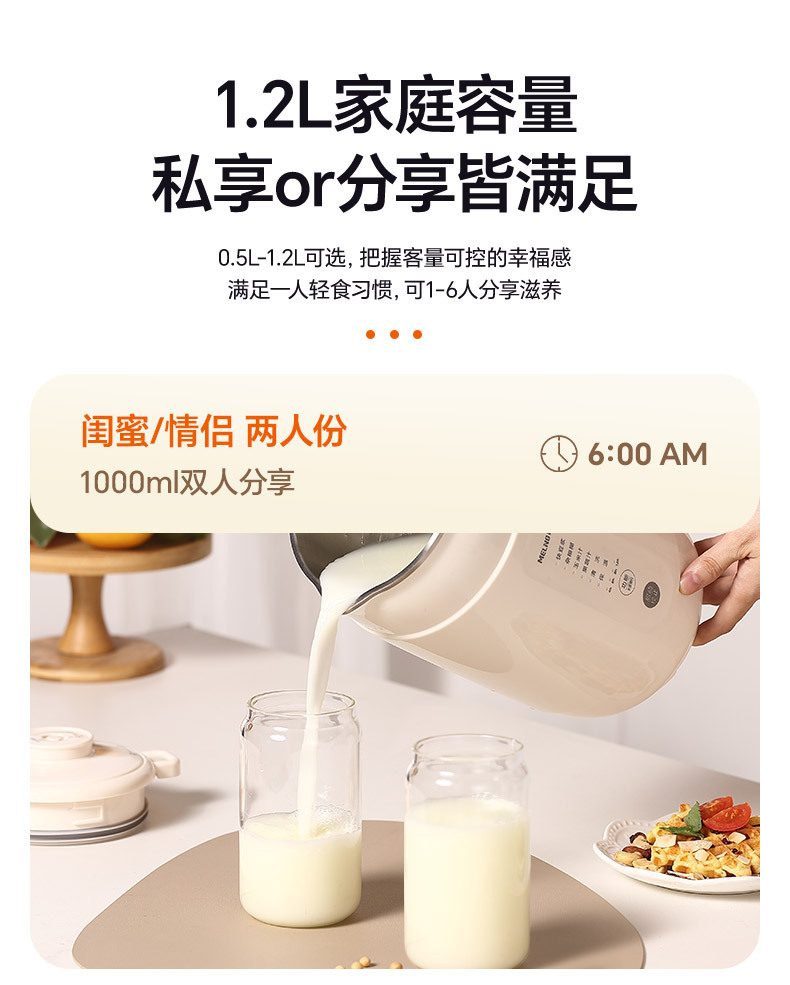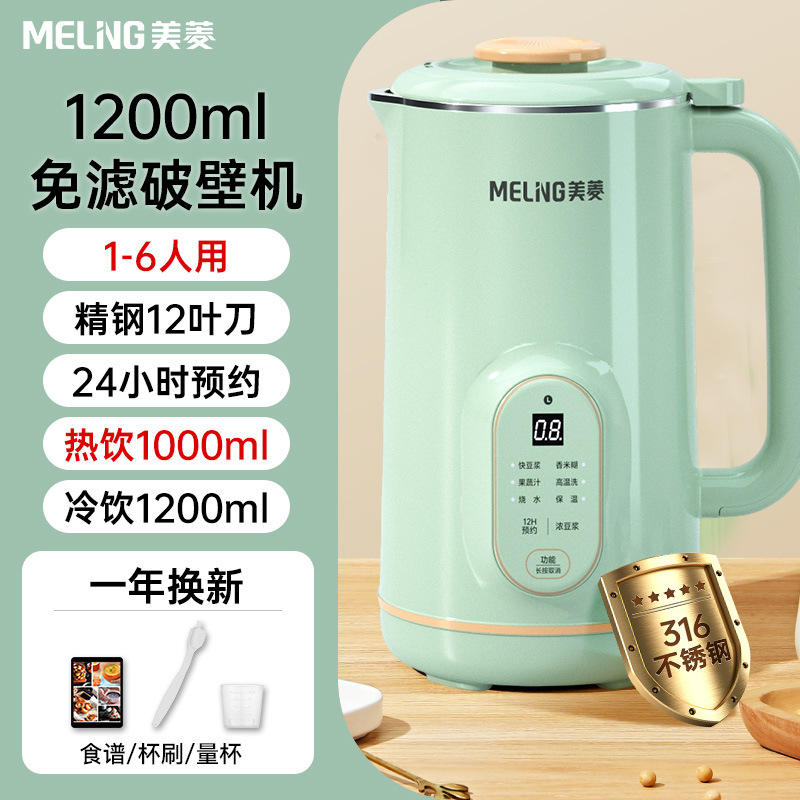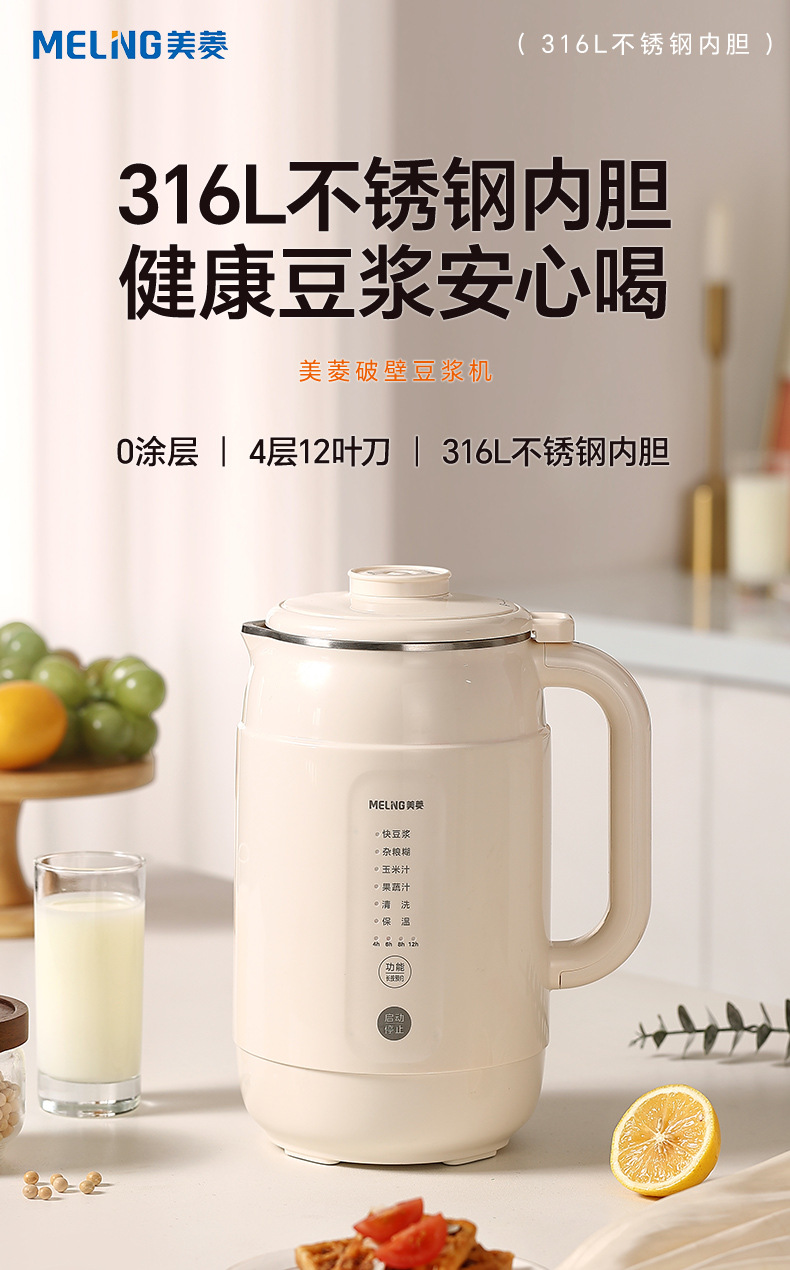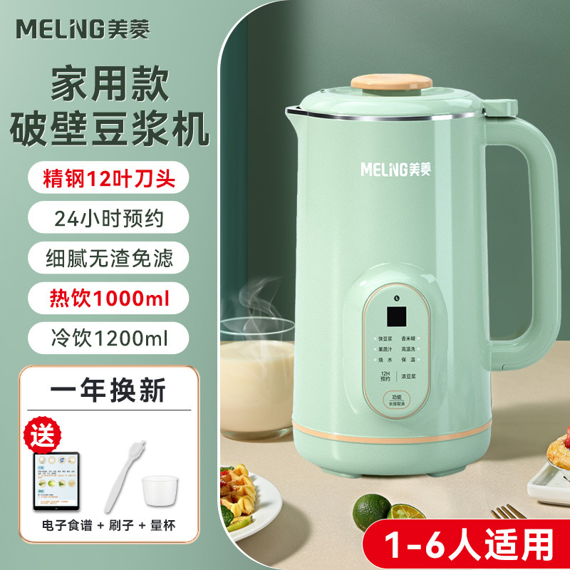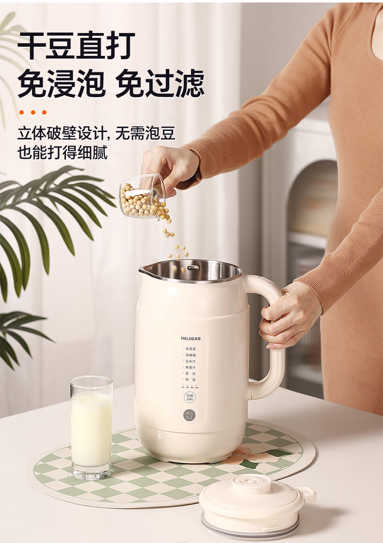 MeiLing 두유 기계 3-4인 가정용 식품 보충 기계 완전 자동 다기능 요리 없음 필터링 없음 지능형 깨는 기계