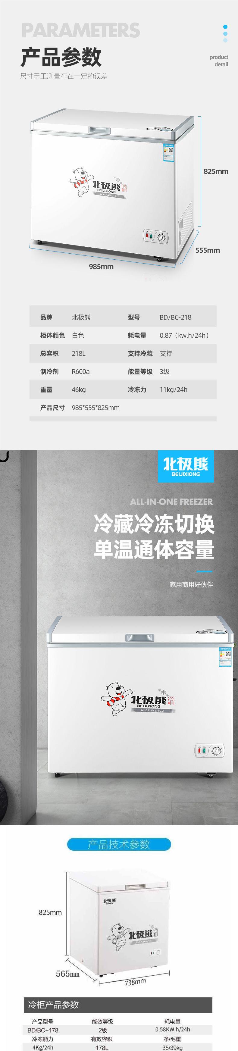 북극곰 가정용 냉동고 냉동 변환 수평 단일 온도 캐비닛 미니 냉동고 작은 상업용 냉동고스토어 가기