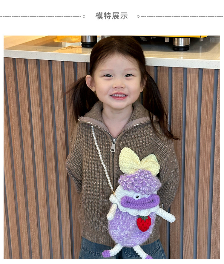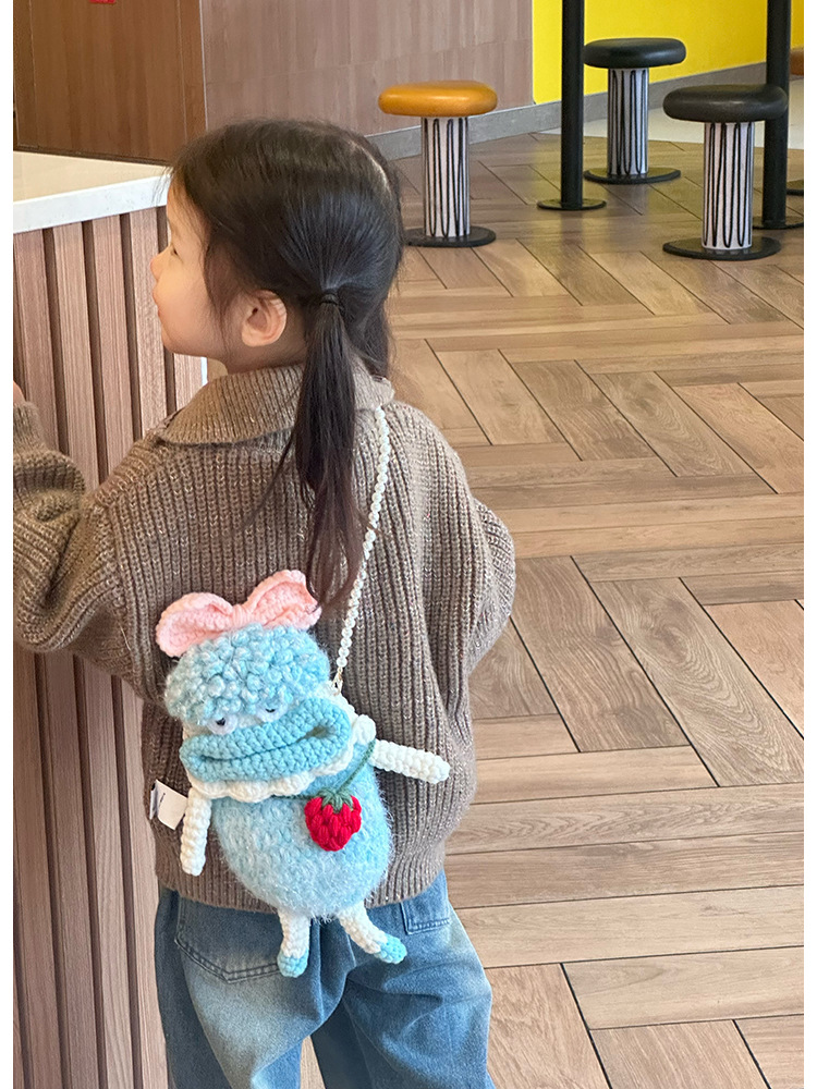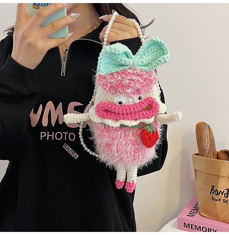 아기의 동전 지갑 귀여운 만화 양모 뜨개질 가방 모든 경기 패션 큰 입 소녀 부모-자식 구슬 크로스 바디 백