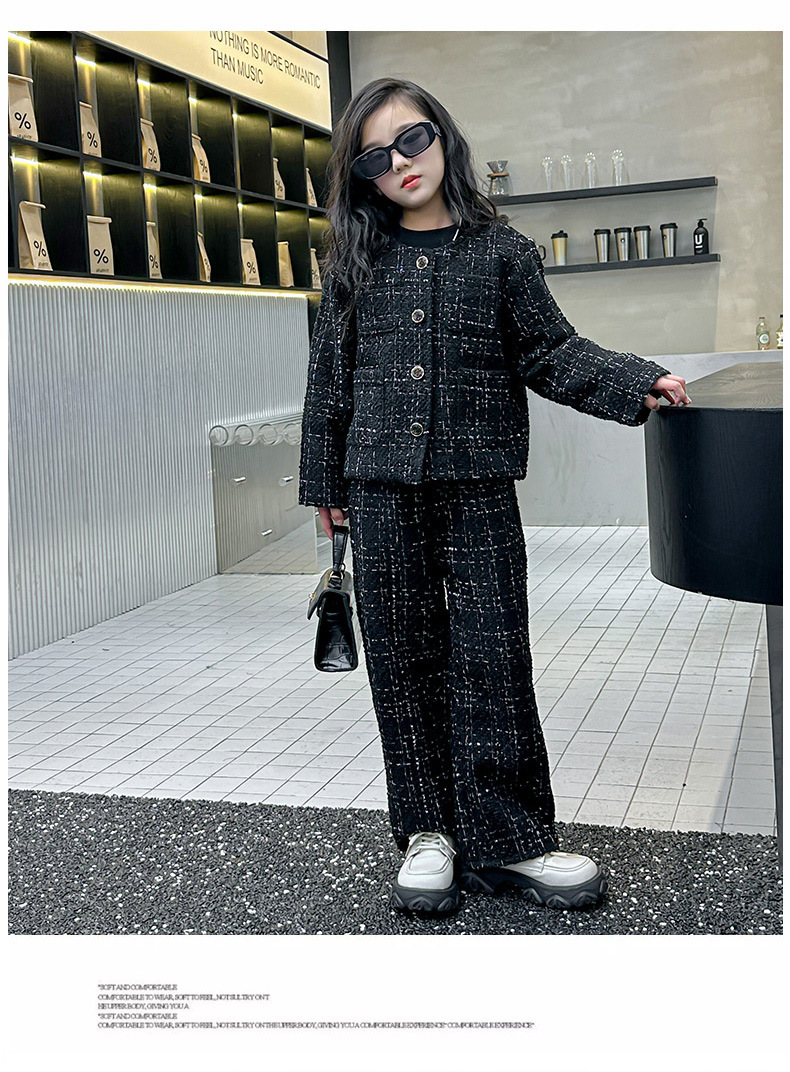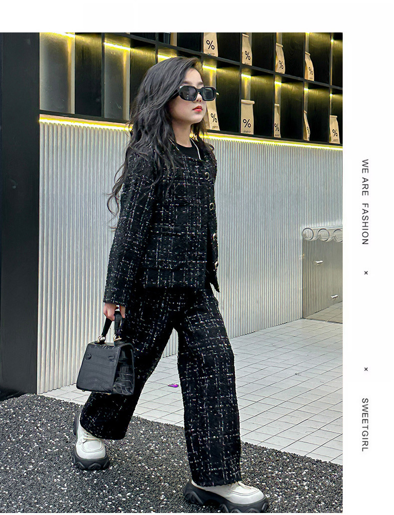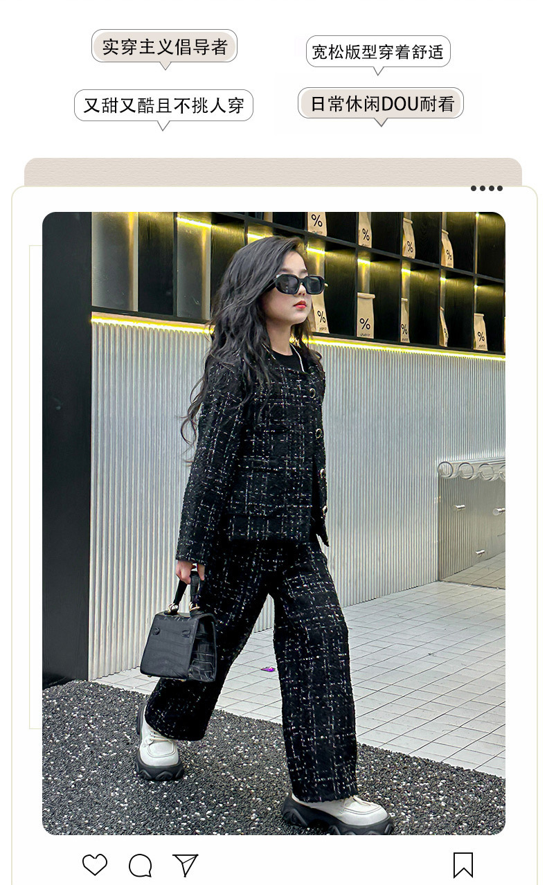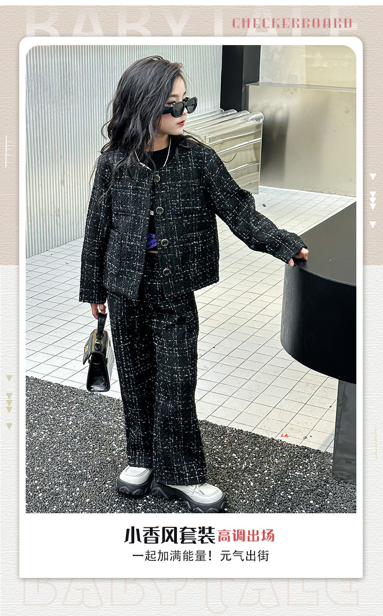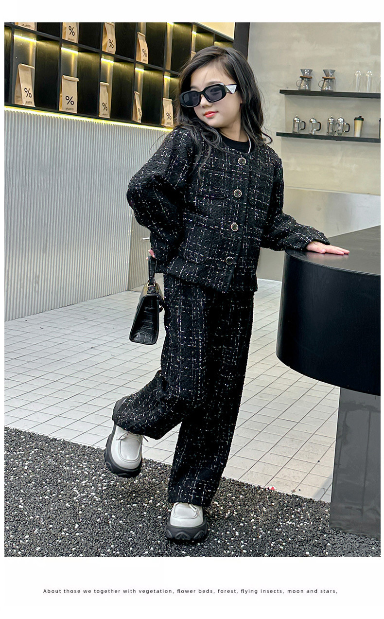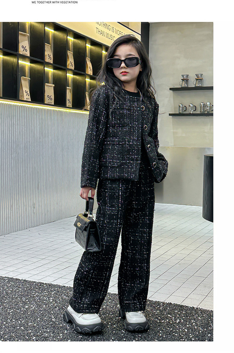큰 아이들을위한 유행 새로운 유행 샤넬 스타일 코트 2024 여자 가을 세트 한국 스타일 연예인을위한 유행 멋진 투피스 세트스토어 가기
