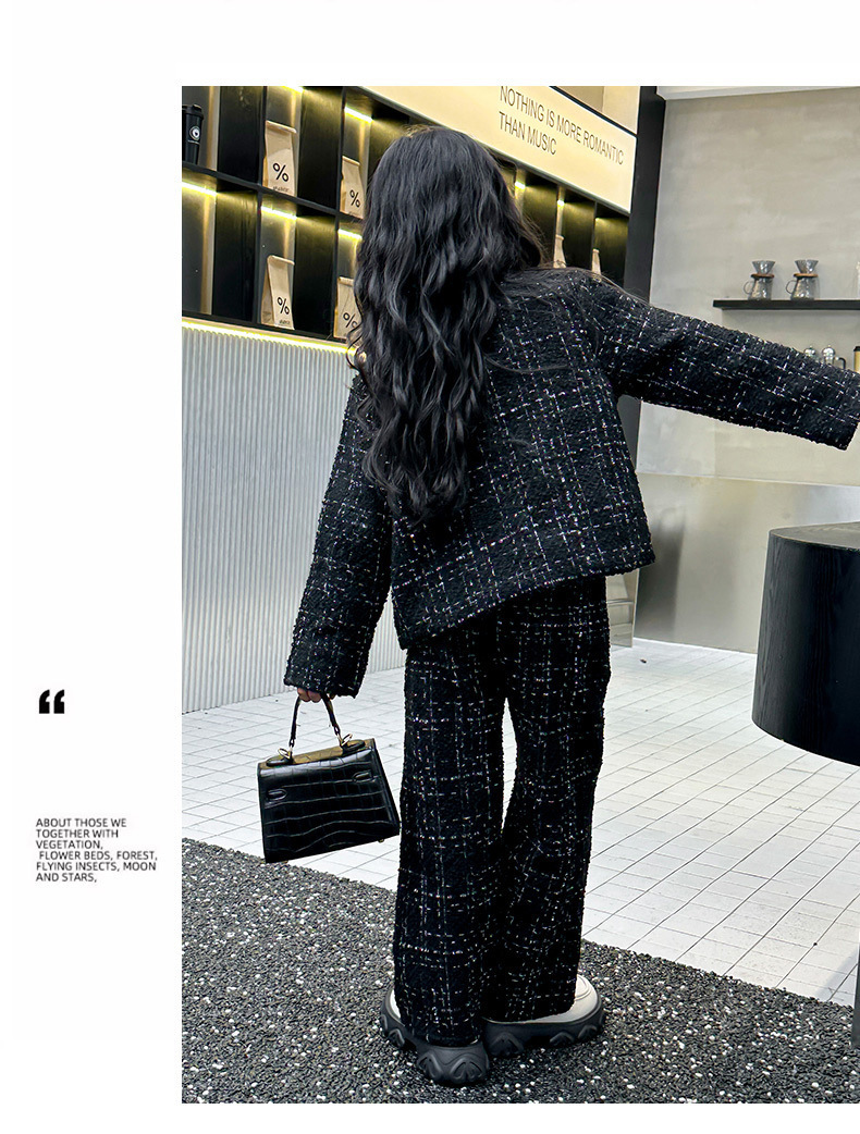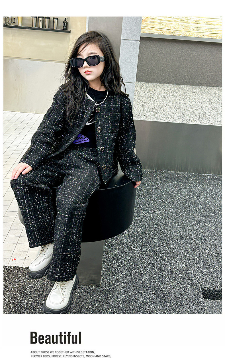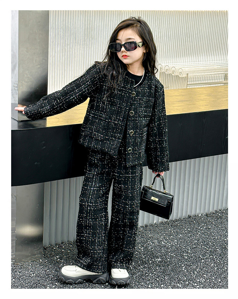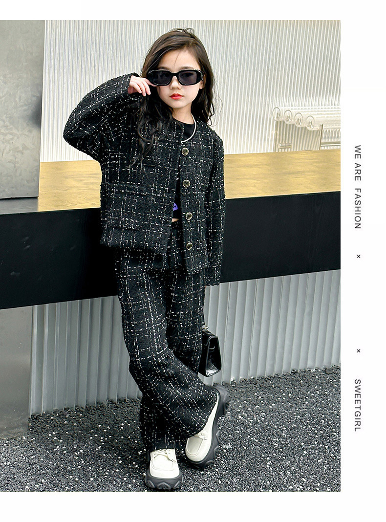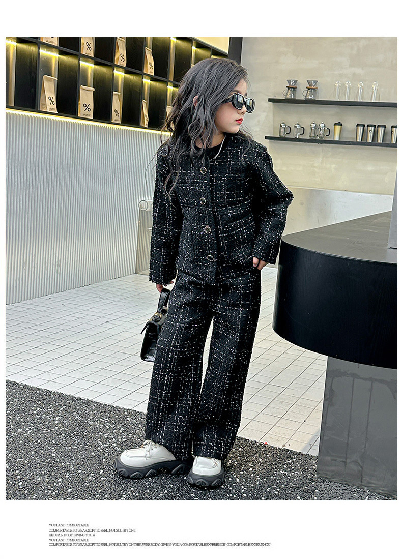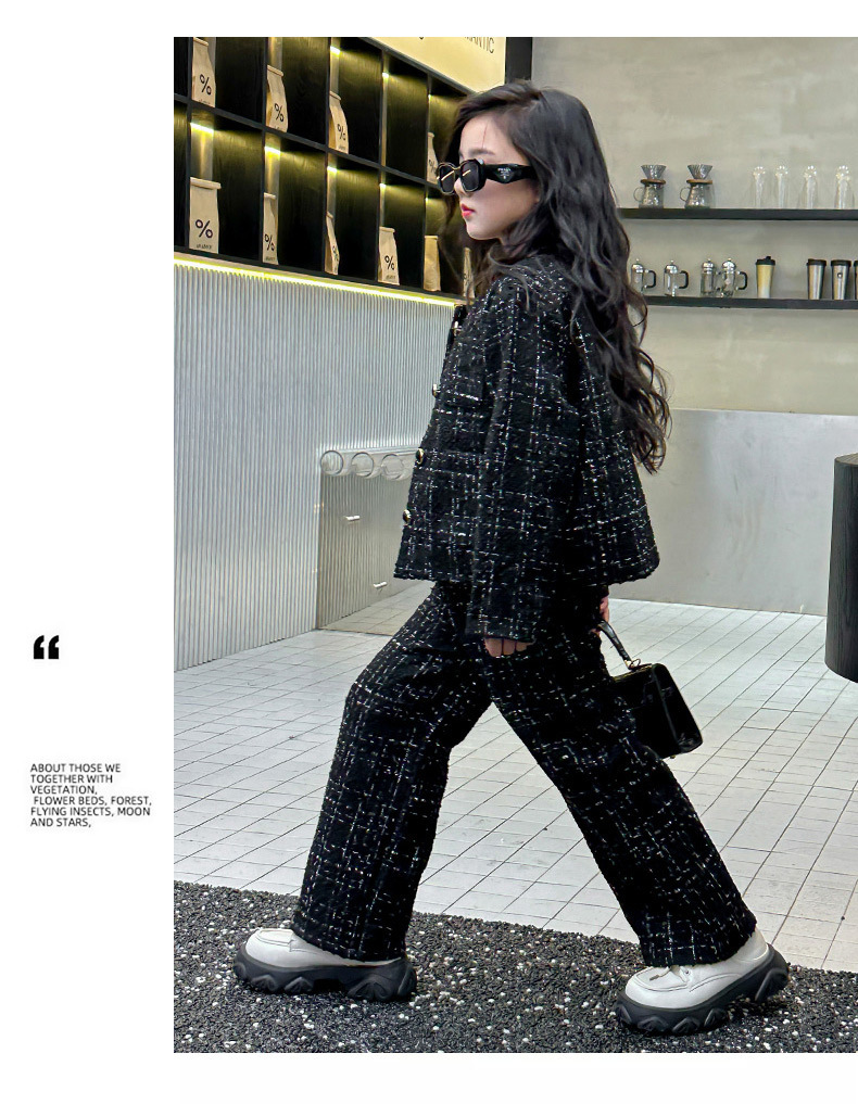 큰 아이들을위한 유행 새로운 유행 샤넬 스타일 코트 2024 여자 가을 세트 한국 스타일 연예인을위한 유행 멋진 투피스 세트스토어 가기