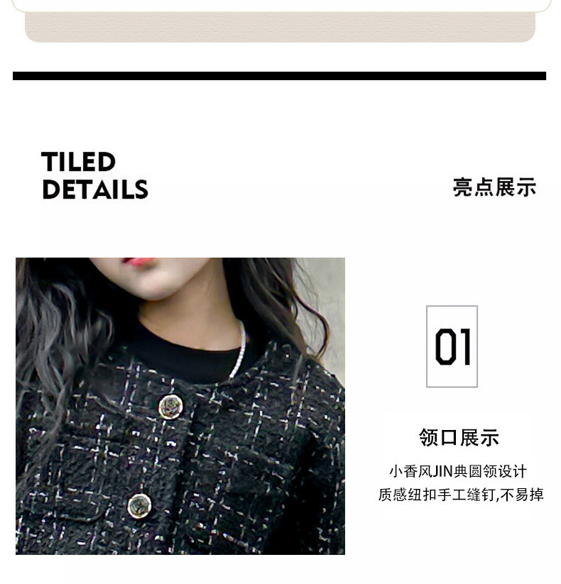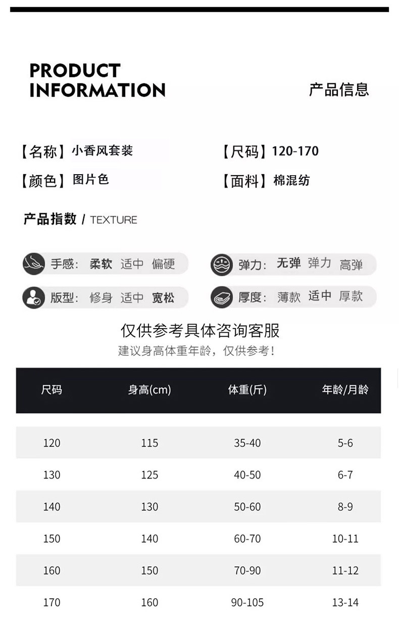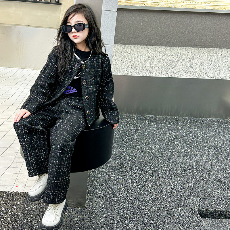 큰 아이들을위한 유행 새로운 유행 샤넬 스타일 코트 2024 여자 가을 세트 한국 스타일 연예인을위한 유행 멋진 투피스 세트