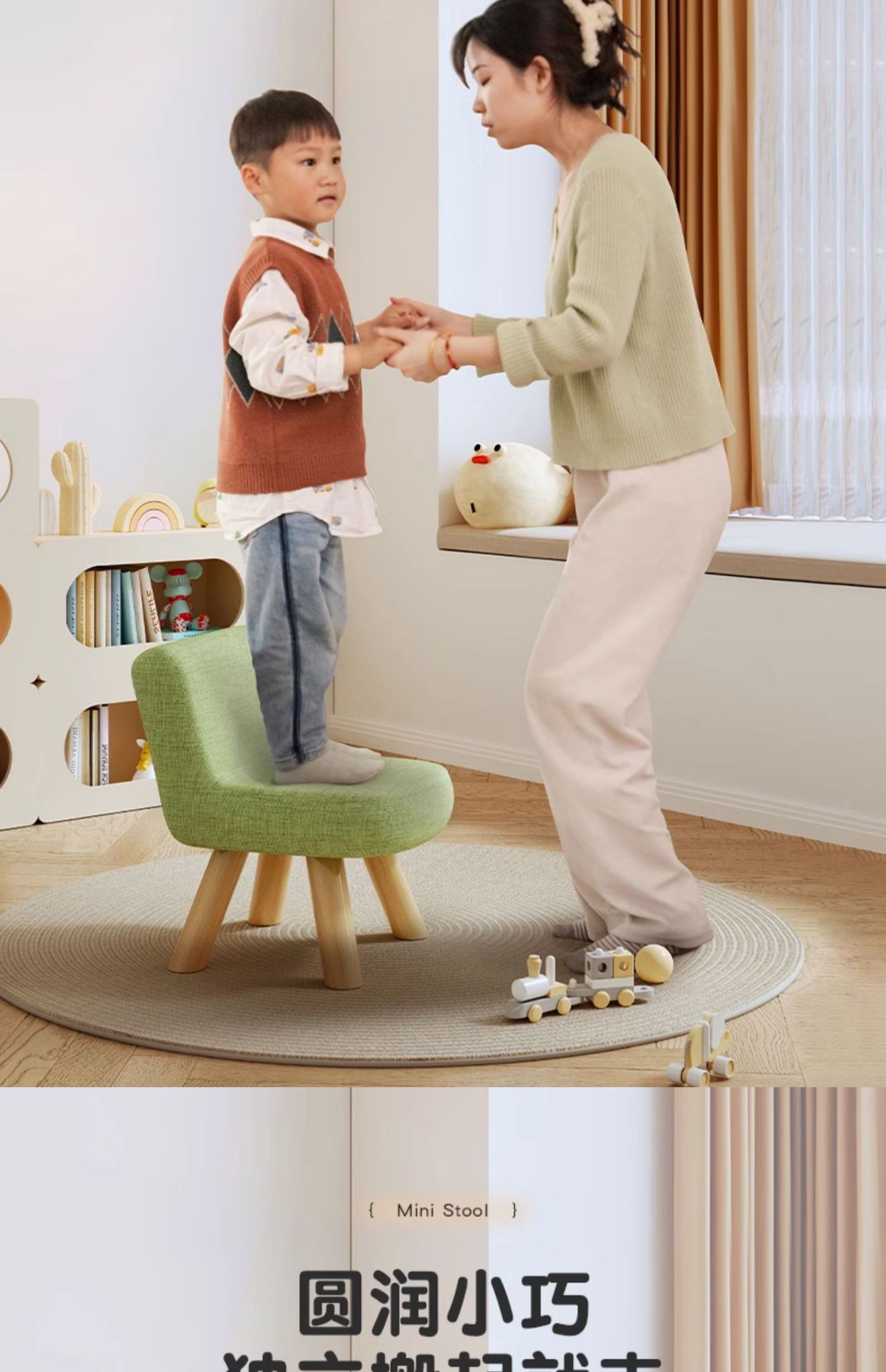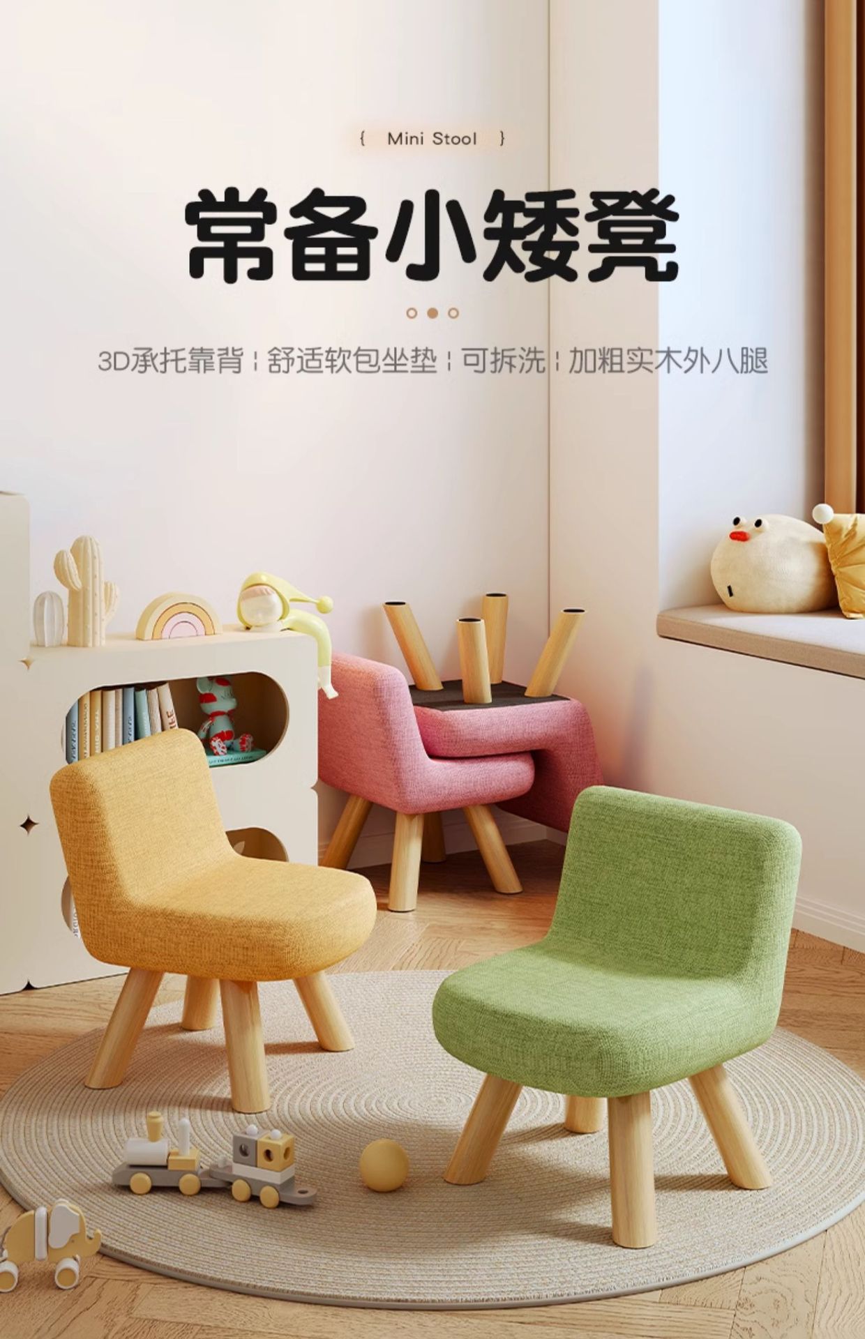 작은 의자 가구 낮은 의자 등받이 작은 의자 거실 다채로운 신발 변경 의자 간단한 단단한 나무 어린이 직물 작은 의자스토어 가기
