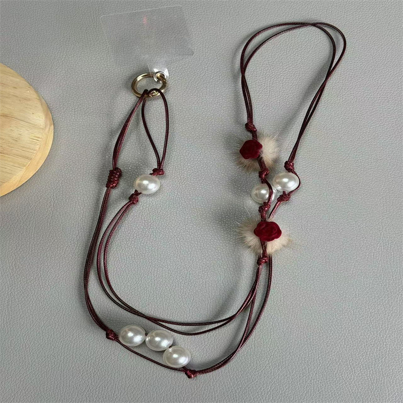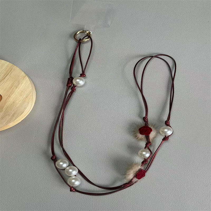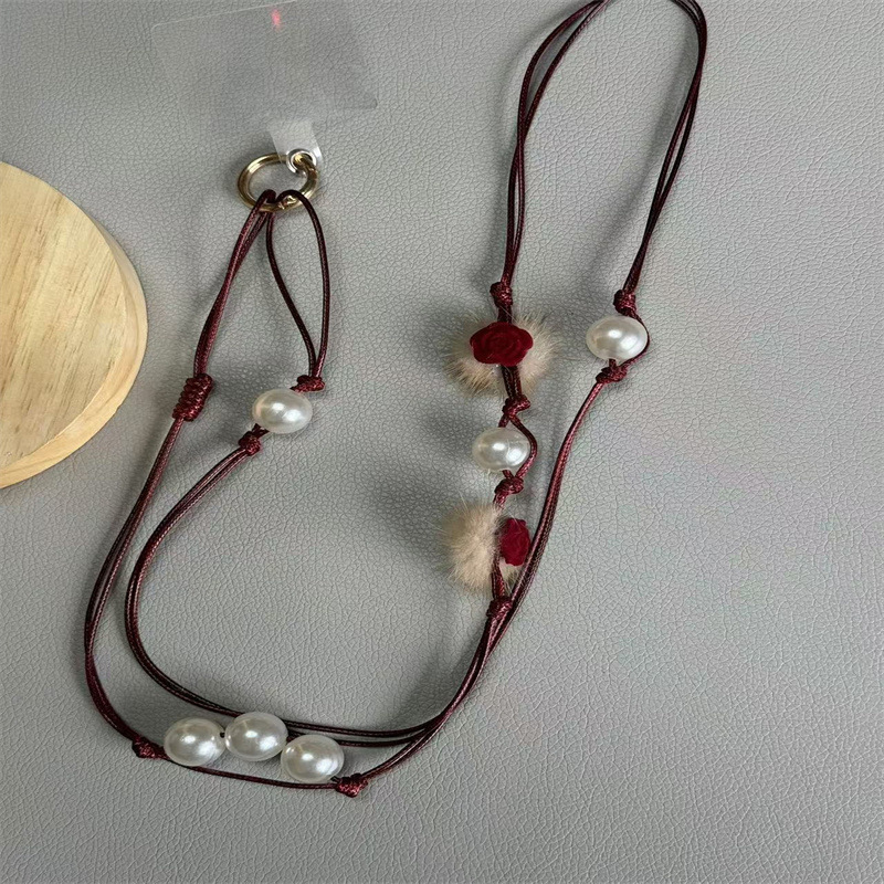 새로운 스타일 봉제 레드 로즈 펄 올 매치 가을과 겨울 소녀의 가방 장식 매달려있는 체인 목 로프 유니버설 삽입