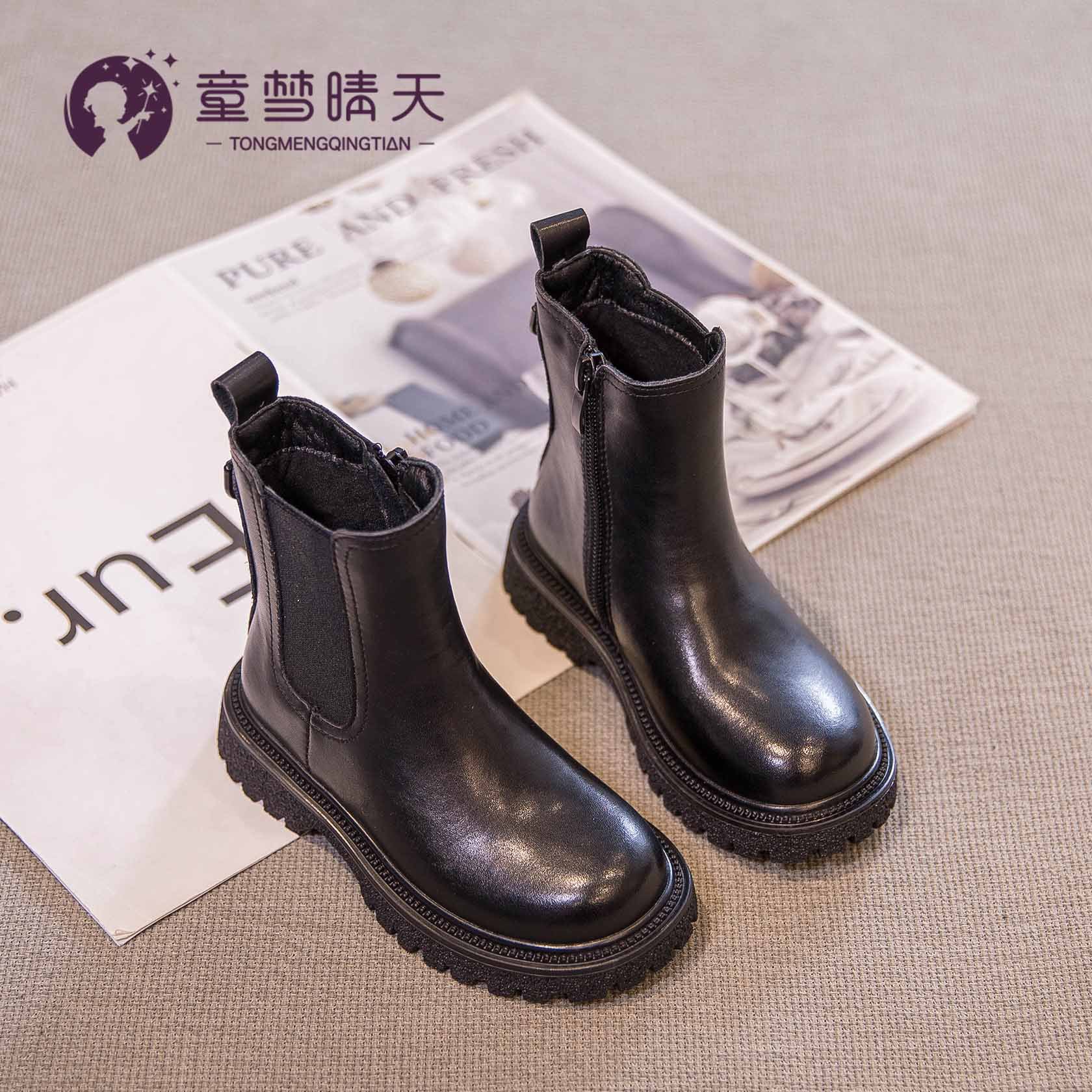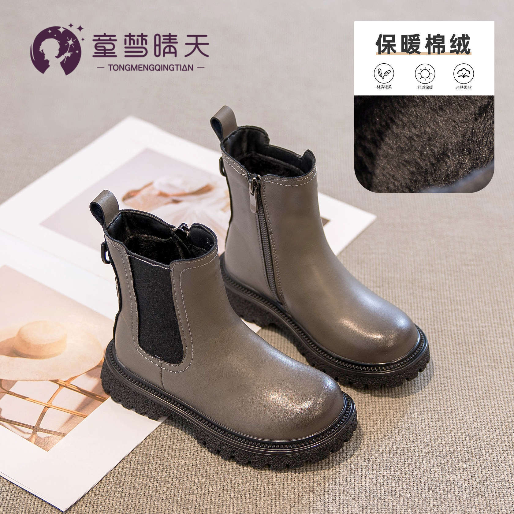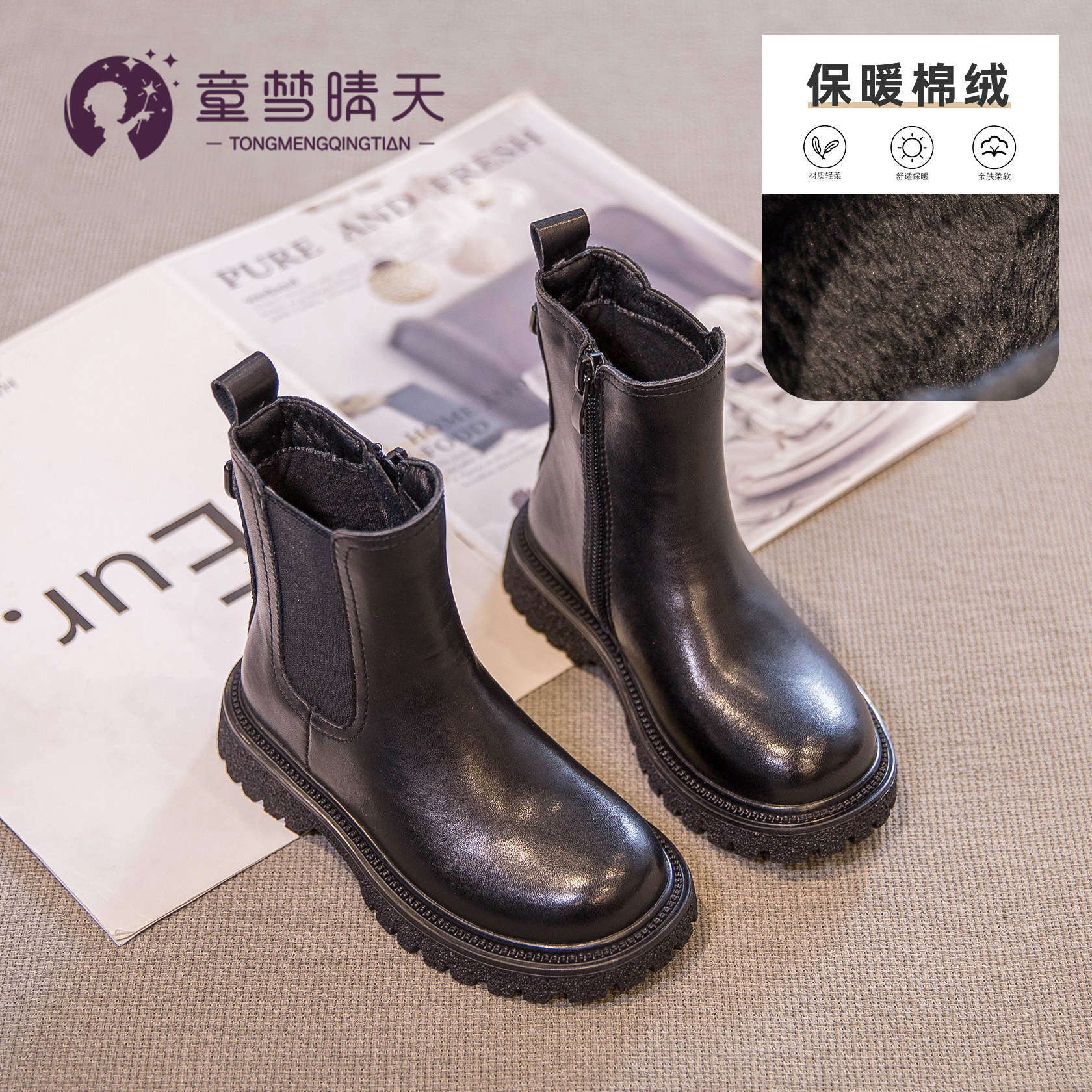 소녀 마틴 부츠 봄과 가을 2024 새로운 어린이 신발 작은 부츠 기모 짧은 부츠 가을 및 겨울 정품 가죽 소녀 가죽 부츠스토어 가기
