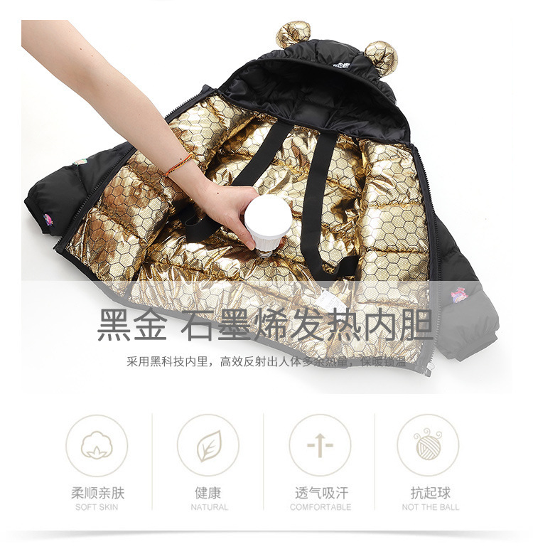 856 블랙 골드 아동용 면옷 남아 여아 그래핀 발열 면옷 유아용 두꺼운 면 재킷