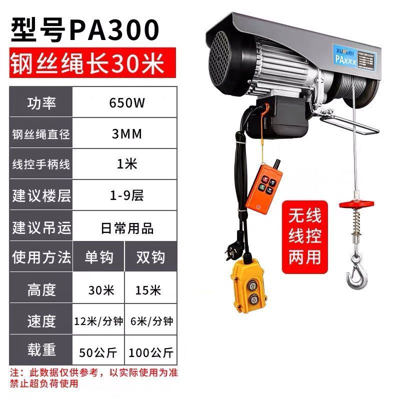 • 단일 후크 300 이중 후크 600kg - 원격 제어 강철 와이어 로프 길이 30m