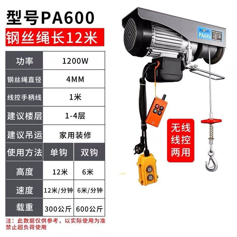 미니 전기 호이스트 무선 원격 제어 220v 소형 크레인 가정용 1 톤 크레인 호이스트 리프팅 전기 리프팅