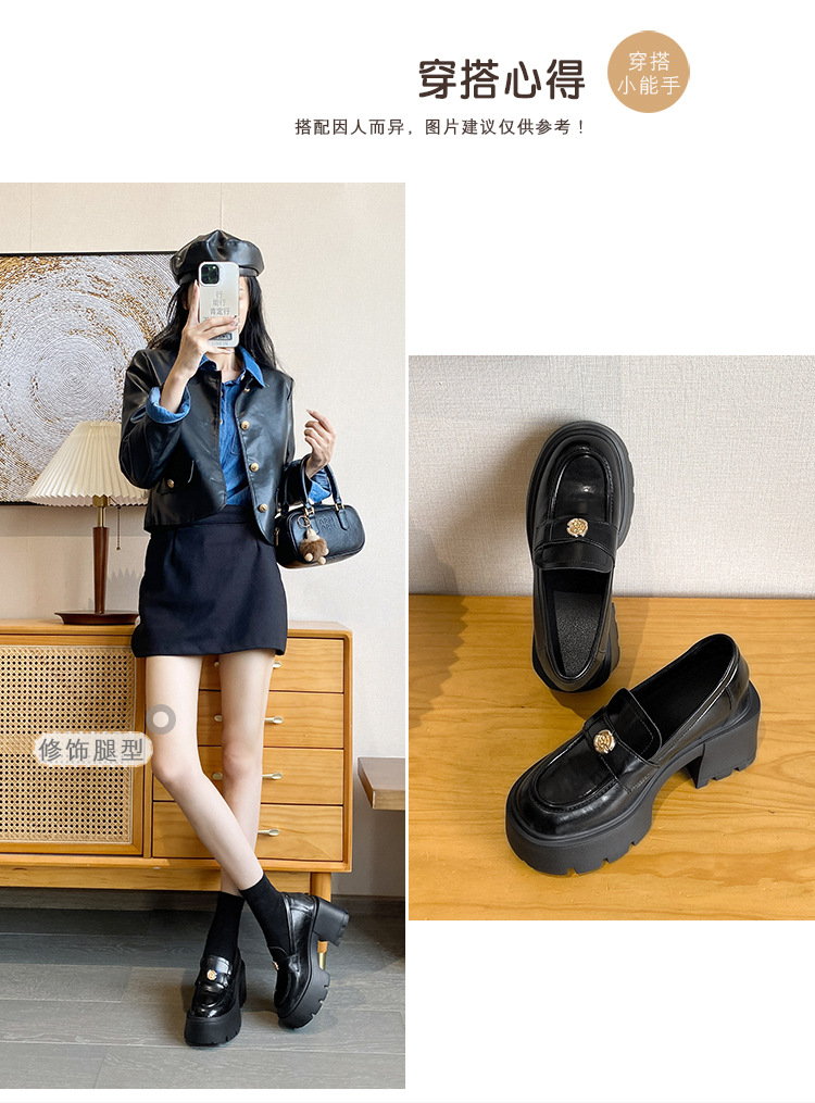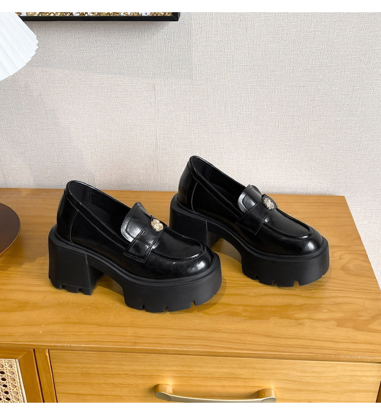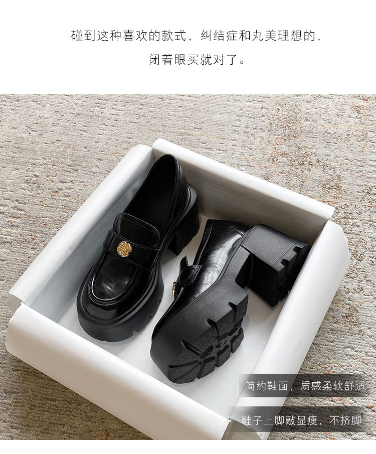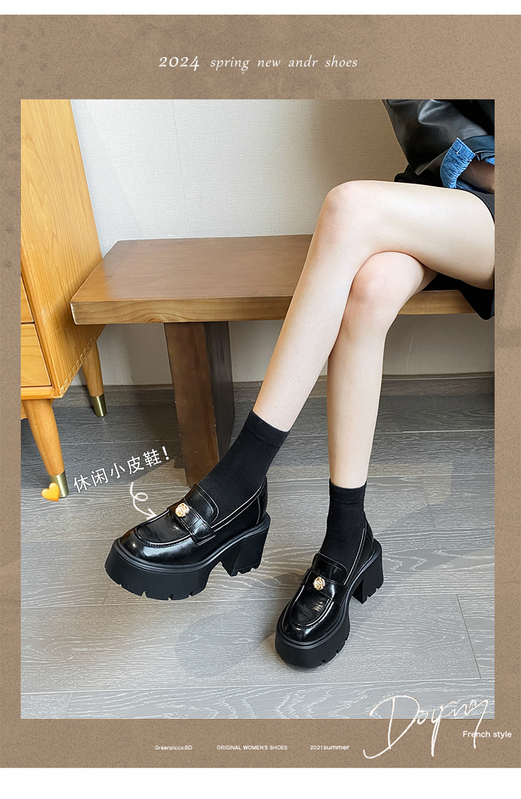 영국 스타일 작은 가죽 신발 여성의 2024 새로운 내부 높이 증가 작은 골드 버튼 로퍼 하이힐 플랫폼 신발 33