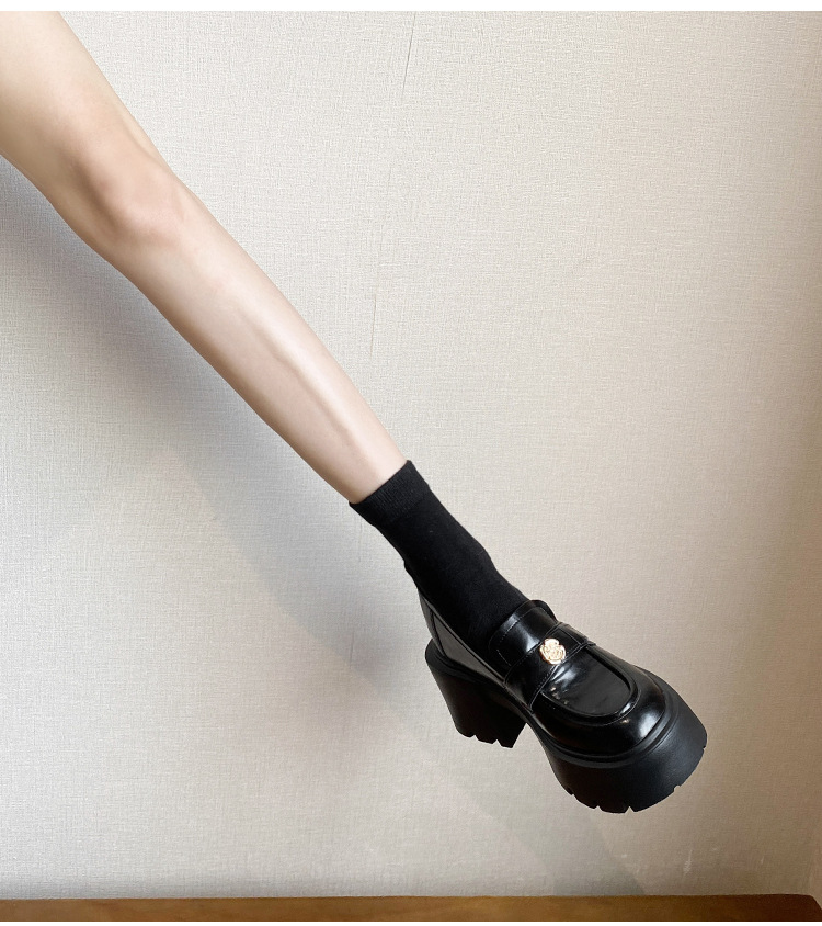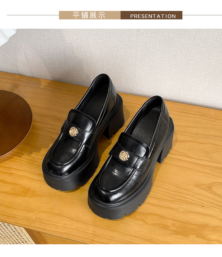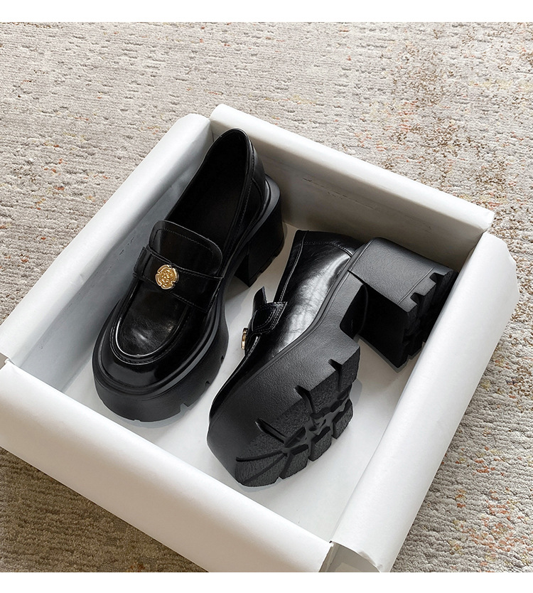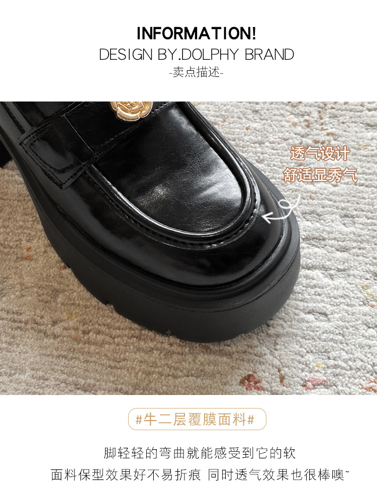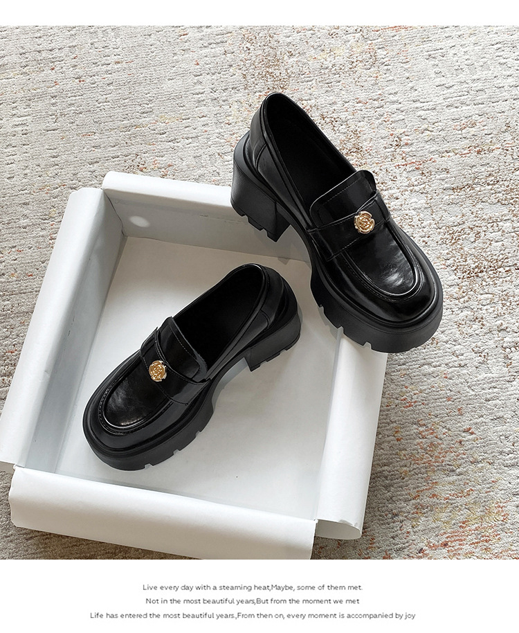 영국 스타일 작은 가죽 신발 여성의 2024 새로운 내부 높이 증가 작은 골드 버튼 로퍼 하이힐 플랫폼 신발 33