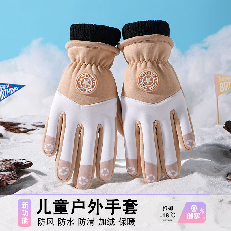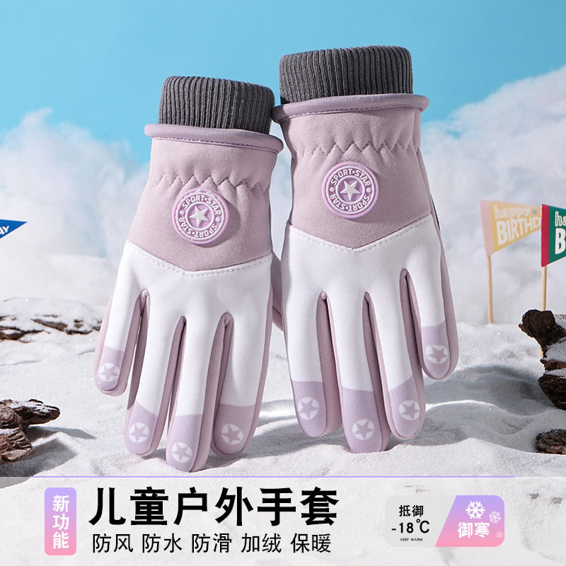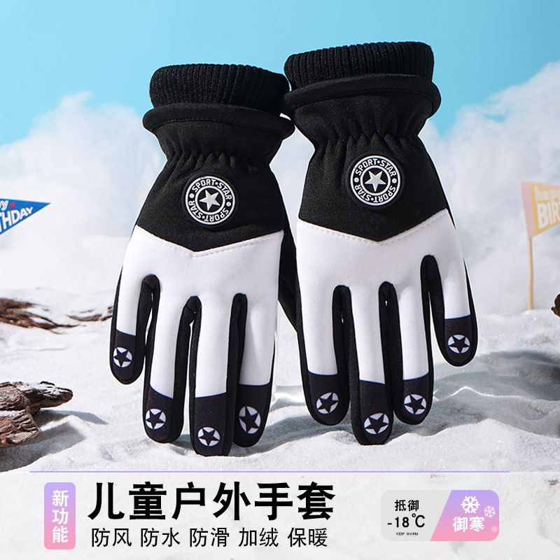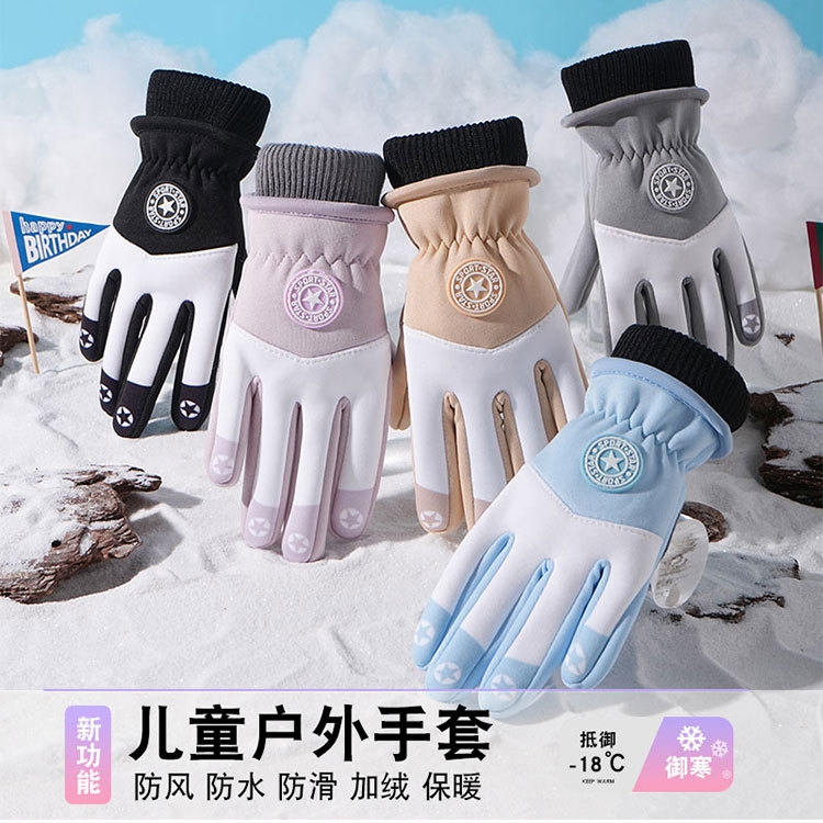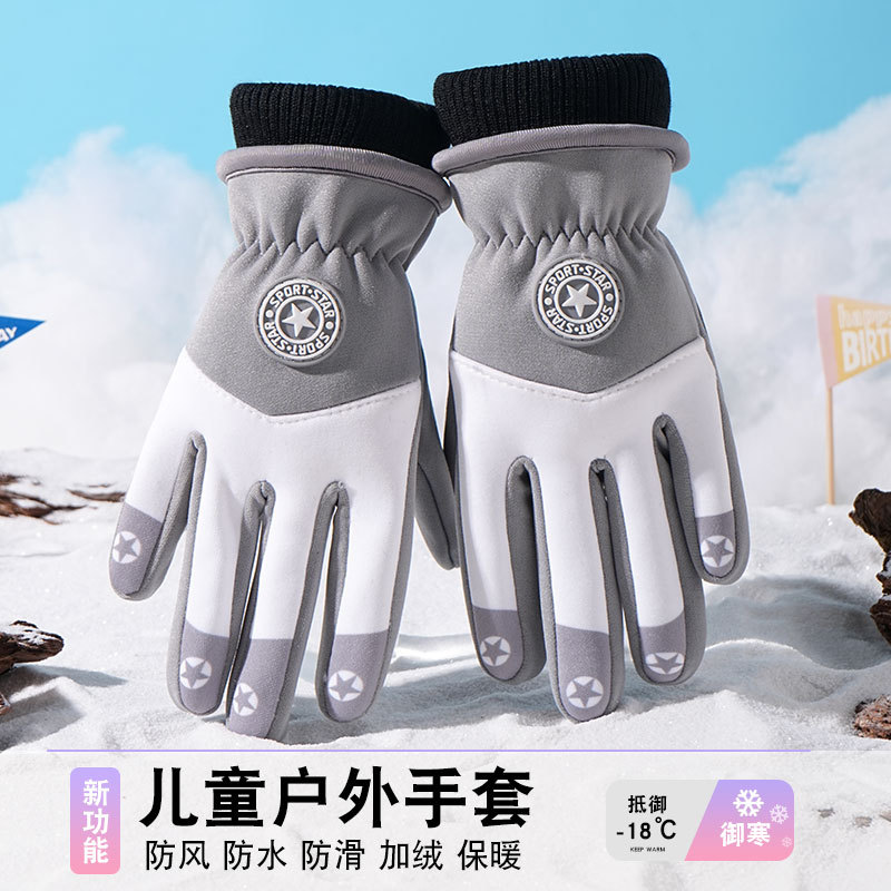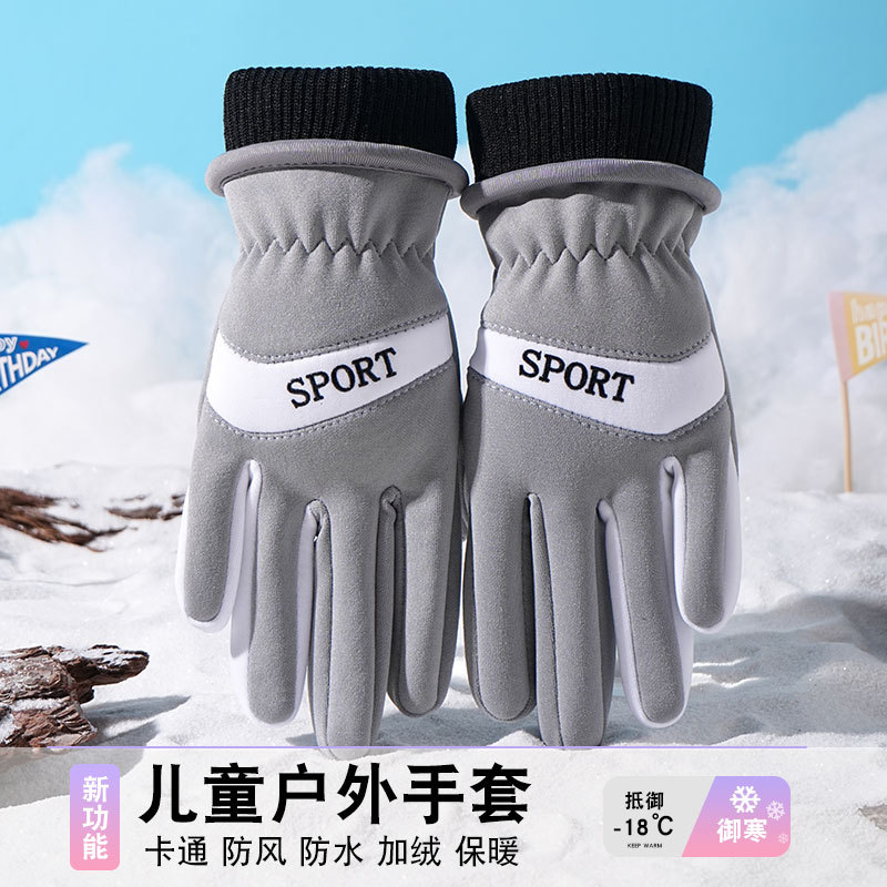 어린이 따뜻한 장갑 방풍 기모 미끄럼 방지 야외 놀이 눈 발수성 승마 미끄럼 방지 7-14 가을과 겨울
