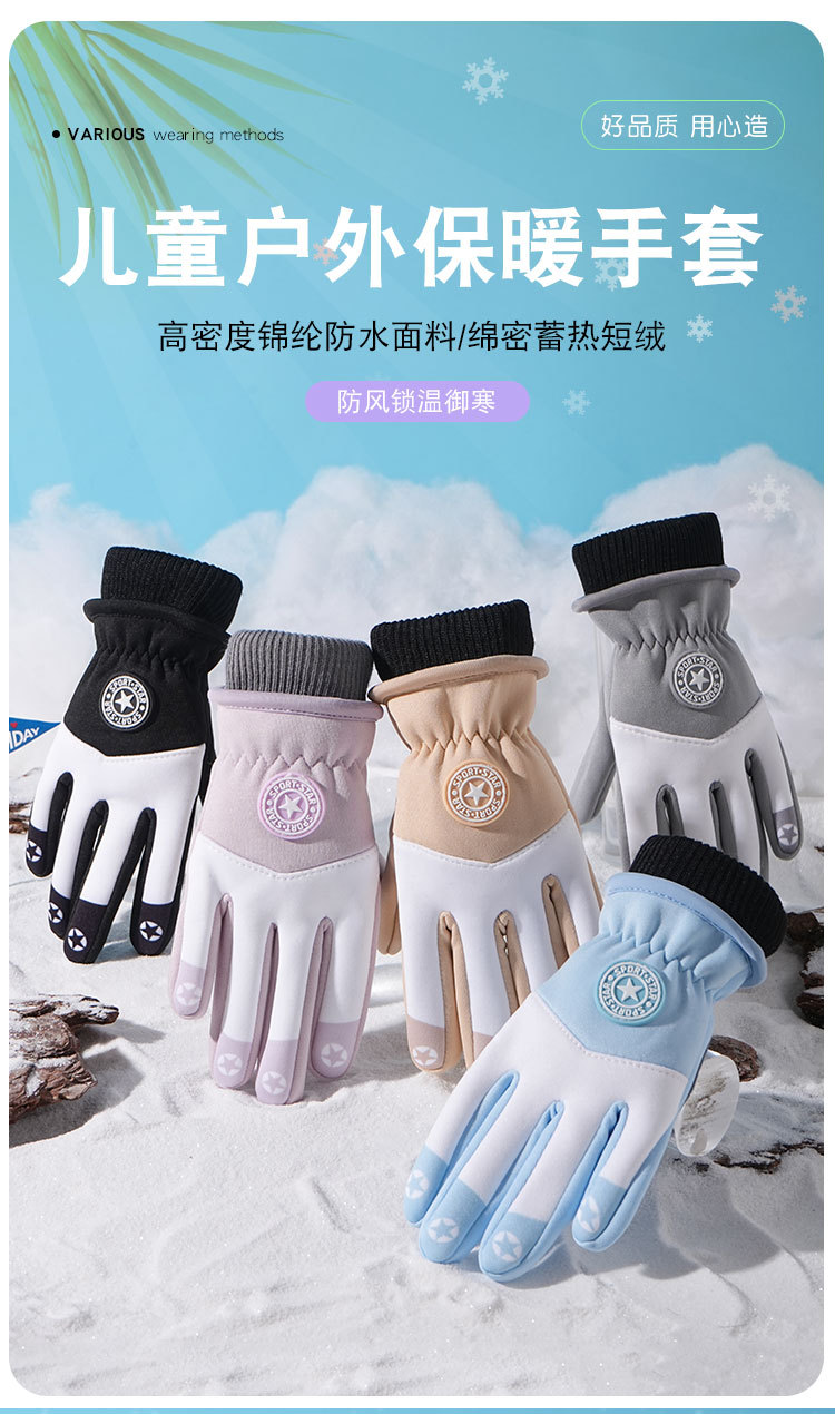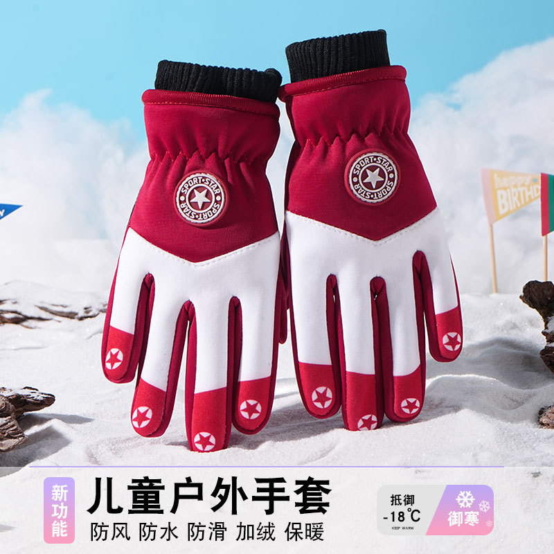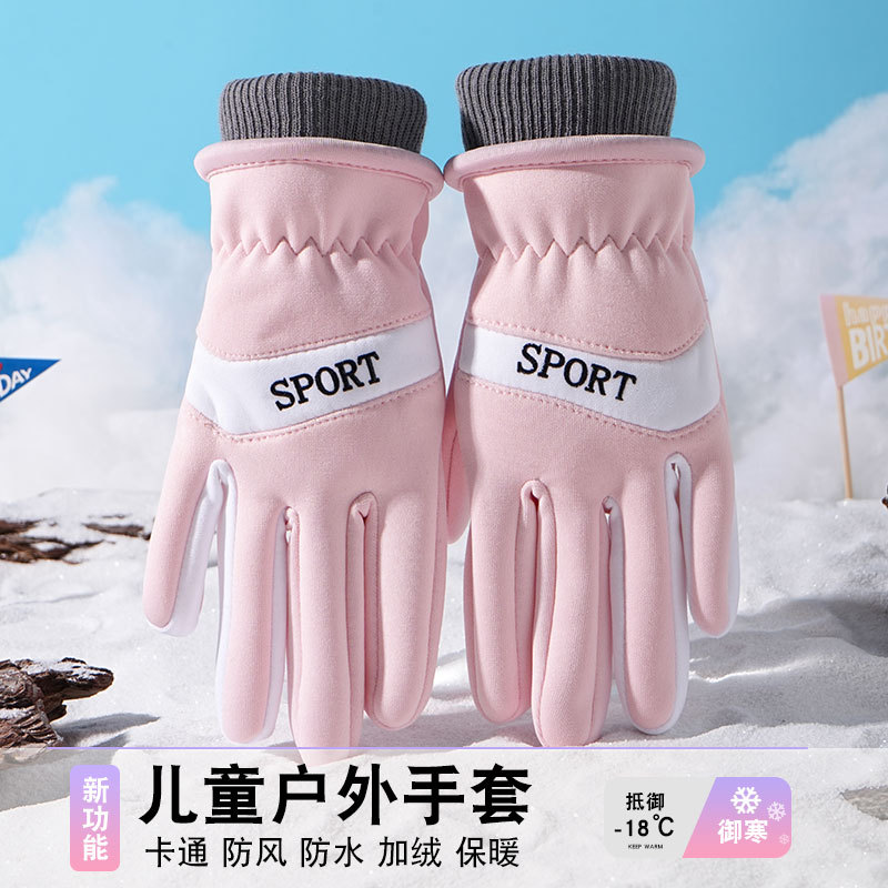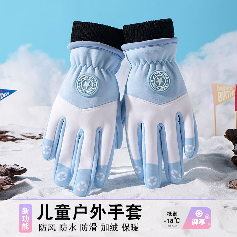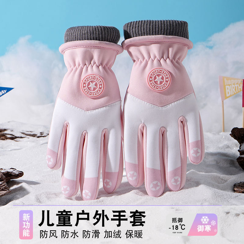 어린이 따뜻한 장갑 방풍 기모 미끄럼 방지 야외 놀이 눈 발수성 승마 미끄럼 방지 7-14 가을과 겨울