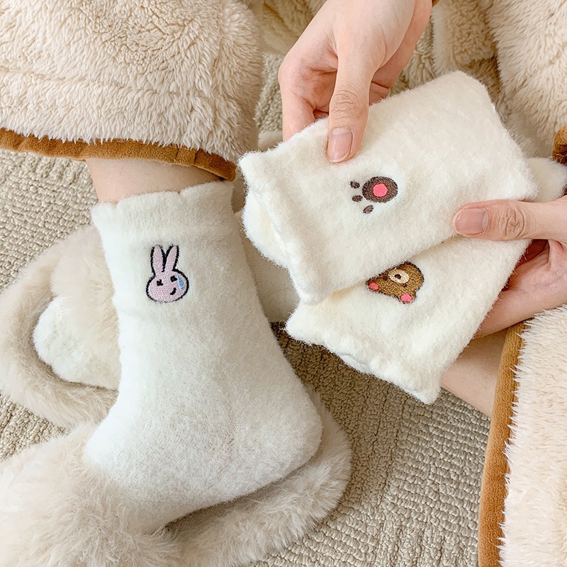만화 귀여운 강아지 호주 벨벳 양말 가을과 겨울 여성 튜브 양말 기모 두꺼운 따뜻한 흰색 AB 왼쪽 및 오른쪽 발 여성 양말스토어 가기