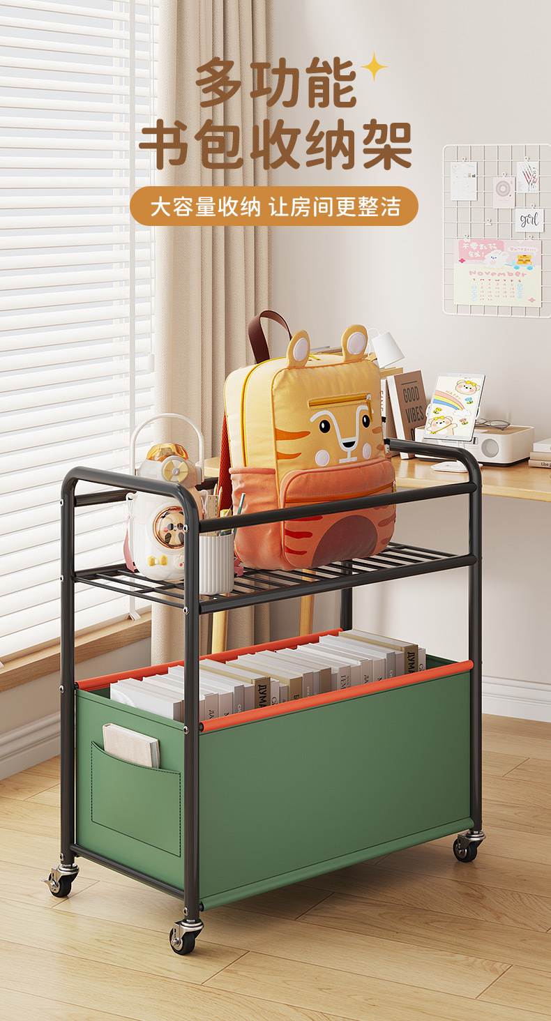 학생 책상 책장 Schoolbag 보관 랙 트롤리 바닥 다층 보관 상자 모바일 책장 책상 아래