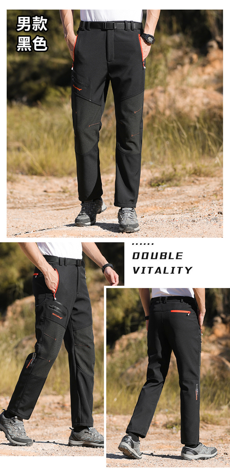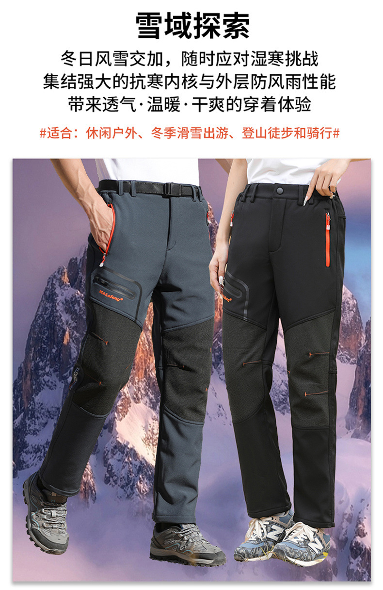 남성과 여성을위한 국경 간 폭발 소프트 쉘 폭행 바지 가을과 겨울 두꺼운 따뜻한 야외 착용 방지 스키 등반 바지 방수 도매스토어 가기