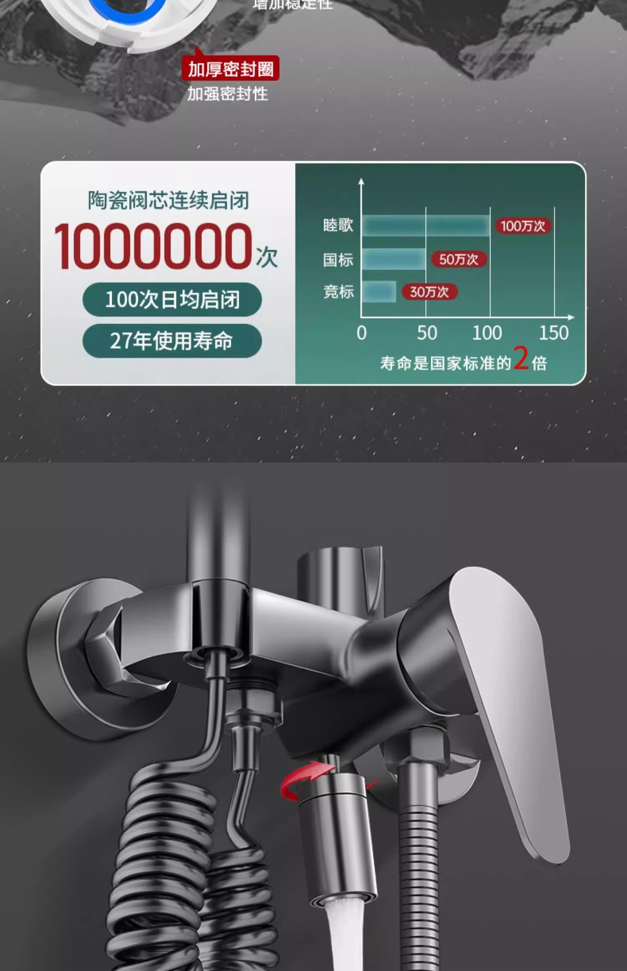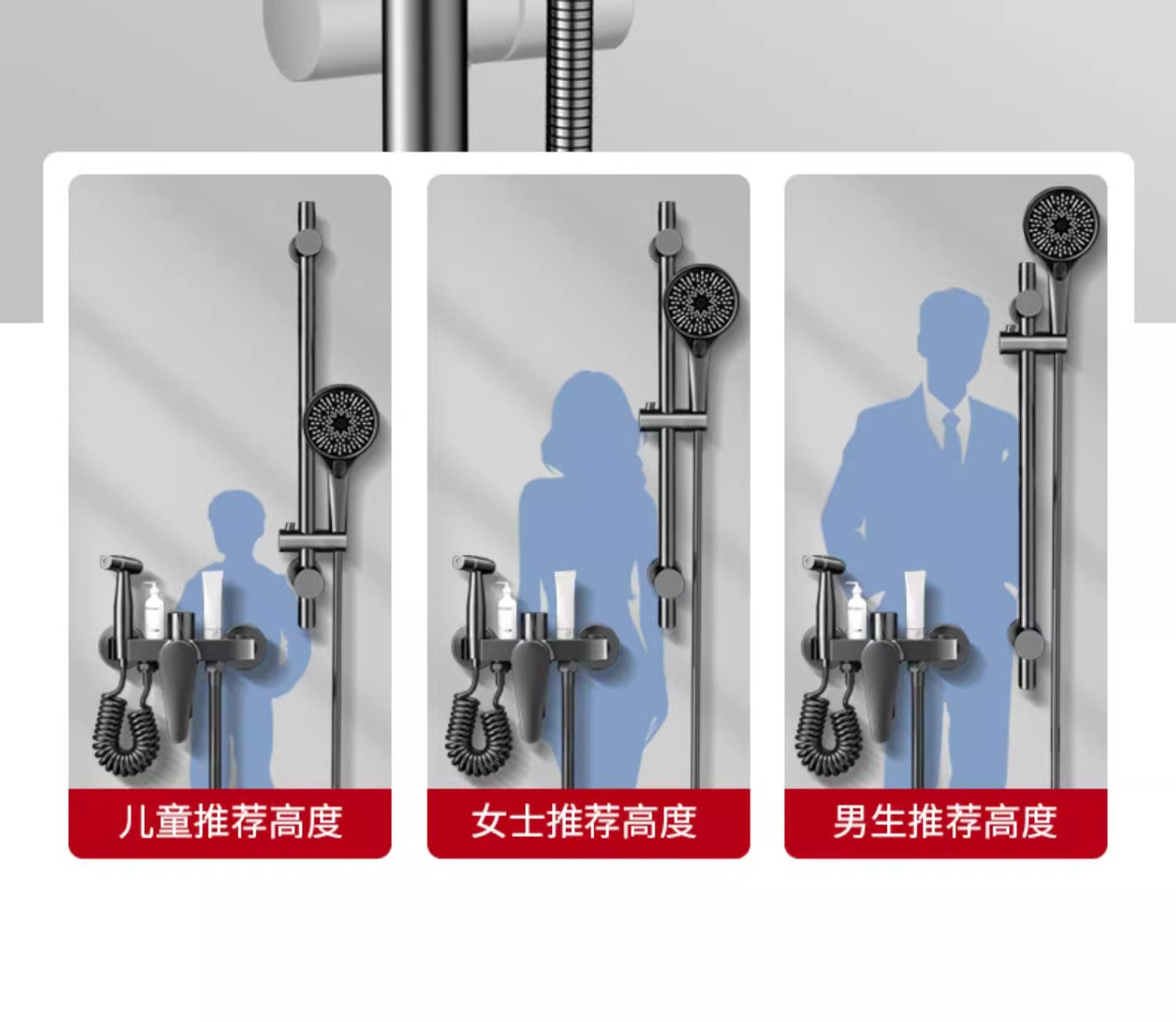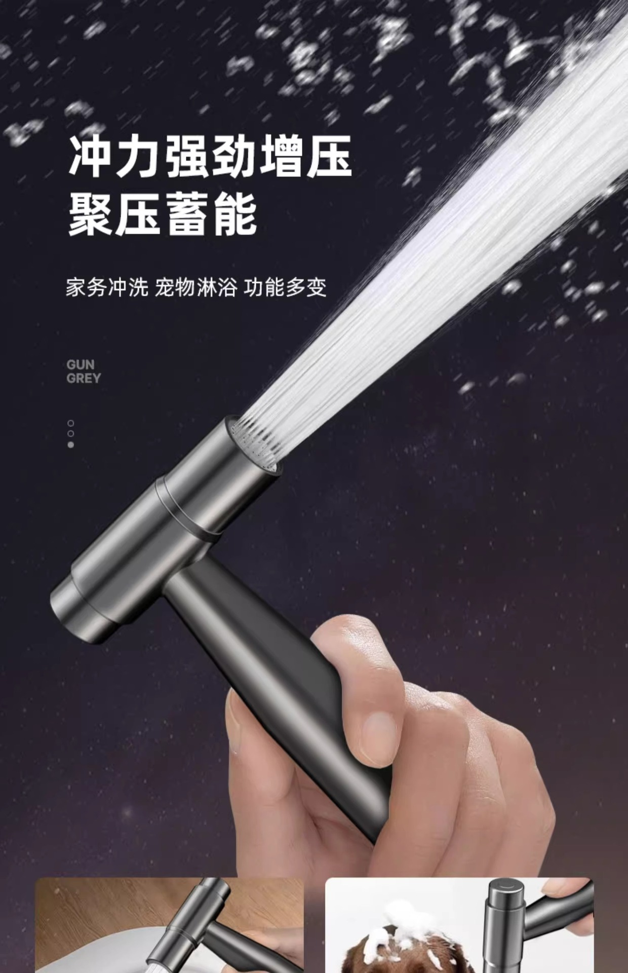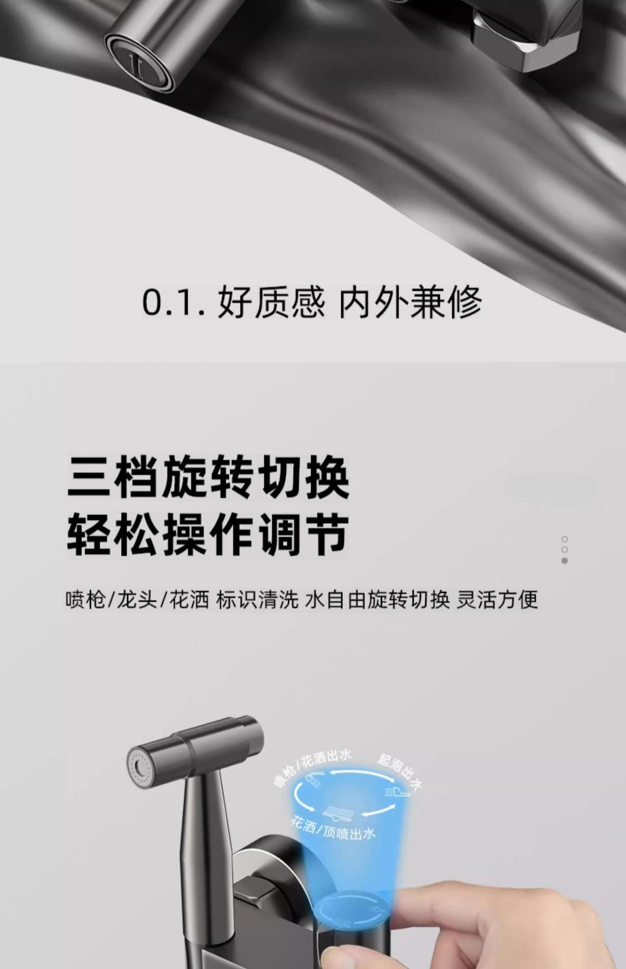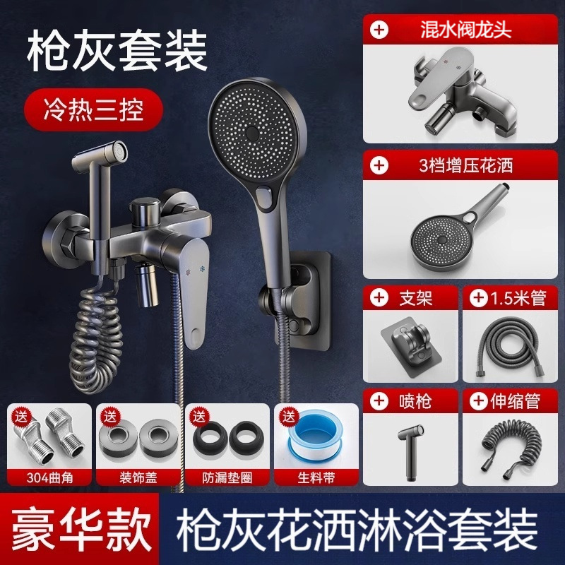 • 샤워세트 [둥근 리프팅 3조절 물 배출구] 건그레이