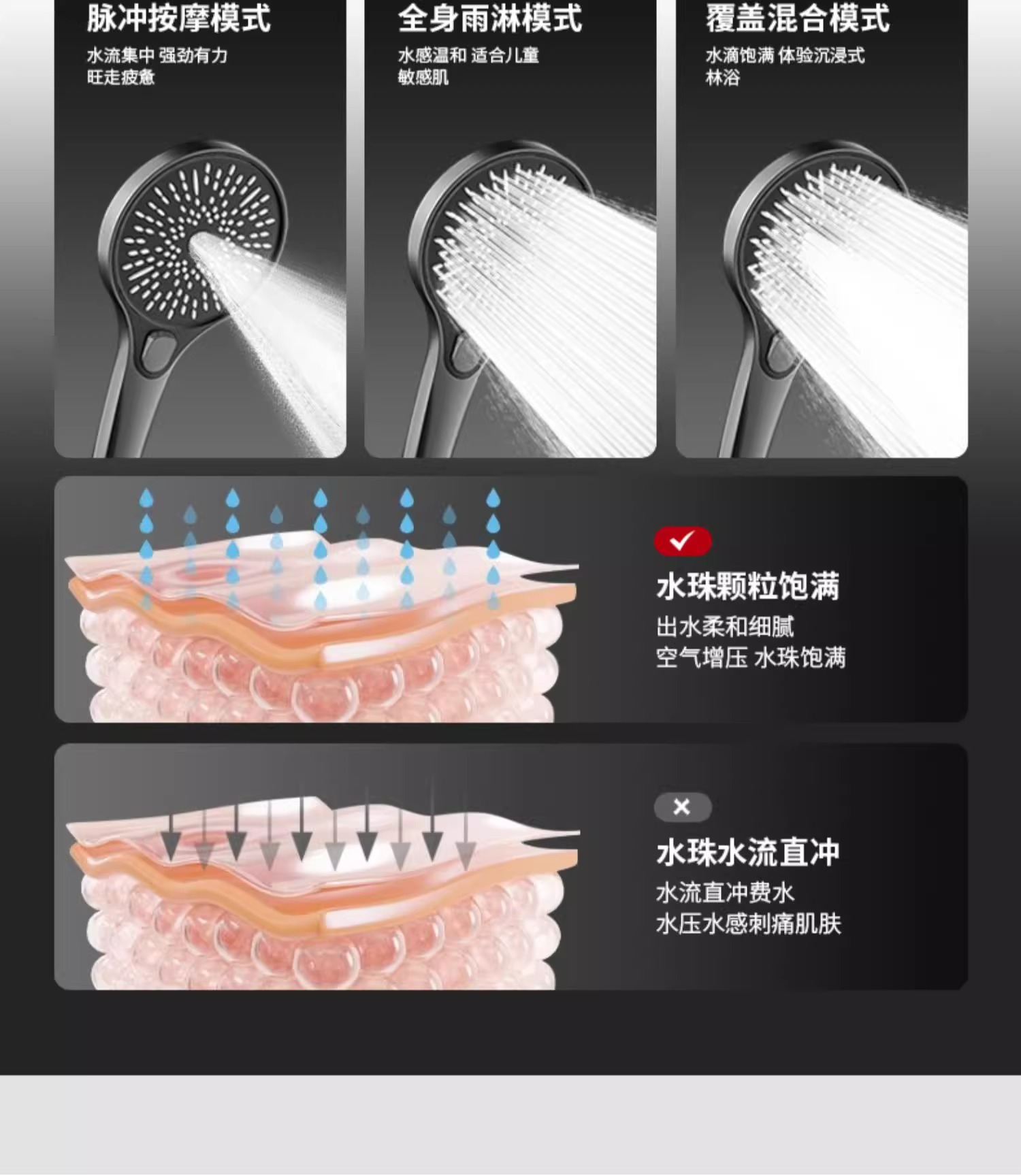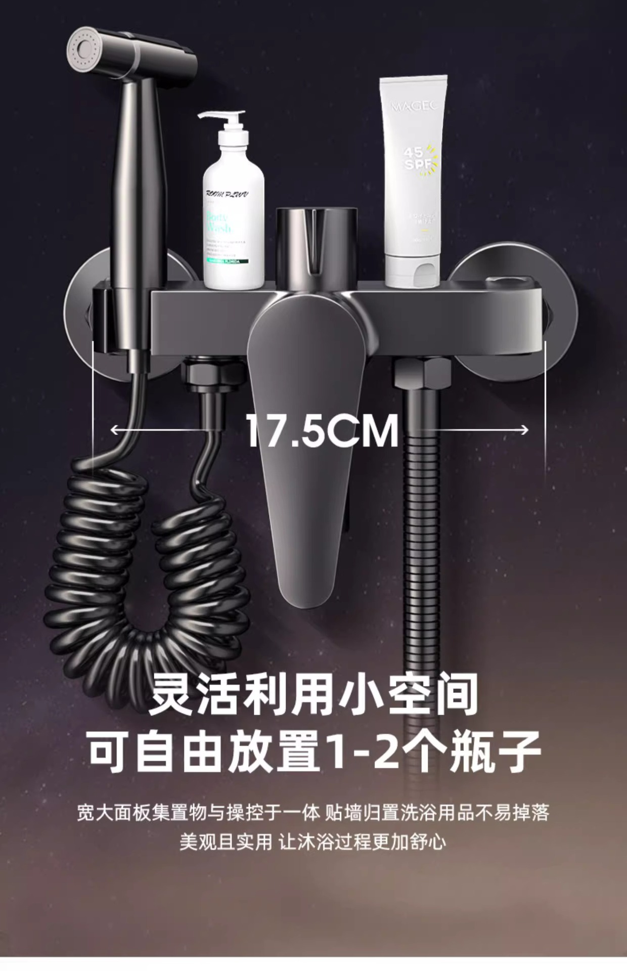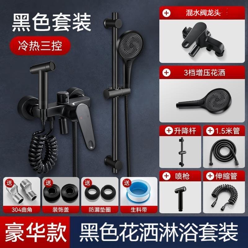 • 샤워세트 [둥근 리프팅 3조절 물 배출구] 블랙