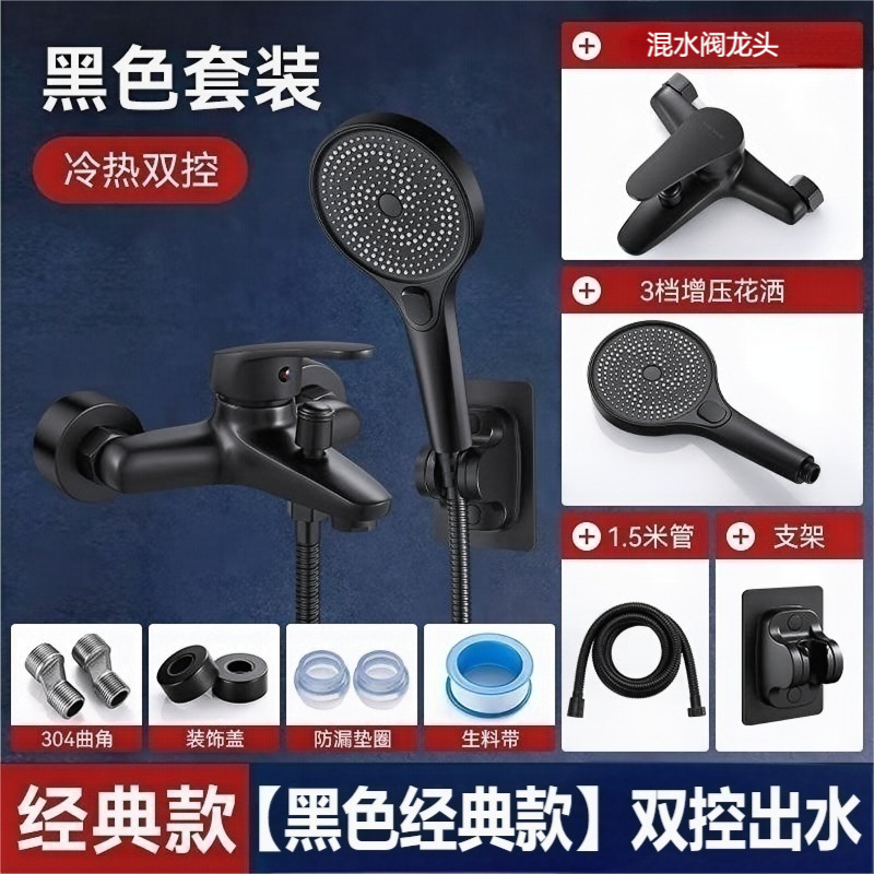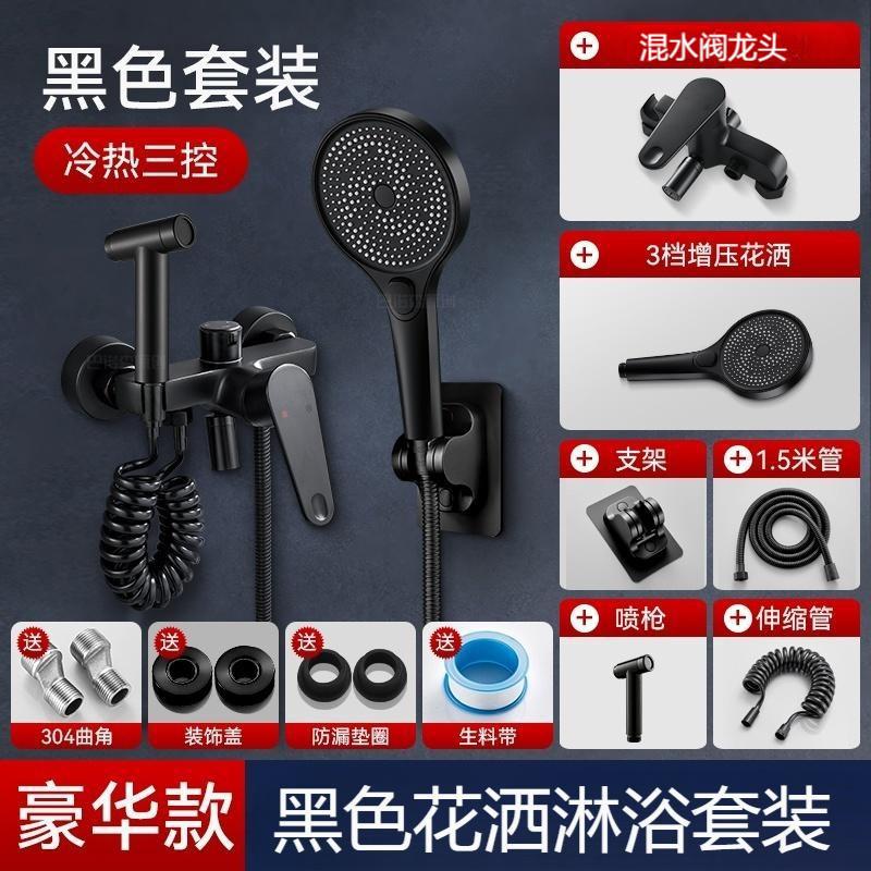 • 샤워세트 [둥근 심플 3조절 물 배출구] 블랙