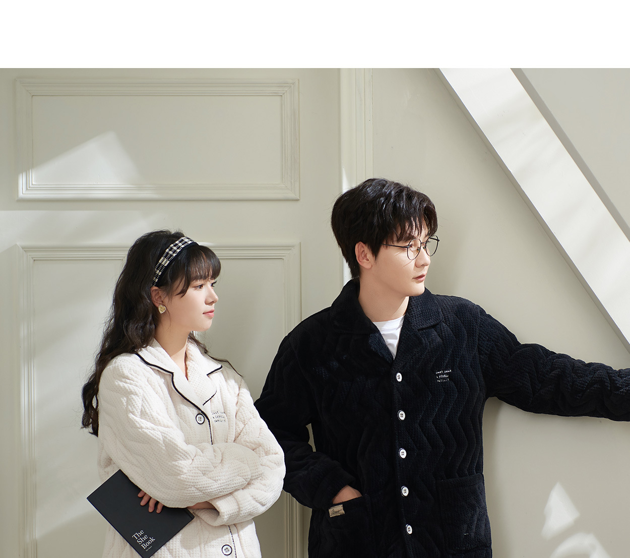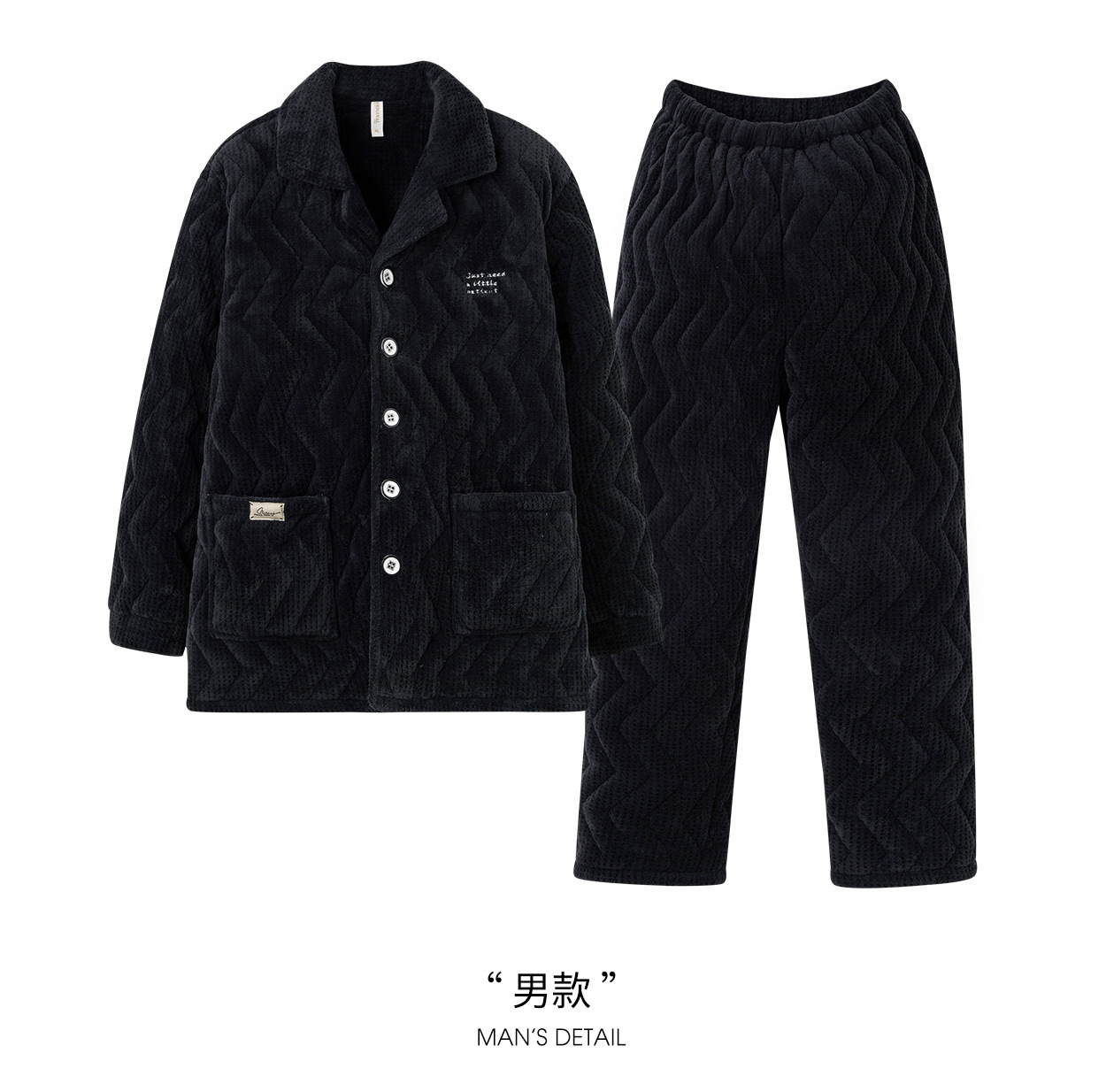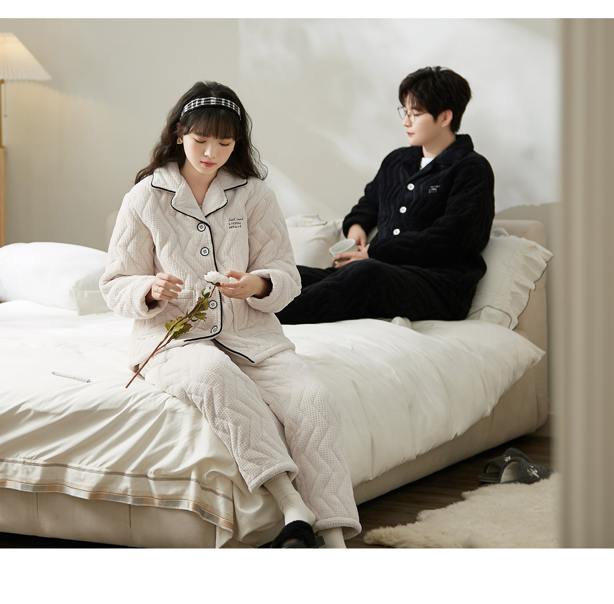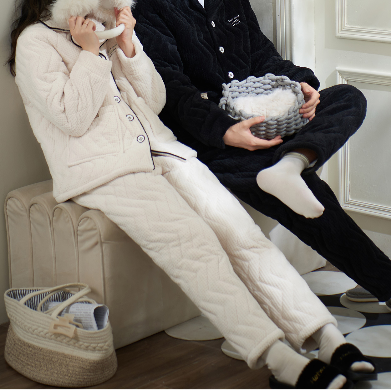 커플 잠옷 여성의 겨울 두꺼운 3 층 퀼트 겨울 따뜻한 외부 착용 남성 홈 옷