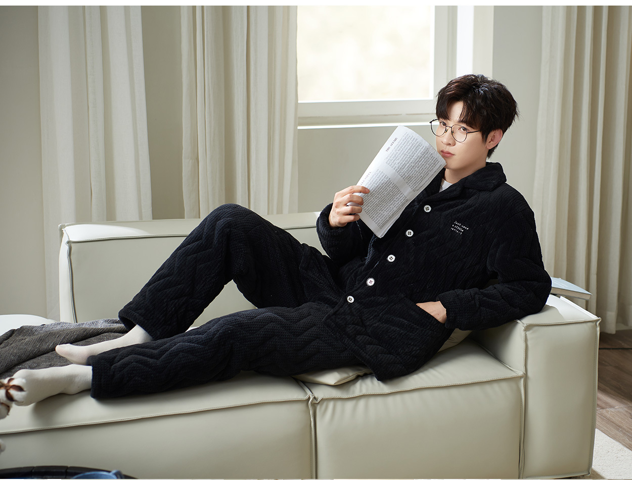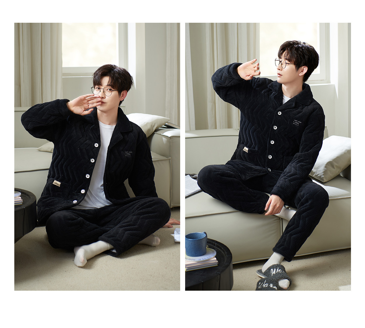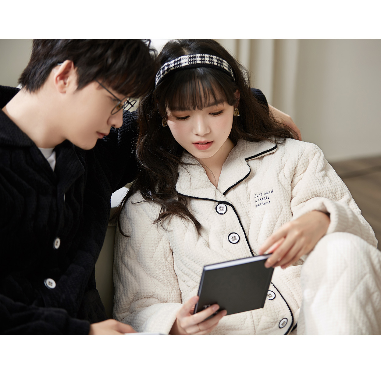 커플 잠옷 여성의 겨울 두꺼운 3 층 퀼트 겨울 따뜻한 외부 착용 남성 홈 옷