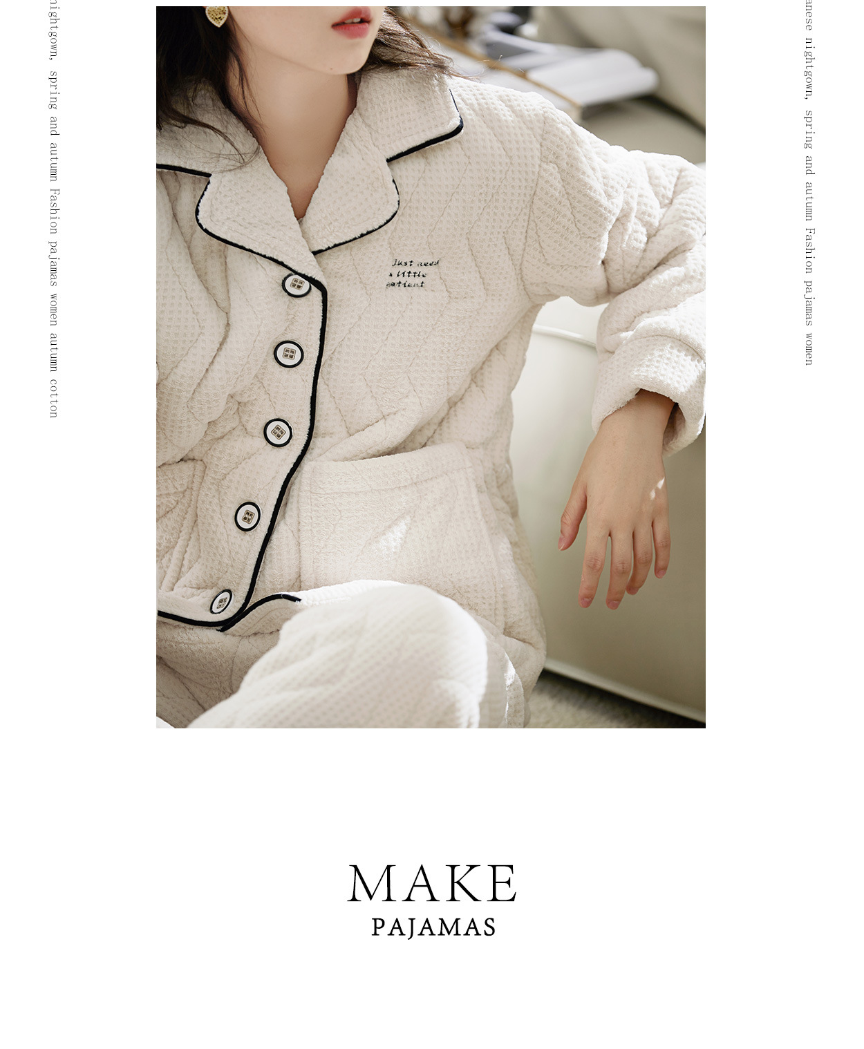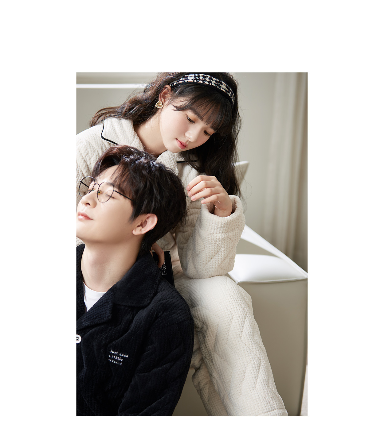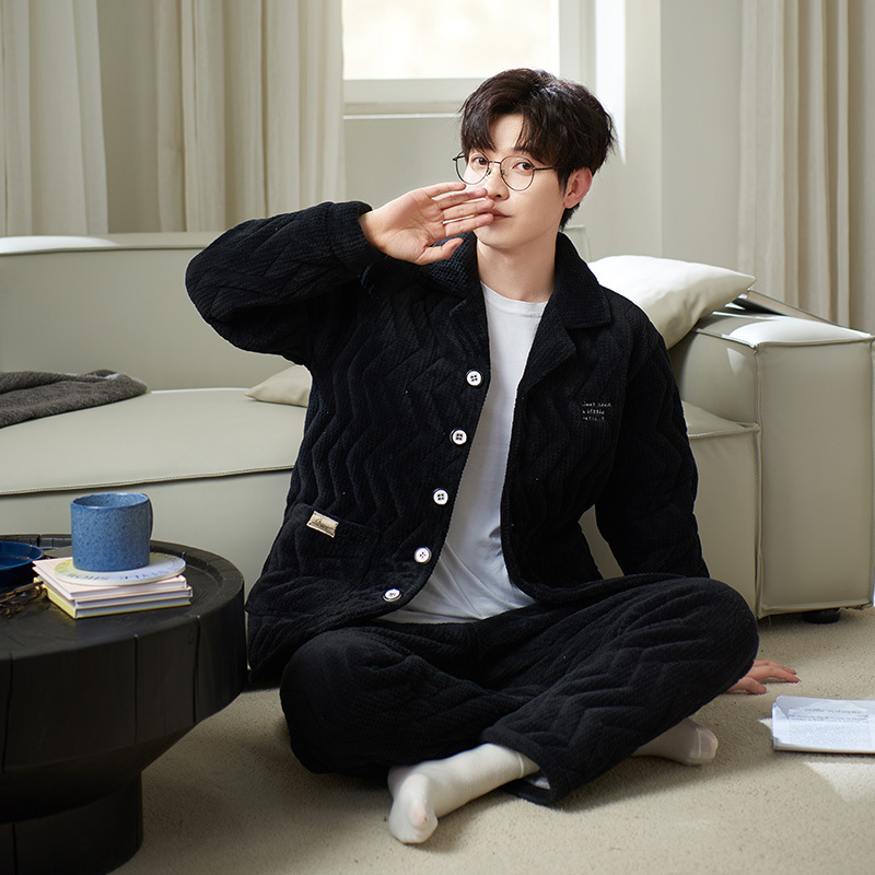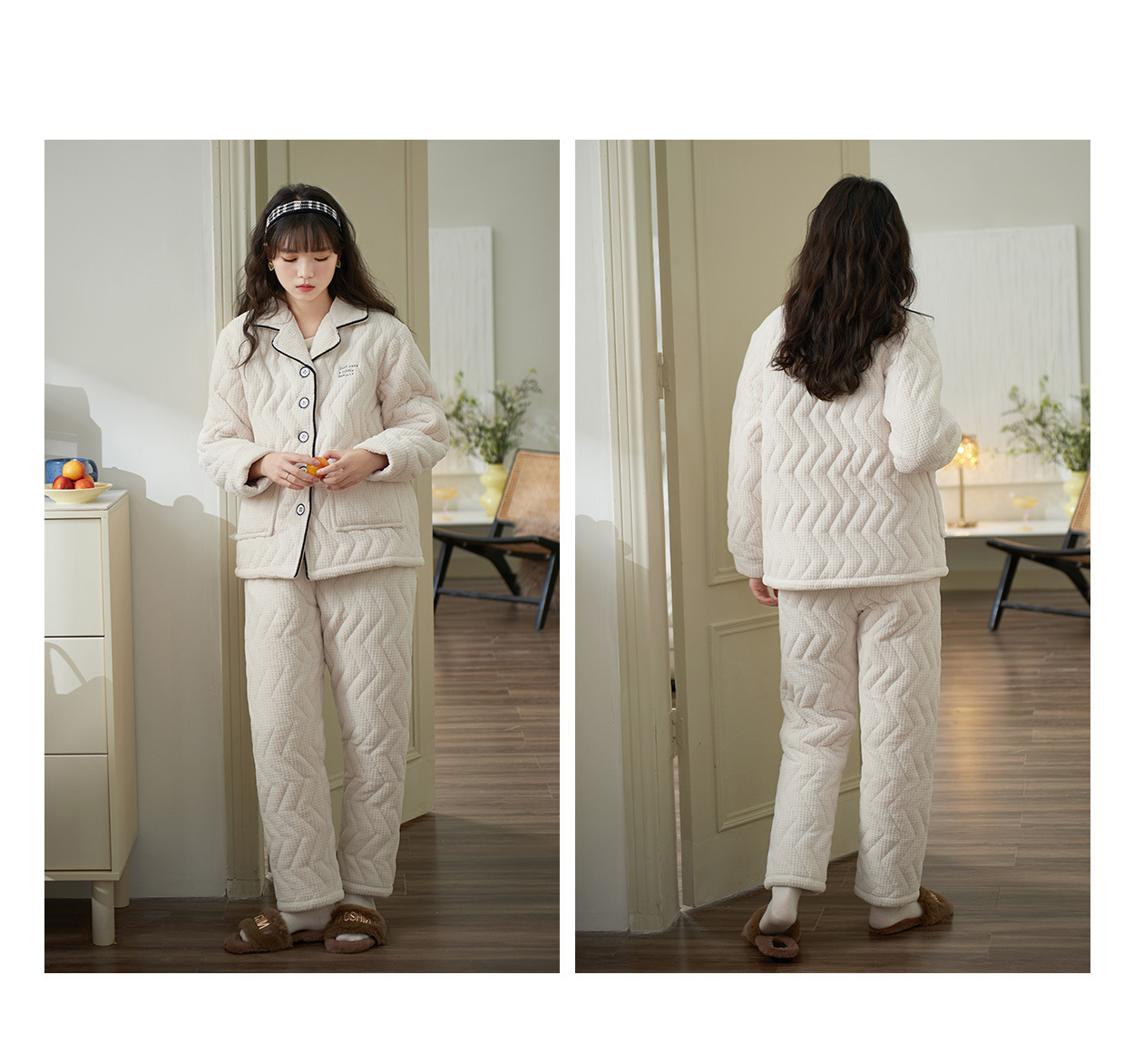 커플 잠옷 여성의 겨울 두꺼운 3 층 퀼트 겨울 따뜻한 외부 착용 남성 홈 옷