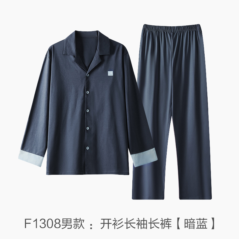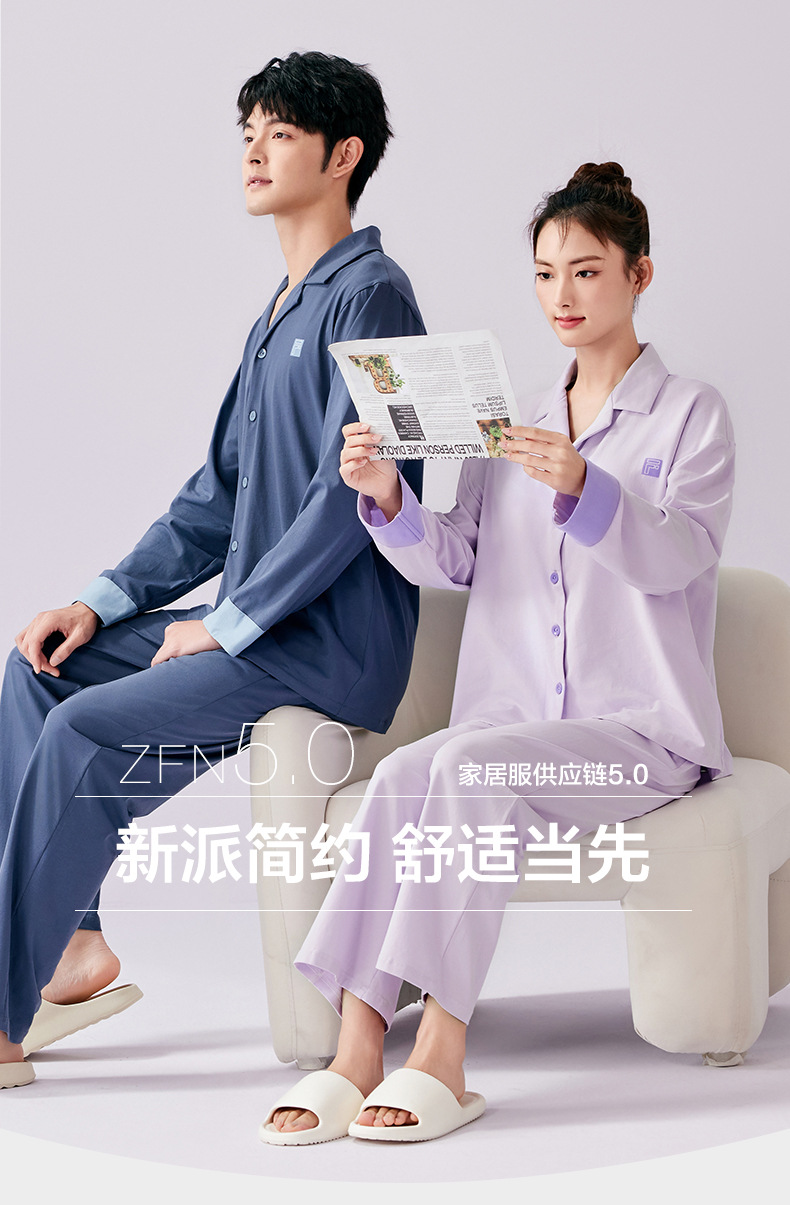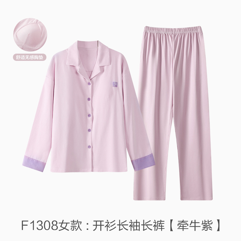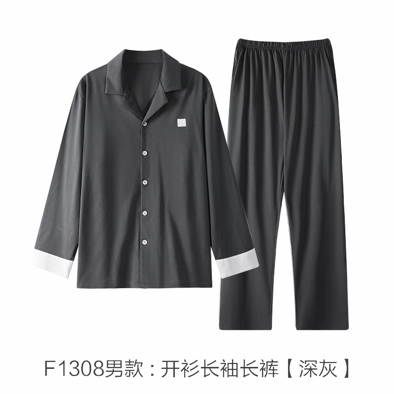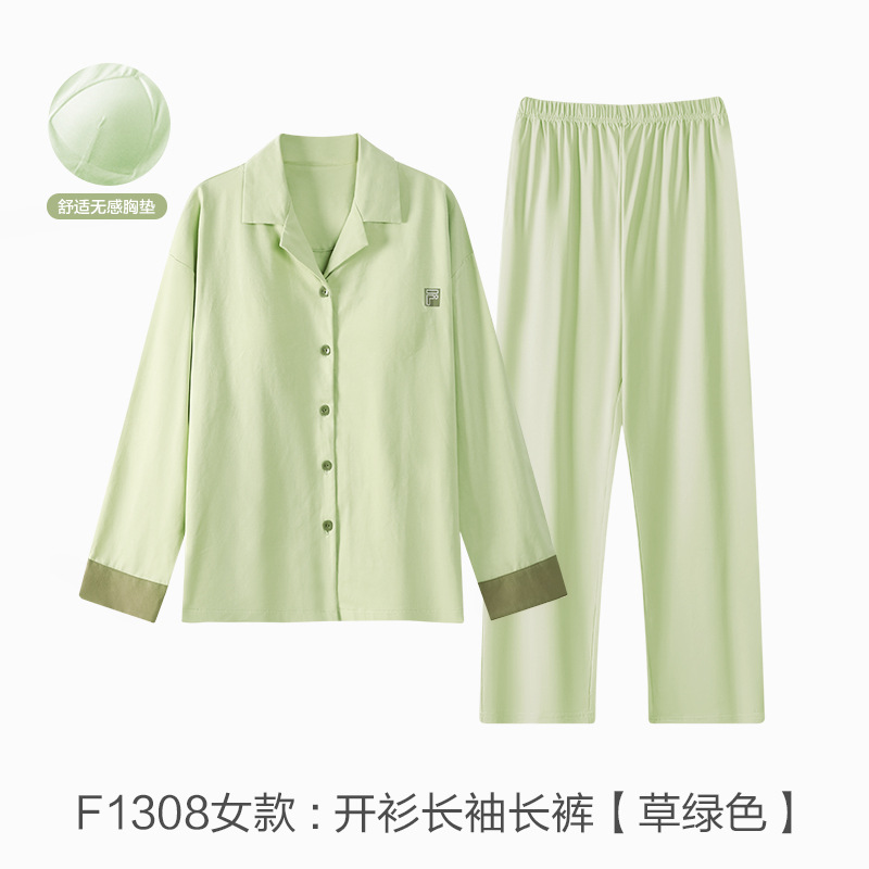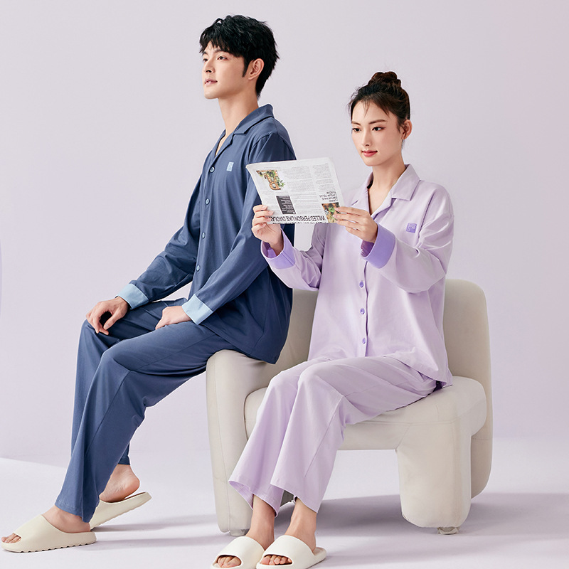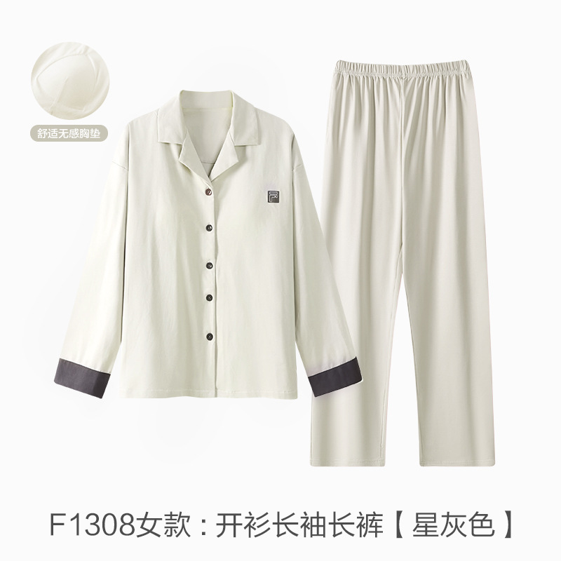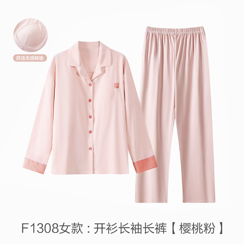 커플 잠옷 봄과 가을 착용이없는 브라 여성용 브래지어 가슴 패드 홈 의류 남성용 간단한 캐주얼 겉옷 세트