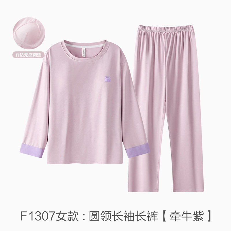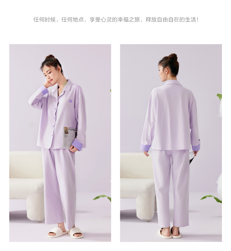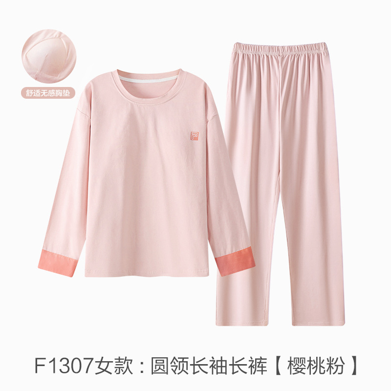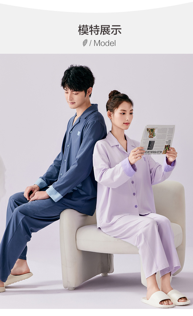 커플 잠옷 봄과 가을 착용이없는 브라 여성용 브래지어 가슴 패드 홈 의류 남성용 간단한 캐주얼 겉옷 세트스토어 가기