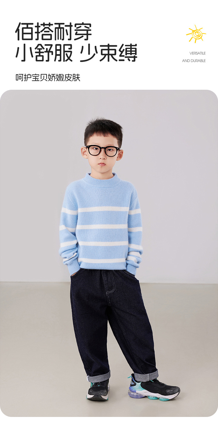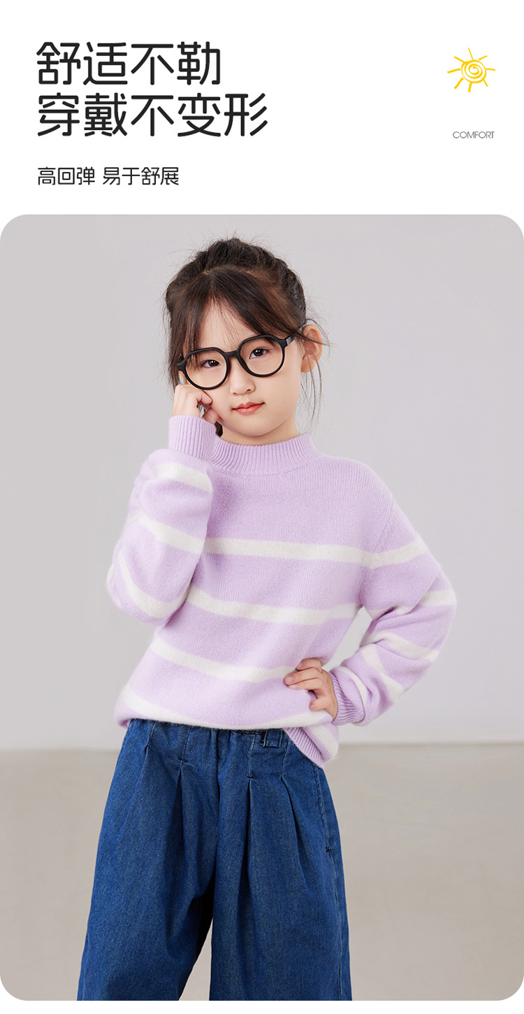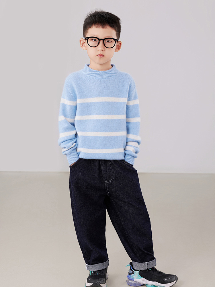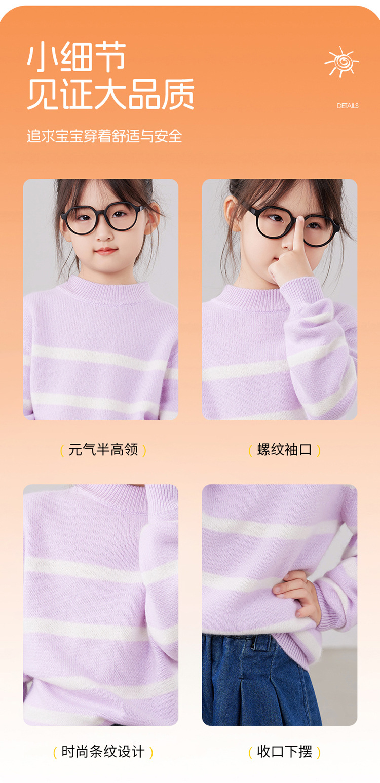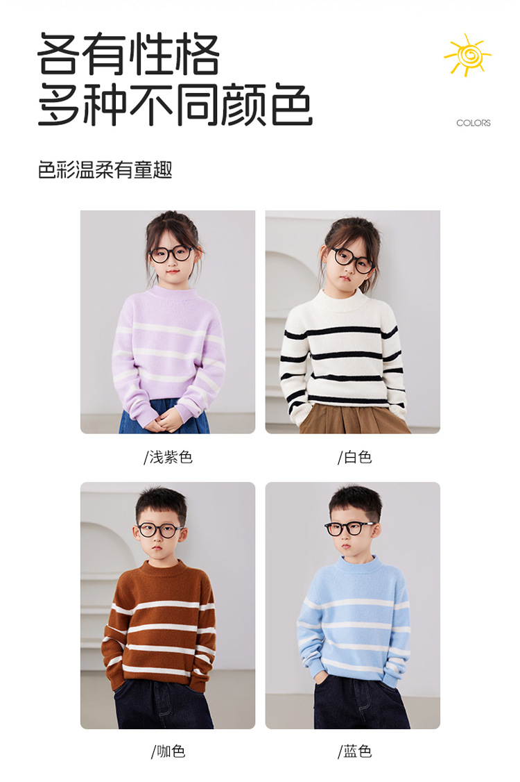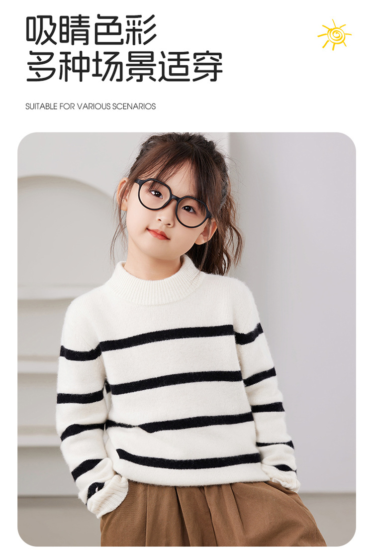 儿童条纹半高领毛衣女童男童中小童秋冬新款半高领韩版保暖针织衫