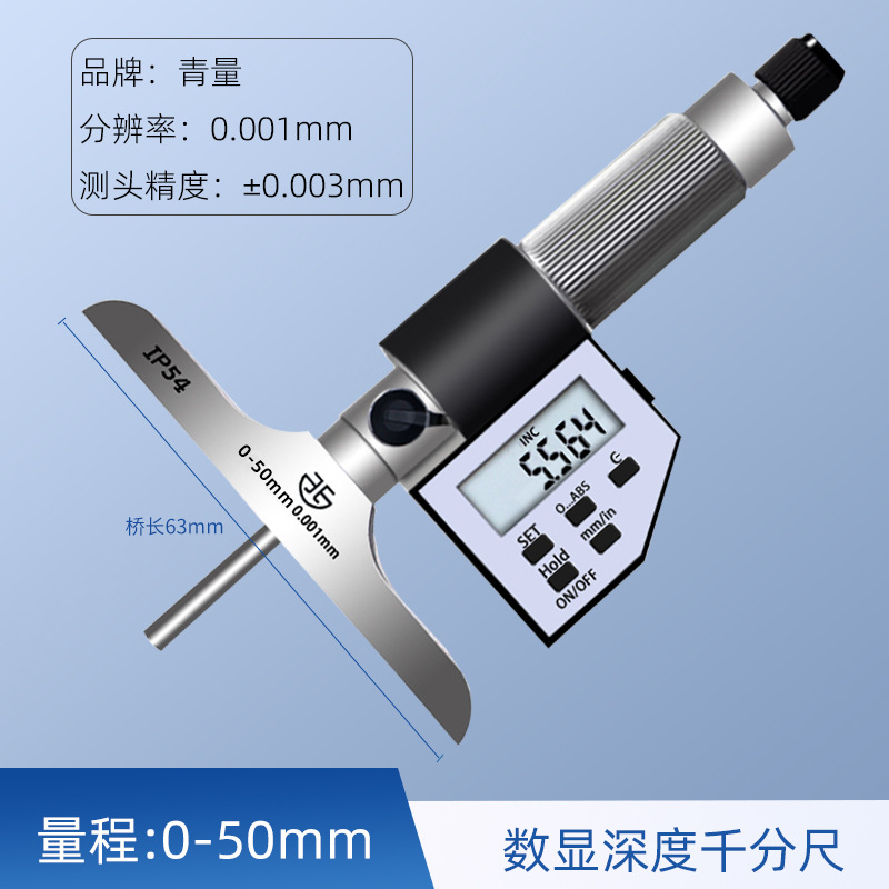 칭하이 녹색 깊이 마이크로 미터 0-25mm 구멍 깊이 측정 전자 디지털 디스플레이 기계 볼 헤드 라운드 헤드 플랫 헤드스토어 가기