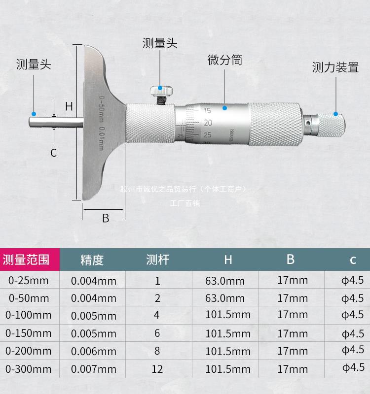 칭하이 녹색 깊이 마이크로 미터 0-25mm 구멍 깊이 측정 전자 디지털 디스플레이 기계 볼 헤드 라운드 헤드 플랫 헤드