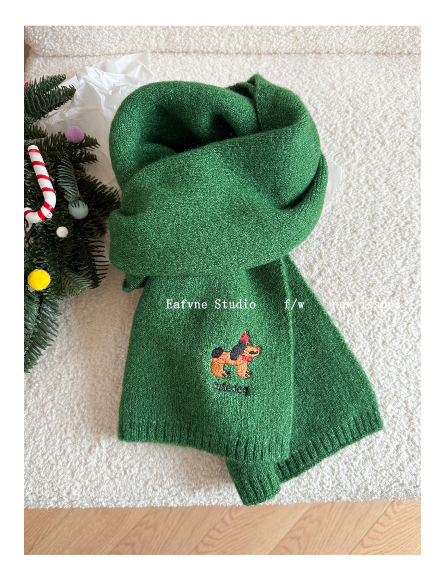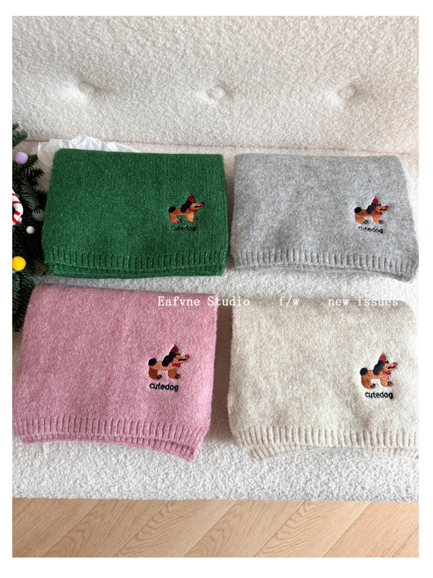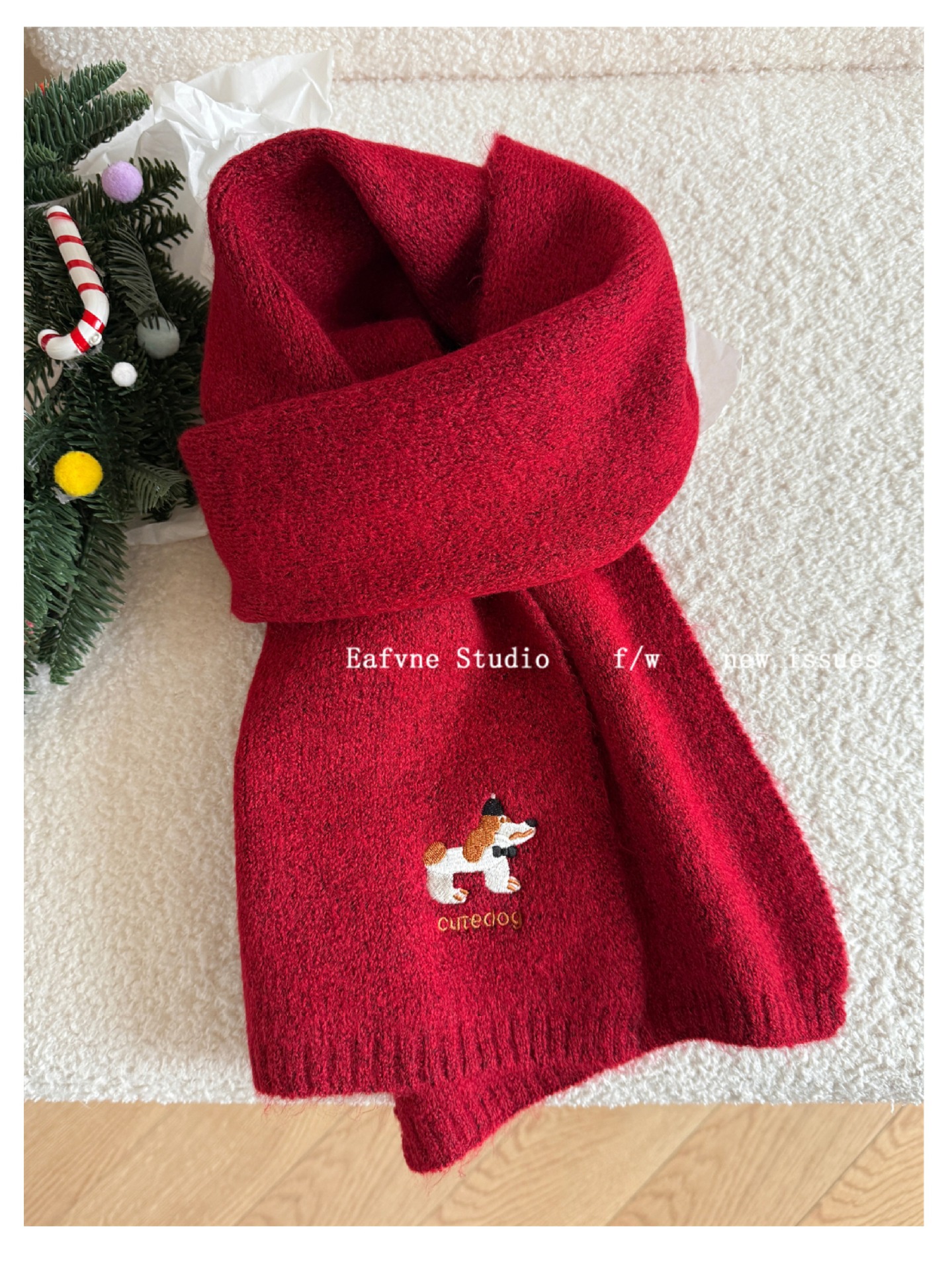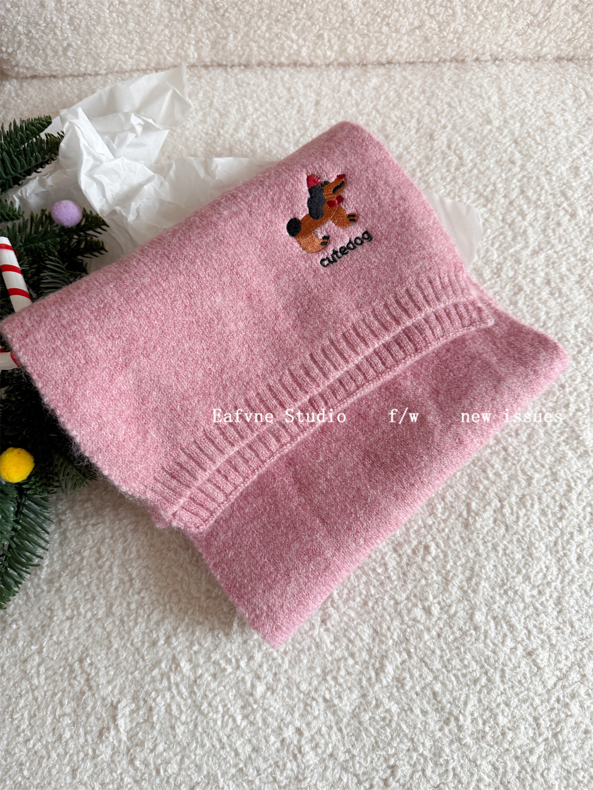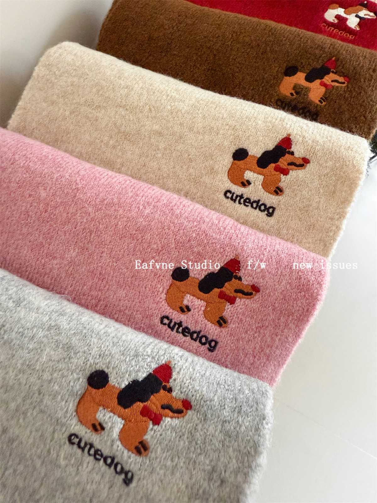 일본 귀여운 강아지 자수 니트 스카프 가을과 겨울 따뜻한 감기 방지 패션 올 매치 하이 엔드 스카프 학생스토어 가기