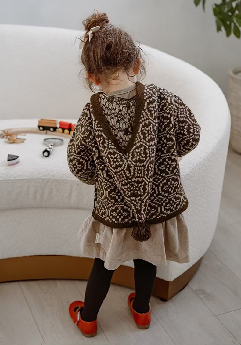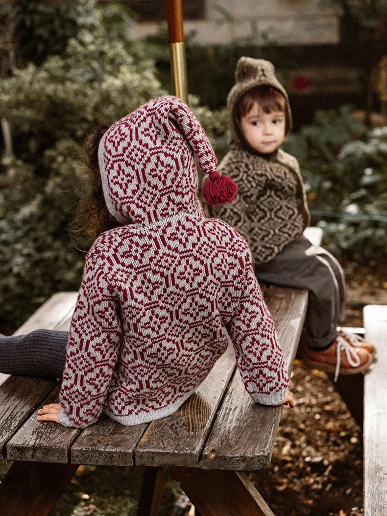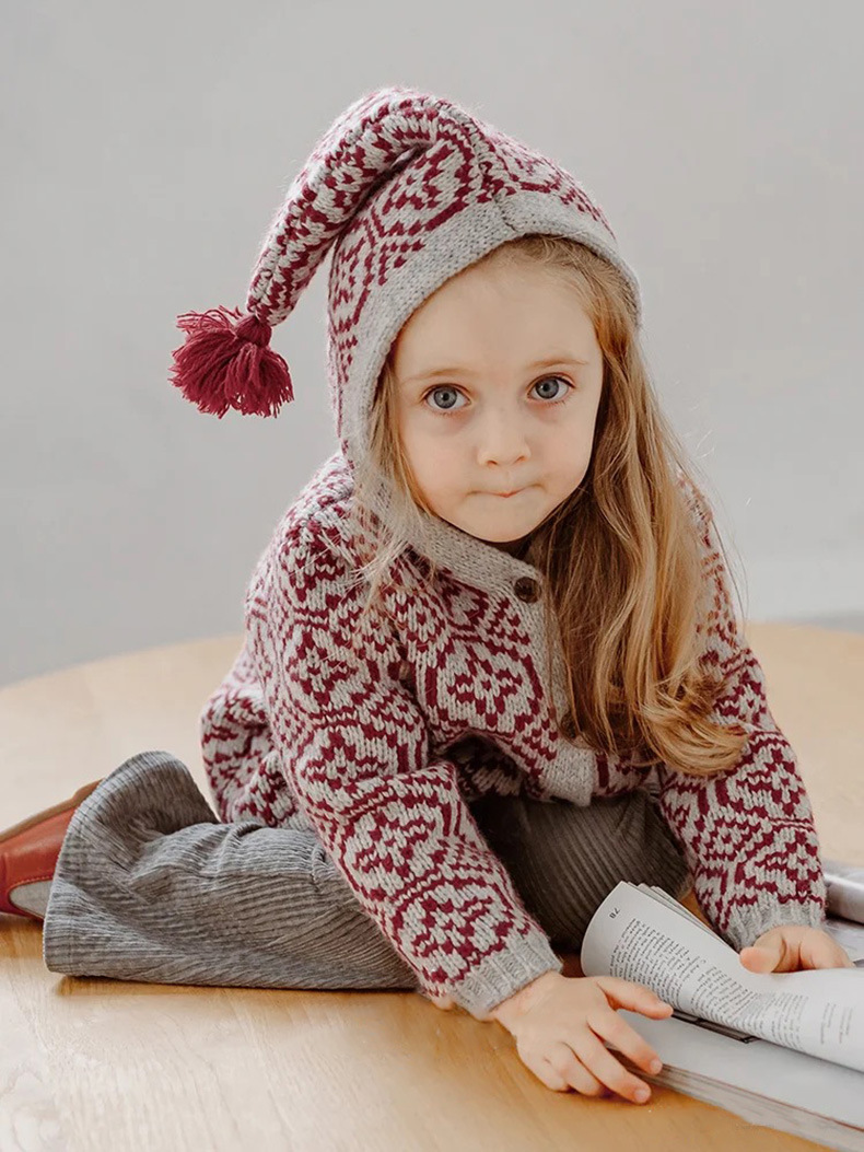 모든 울 크리스마스 엘프 모자 카디건 어린이 가을과 겨울 빈티지 후드 스웨터 소년과 소녀 아기 노르딕 스타일 니트웨어