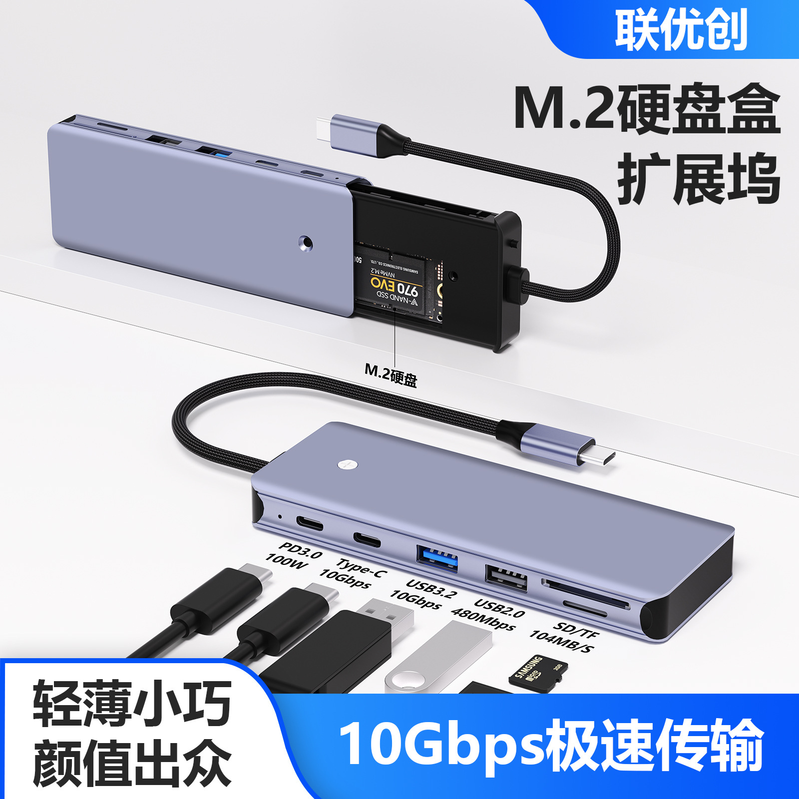 국경 M.2 하드 디스크 박스 도킹 스테이션 usb 허브 usb3.0 솔리드 스테이트 하드 디스크 박스 10g 확장 도크
