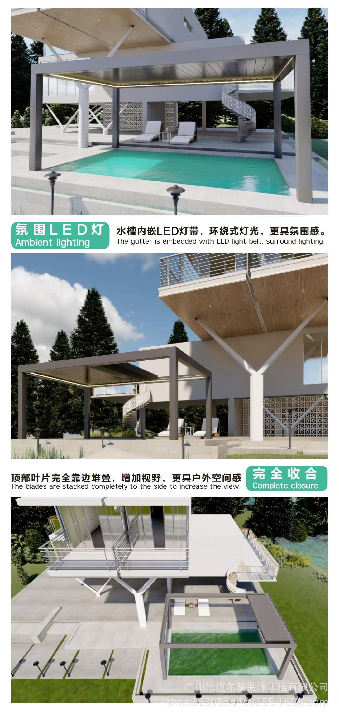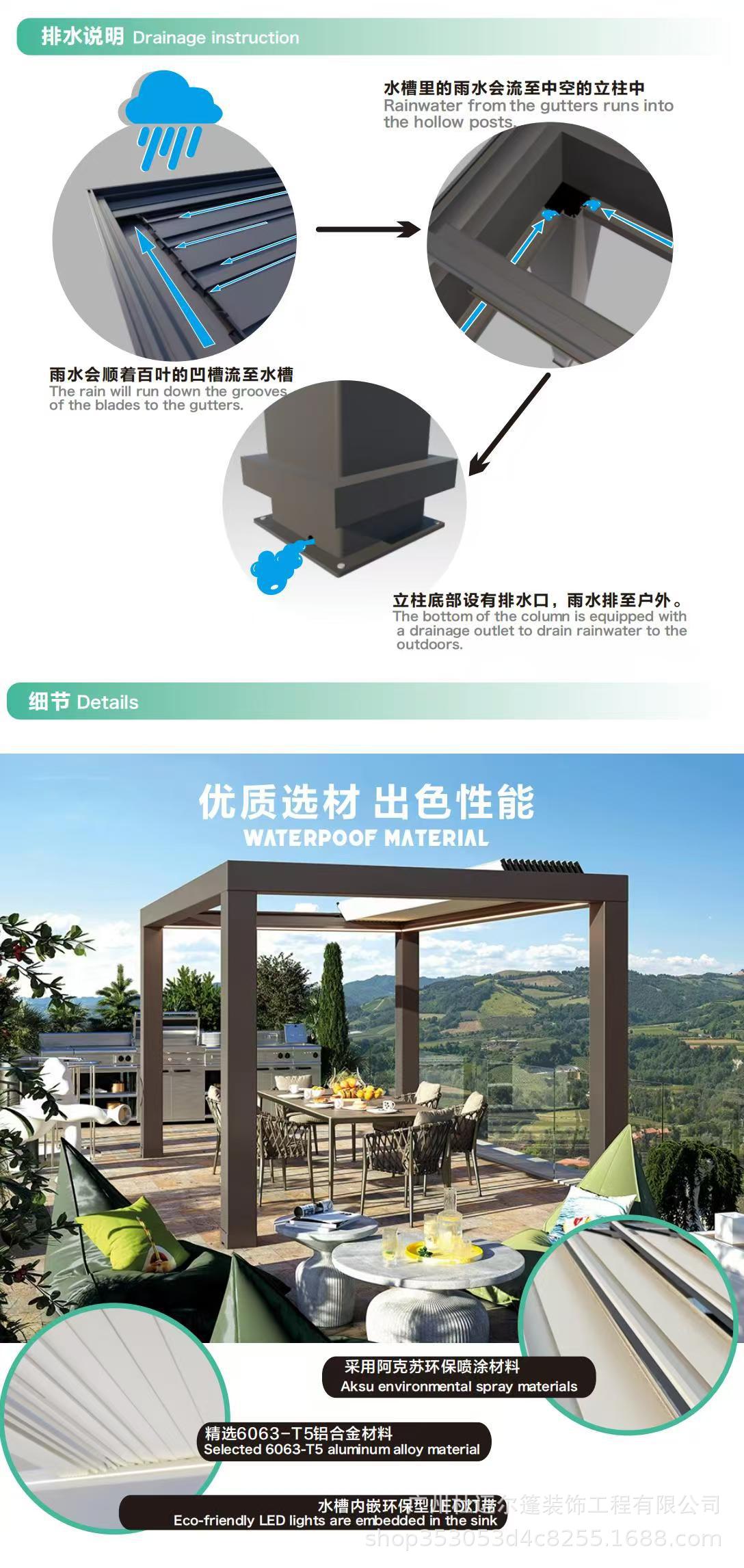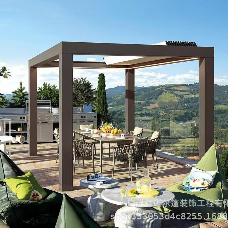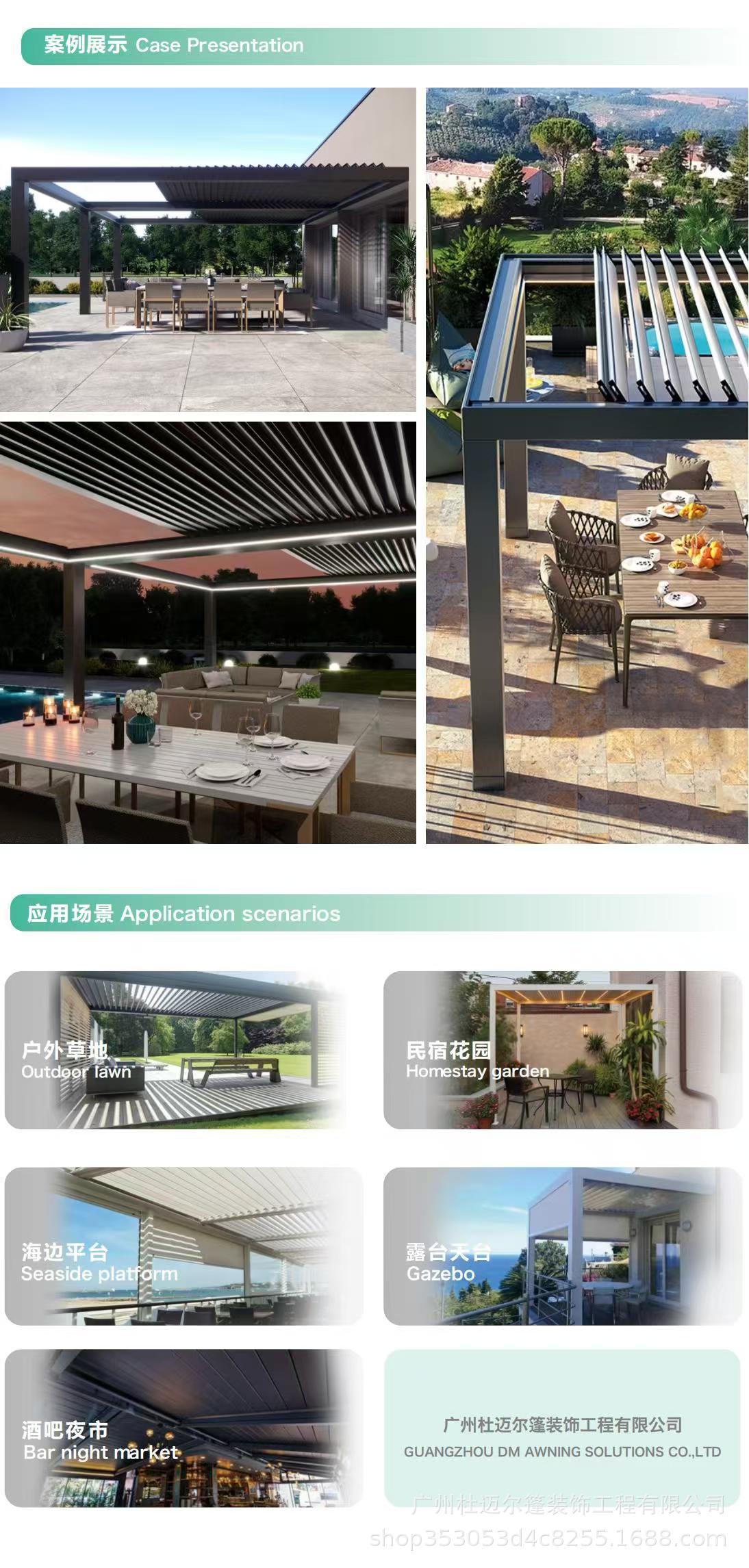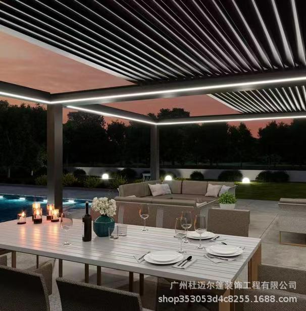 국경 전용 루버 플립 파빌리온 야외 안뜰 빌라 정원 방풍 롤러 셔터 전기 알루미늄 합금 파빌리온