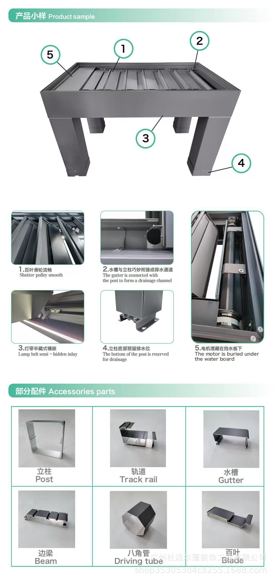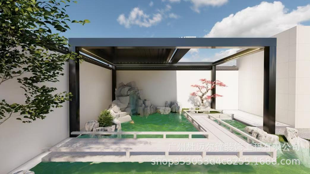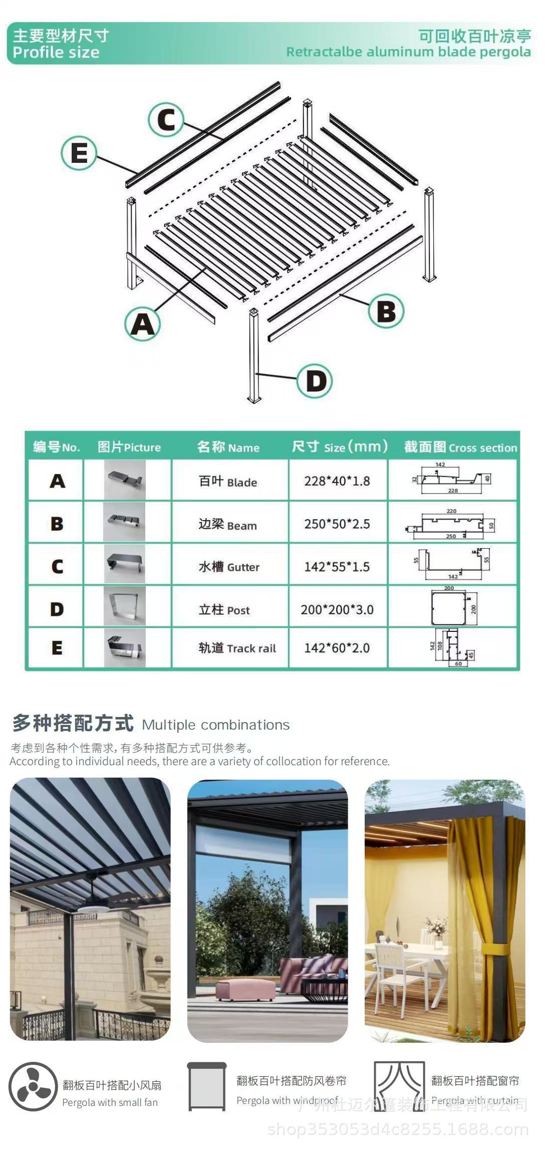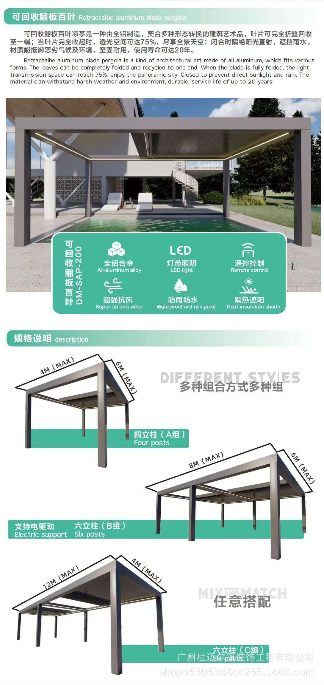 국경 전용 루버 플립 파빌리온 야외 안뜰 빌라 정원 방풍 롤러 셔터 전기 알루미늄 합금 파빌리온