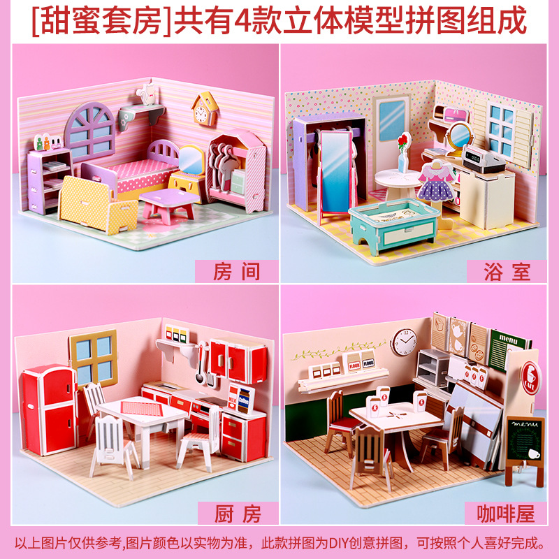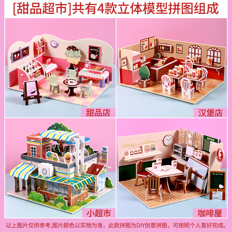 3d 3 차원 퍼즐 어린이 지능-소년 소녀 부모-자식 장난감 DIY 수제 건물 집 종이 모델스토어 가기