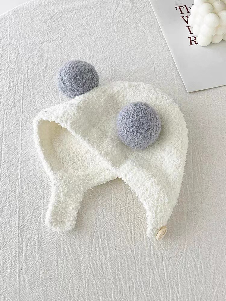 한국 스타일 Ins 가을과 겨울 새로운 아기 귀 보호 캡 따뜻한 냉방 모자 편안한 아기 더블 볼 부드러운 왁스 바오터 캡 트렌디