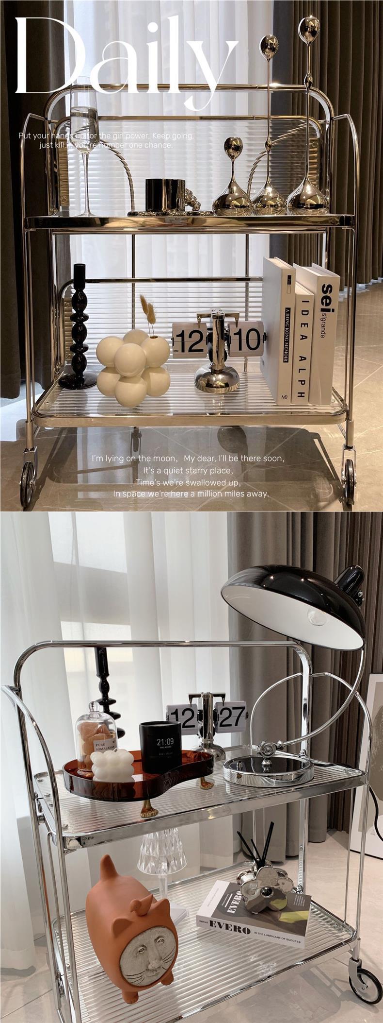 중세 시대 카트 접이식 모바일 유리 카트 와인 다이닝 자동차 인터넷 유명 인사 투명 유리 보관 측면
