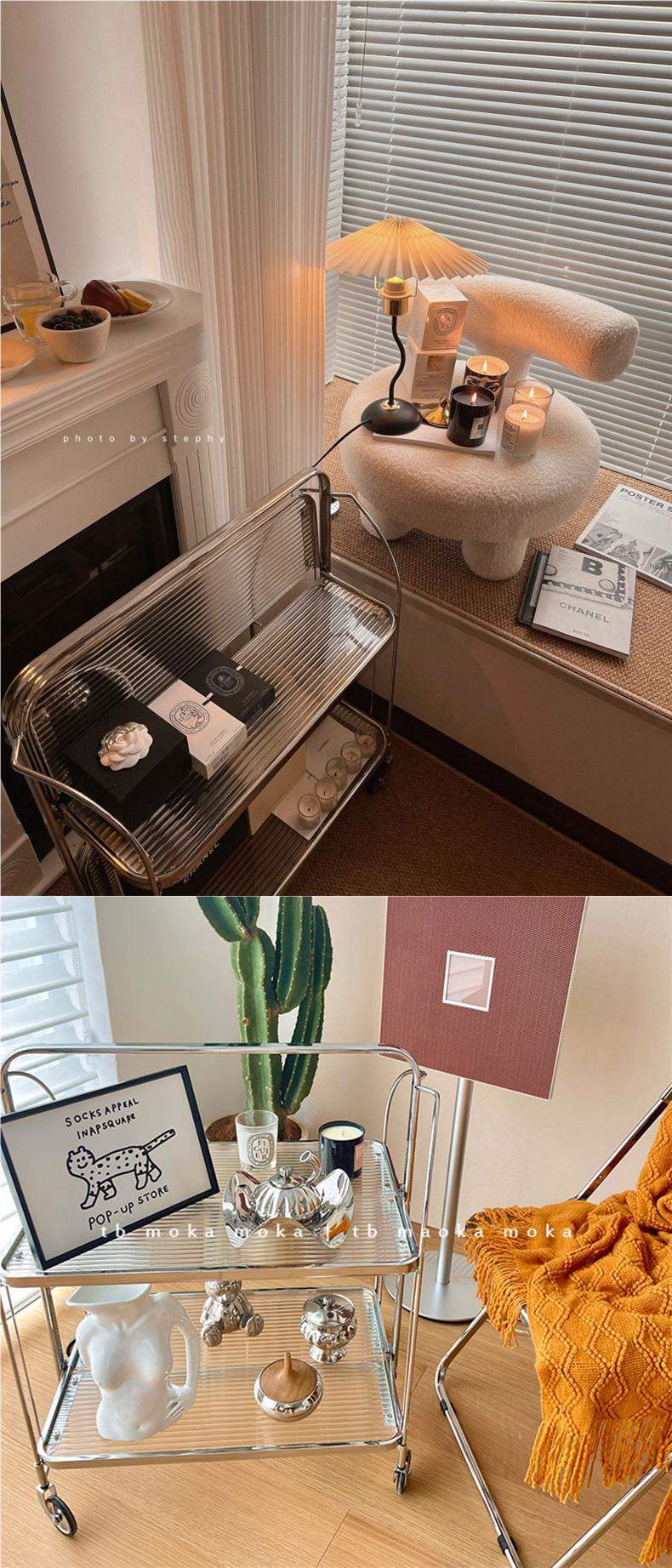 중세 시대 카트 접이식 모바일 유리 카트 와인 다이닝 자동차 인터넷 유명 인사 투명 유리 보관 측면스토어 가기