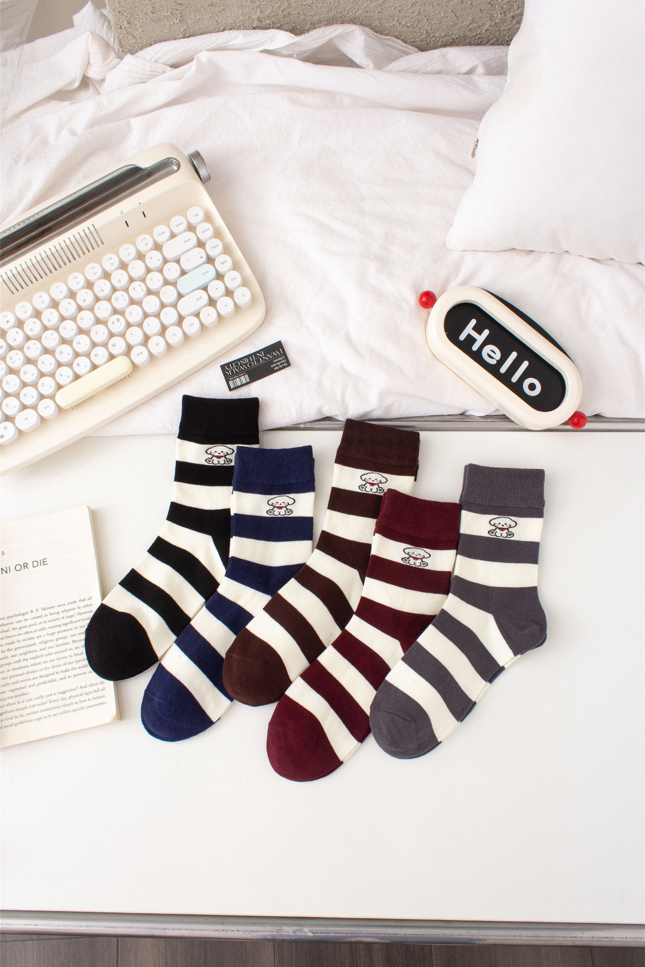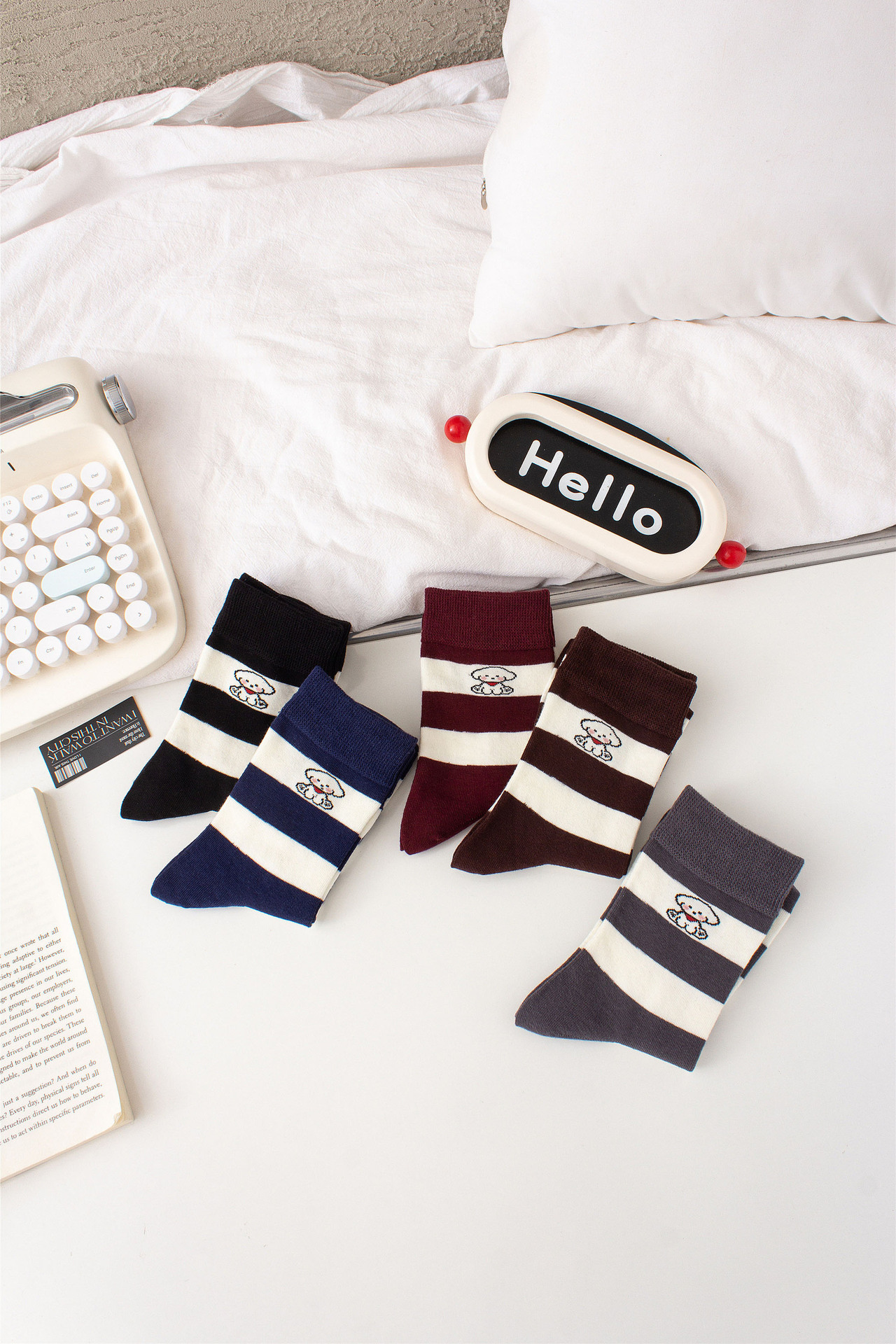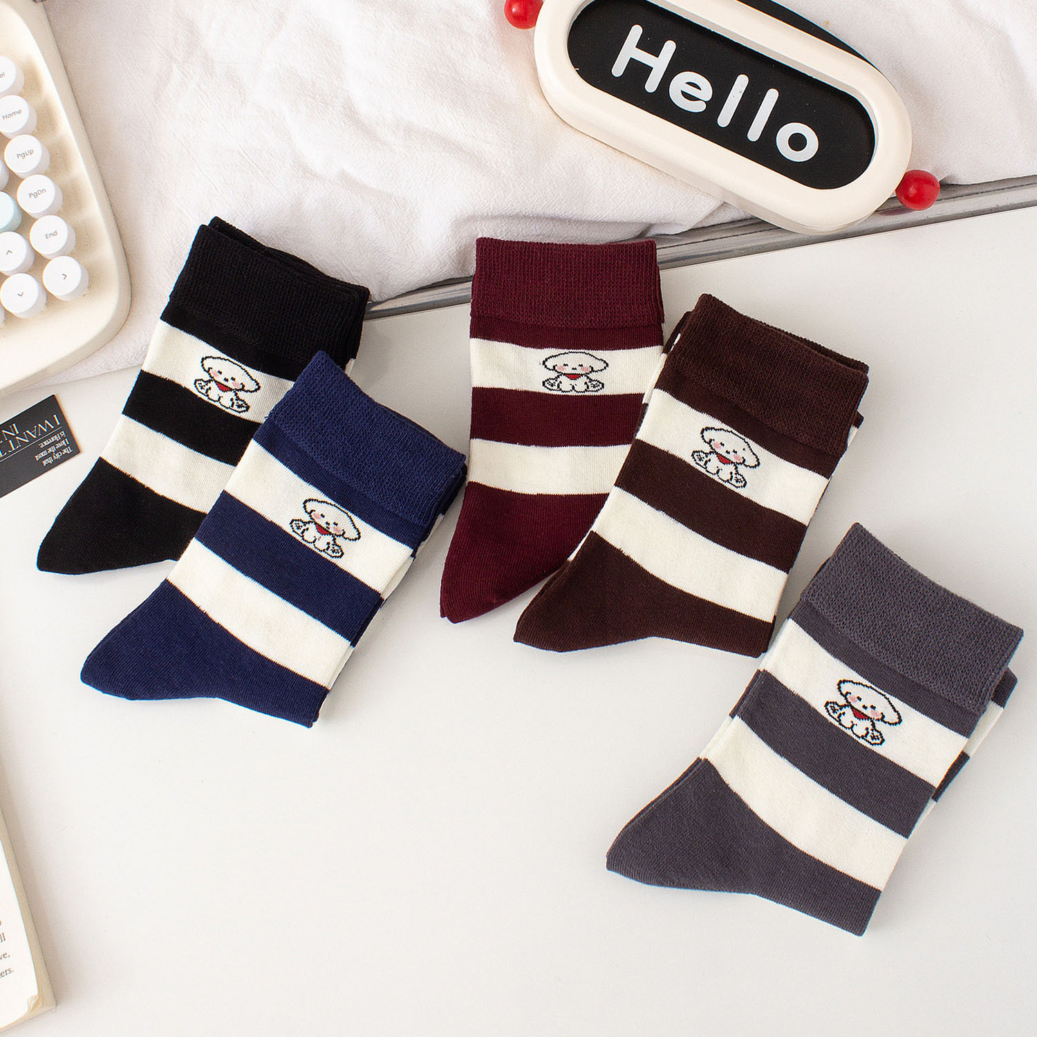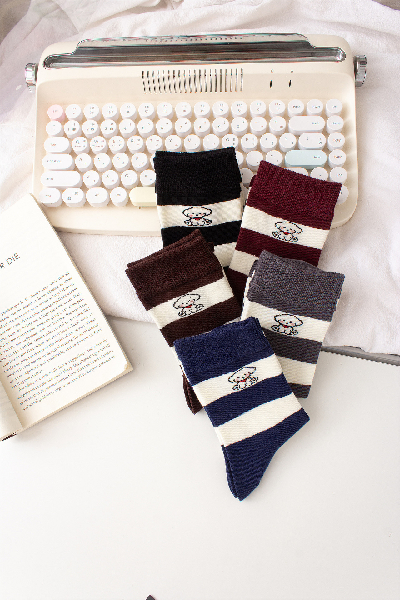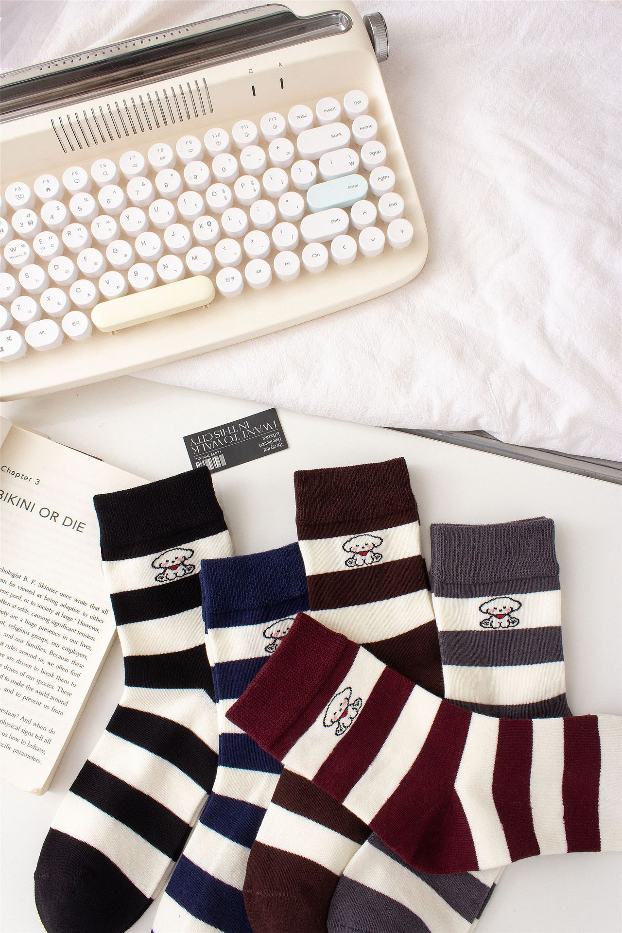 양말 여성 가을 겨울 한국 스타일 레트로 영국 스타일 강아지 일본 스타일 스트라이프 패션 아카데미 스타일 미드 튜브 양말 일본과 한국 만화스토어 가기