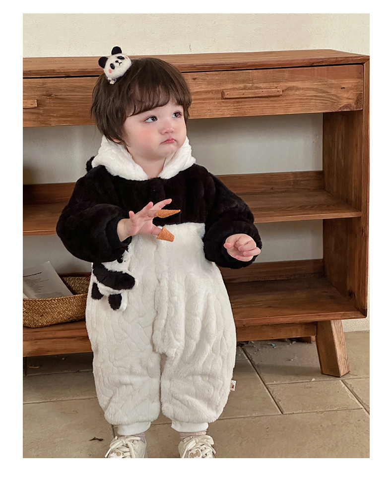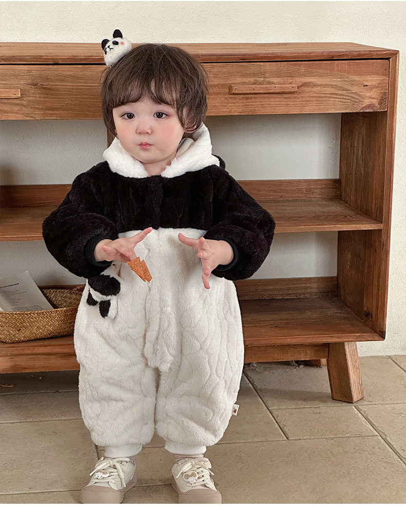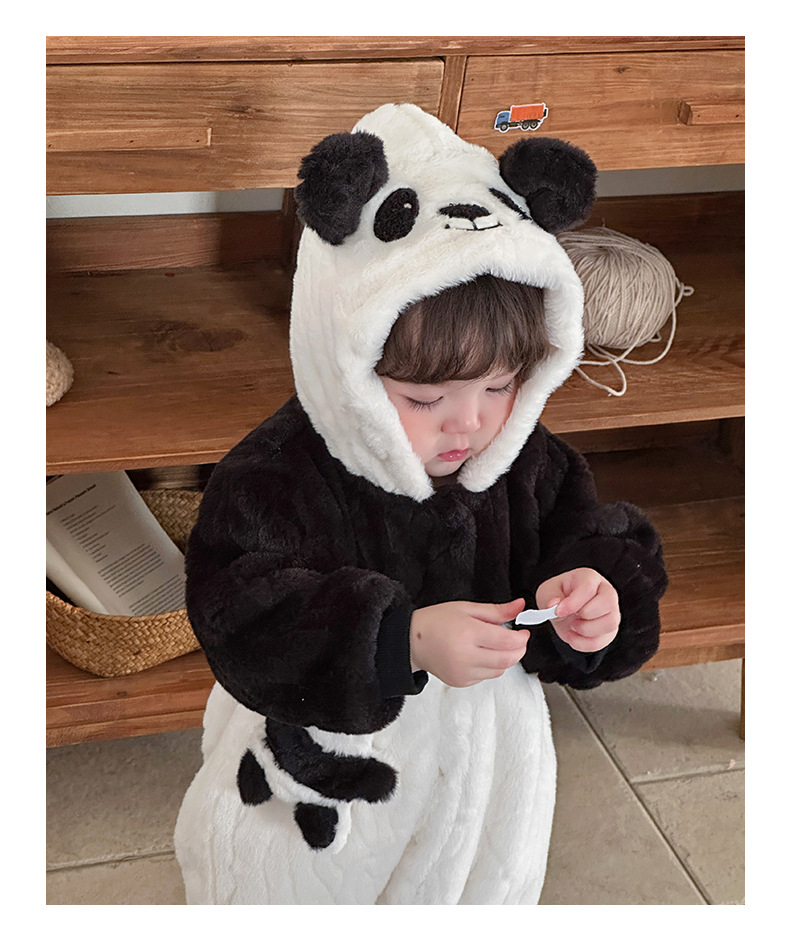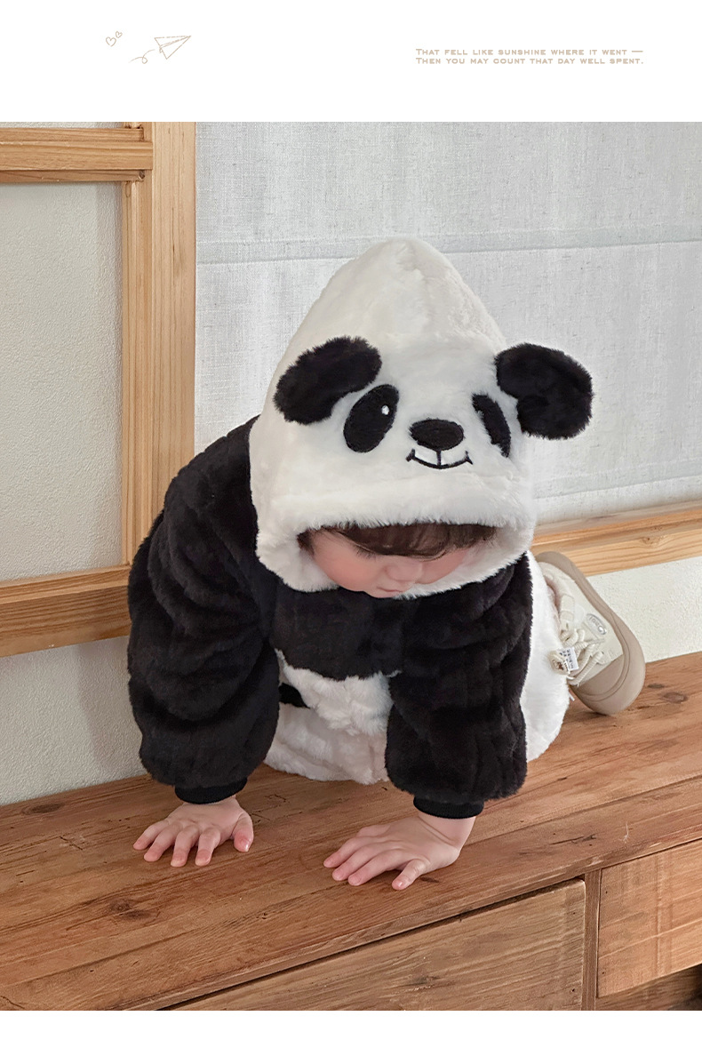 새로운 겨울 아기 서양 스타일 만화 귀여운 팬더 두꺼운 마오 마오 따뜻한 편안한 부드러운 아기 등반 옷스토어 가기