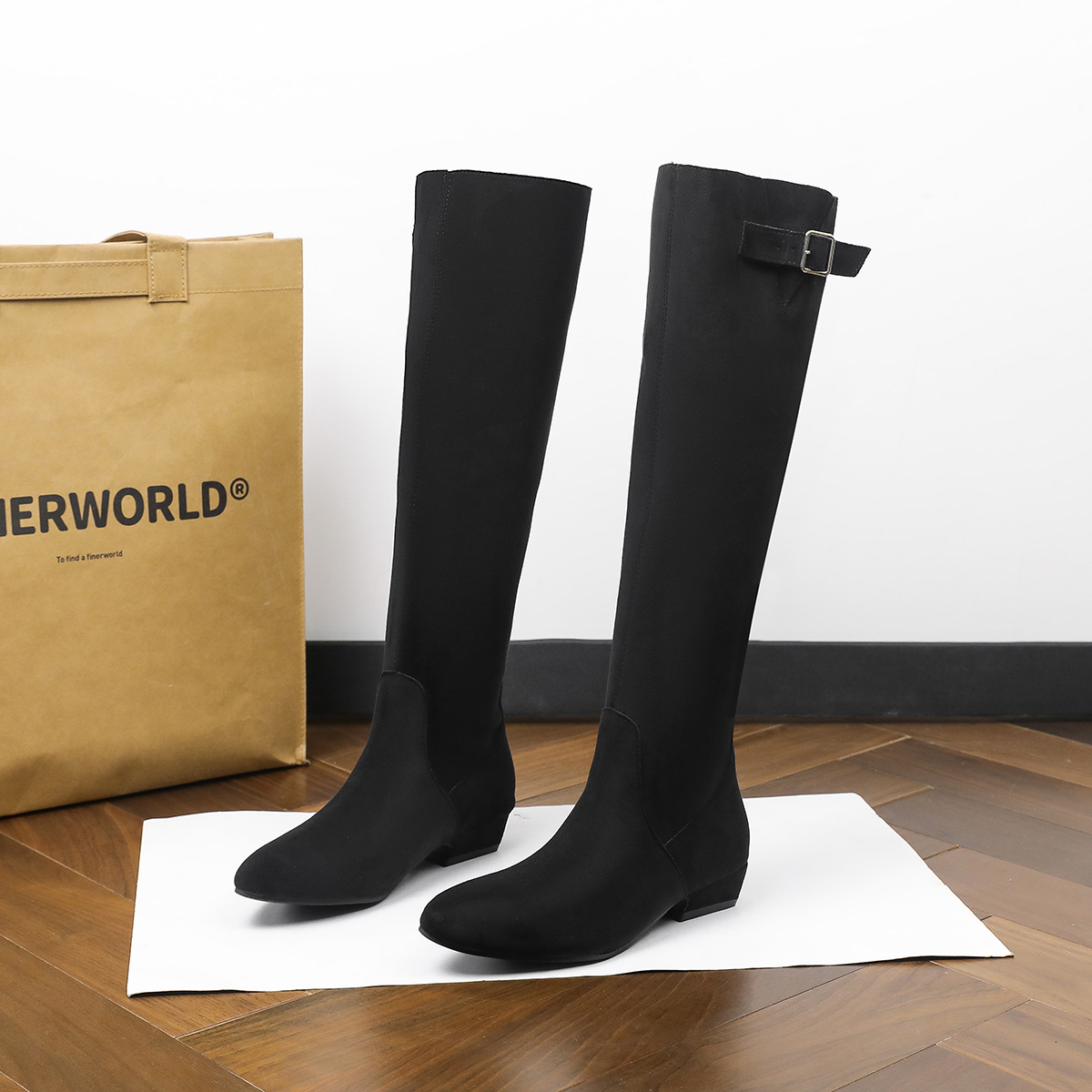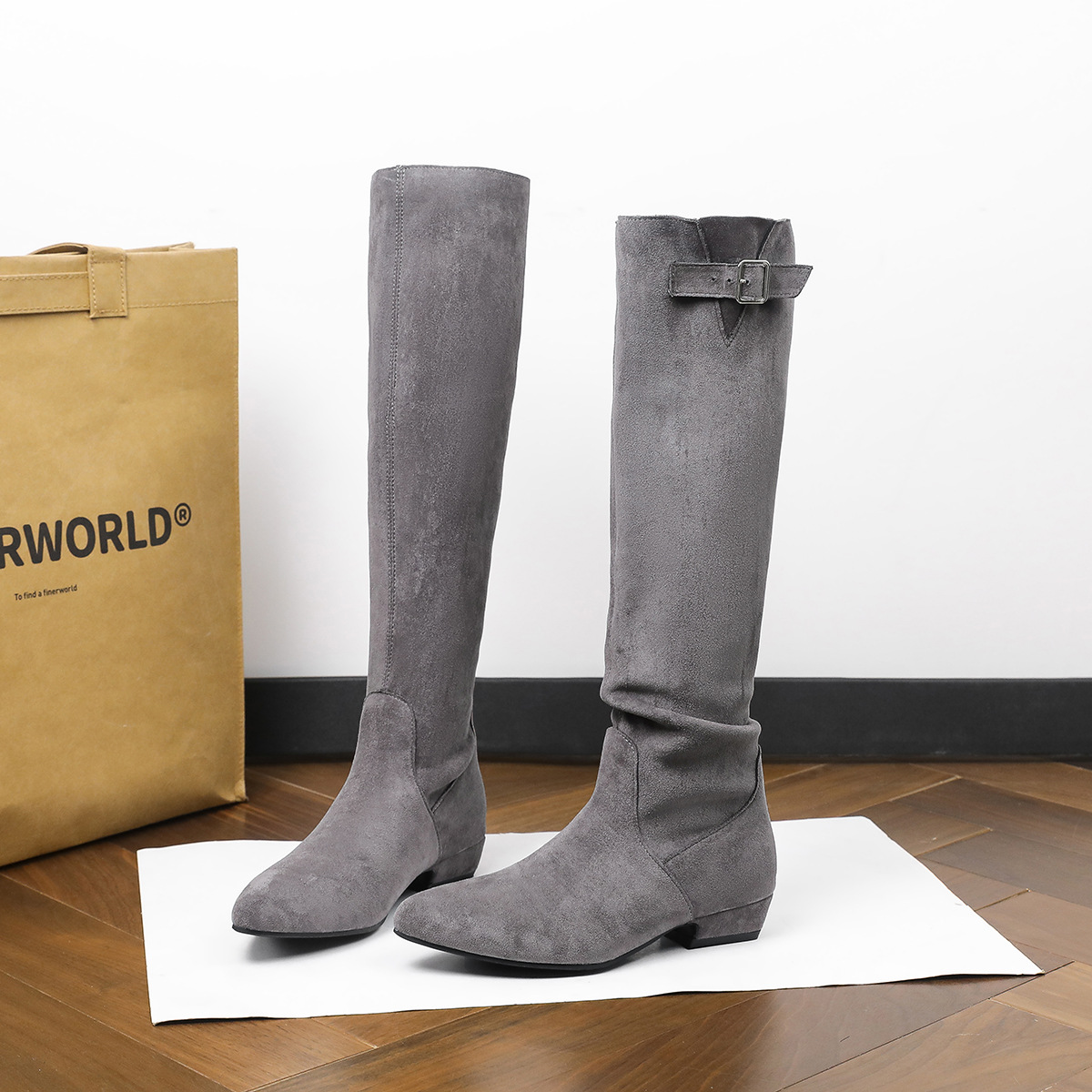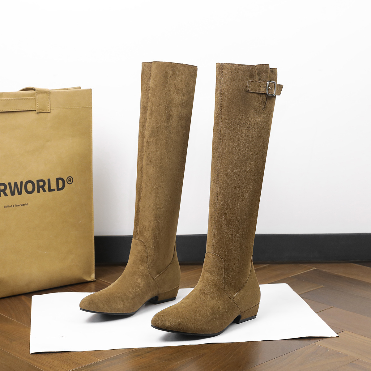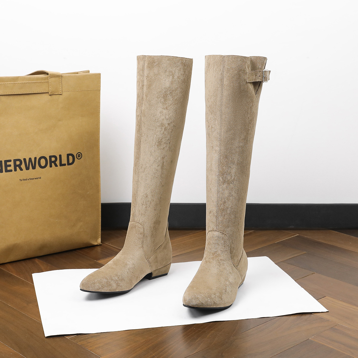 패션 부츠 여성용 가을 겨울 신상품 2025 하이탑 슬림 포인트토 부츠 스웨이드 레트로 나이트 롱부츠스토어 가기