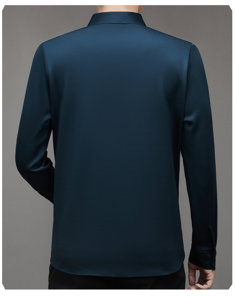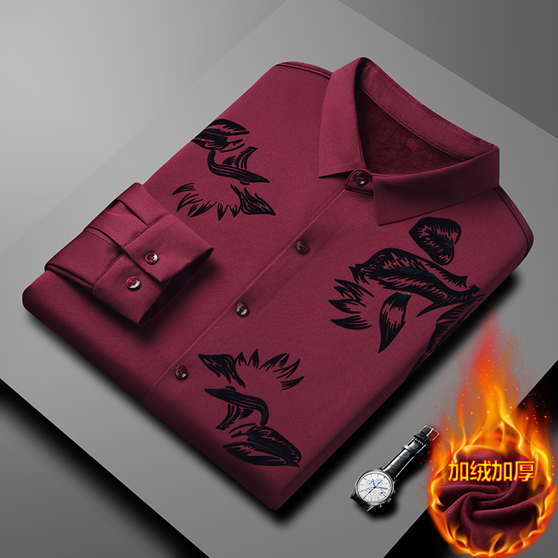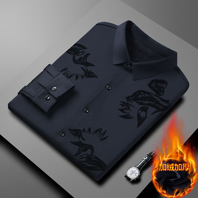 고급 2024 겨울 새로운 뽕나무 실크 긴 소매 셔츠 기모 따뜻한 비즈니스 비 다림질 인치 셔츠 남성용 셔츠를 대신하여